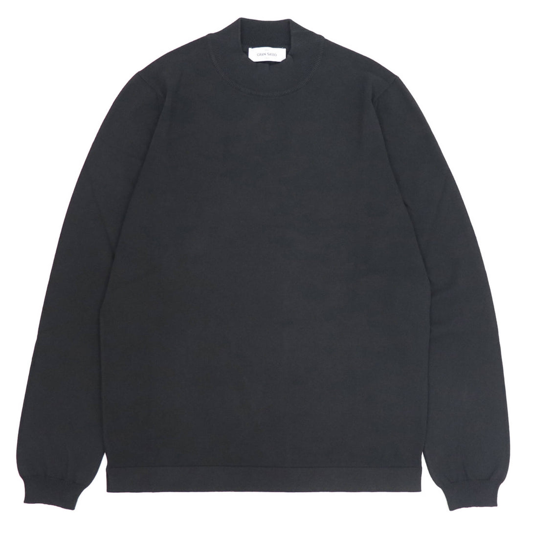 今季も、GRAN SASSO(グランサッソ)より12ゲージモックネックニットがイタリアより届きました。素材はコットン100%。通称"ニットT"と呼ばれるグランサッソでは定番素材となります。秋冬には欠かせない、長袖モックネック。デザインは非常にシンプルで、上品に見えるカットソーといった雰囲気となります。秋の立ち上がりから、ジャケットやアウターのインナーに最も最適なアイテムで、長袖となりますので、夏以外の3シーズンで着用は可能です。袖はリブ仕様で、裾はリブではなくカットソーと同じ袋縫い仕様、両サイドにスリットを入れています。インナーとしては一番使い勝手のいいタイプのアイテムです。