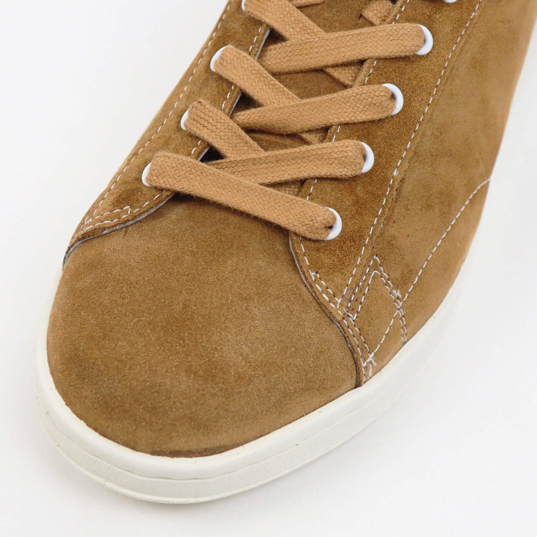 ブランドの特徴でもある2本ラインの立体的なデザインがポイントとなっており、アッパーには上質なスエード素材を使用し、カジュアルながらも上品な仕上がりになっています。