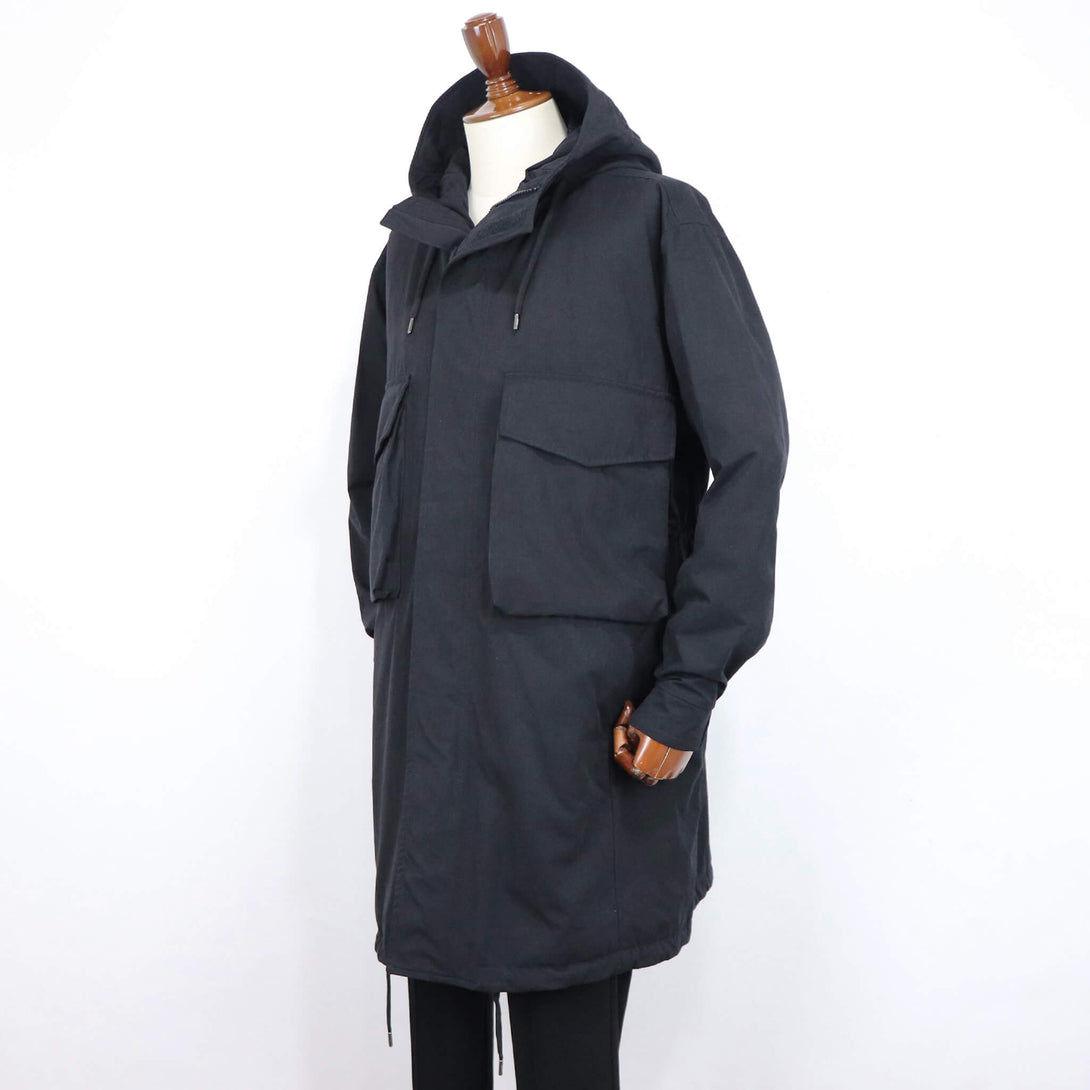 今季の新作は、大人が着れるモダンに仕上げたモッズコート。独特な素材感とゆったりとしたシルエットが特徴的な、無骨でタフなデザイン。フロントのマチ付きのポケットがアクセントとなっています。素材は、コットンベースの3者混素材で、ワックスコーティングを施すことで、ベルベット素材を彷彿とさせるとろみのある風合いと、保温性をもたらす素材となっています。