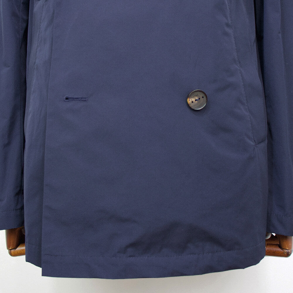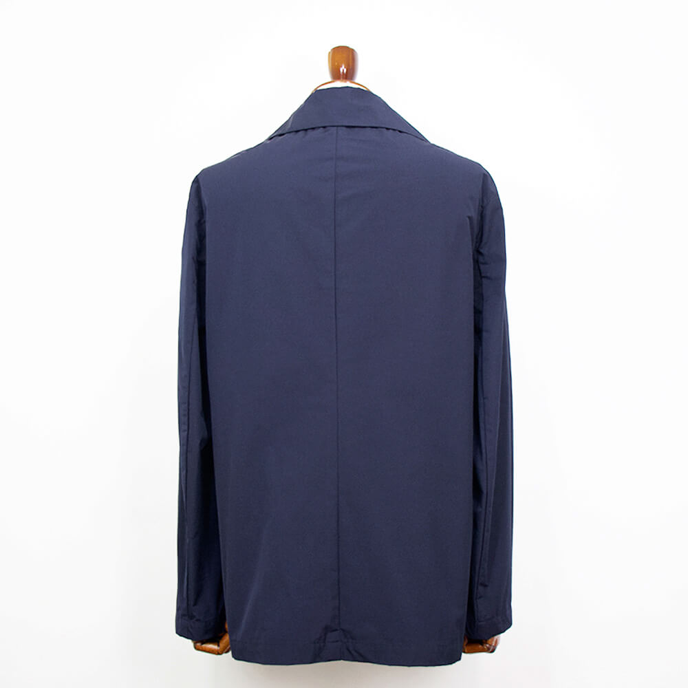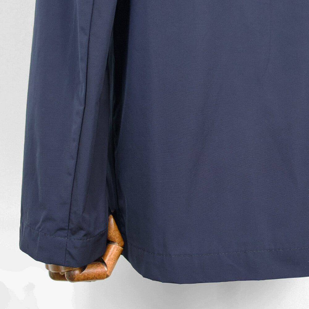 一見するとナイロンに見えますが実はポリエステル×コットンで混紡された生地を採用しており、ナイロン程の光沢もなくコシがある生地は非常に軽く軽快な着心地と風を通し難い温かさを備えています。また裏地などは一切設けず一枚仕立てなのも春らしい仕上がりですね。