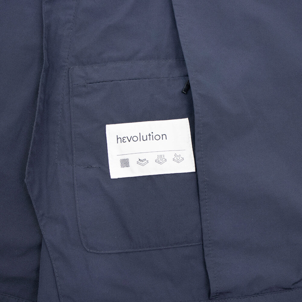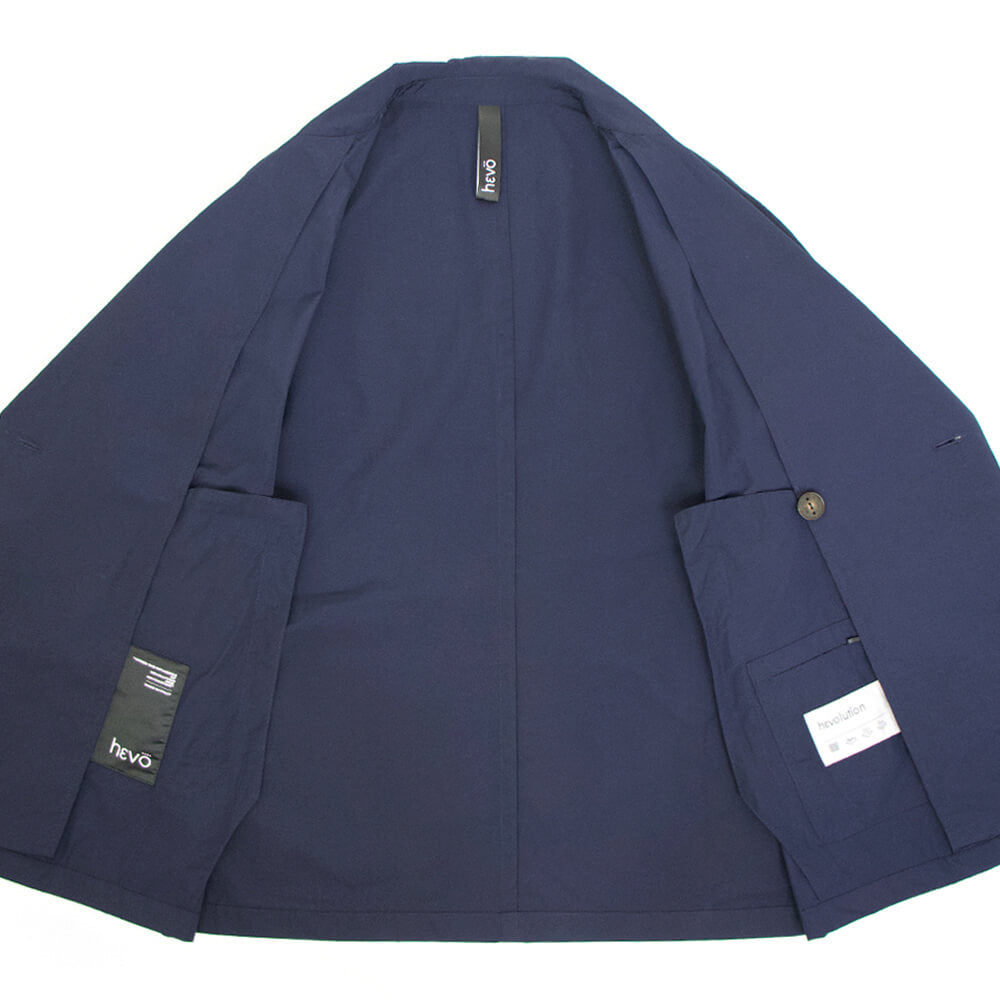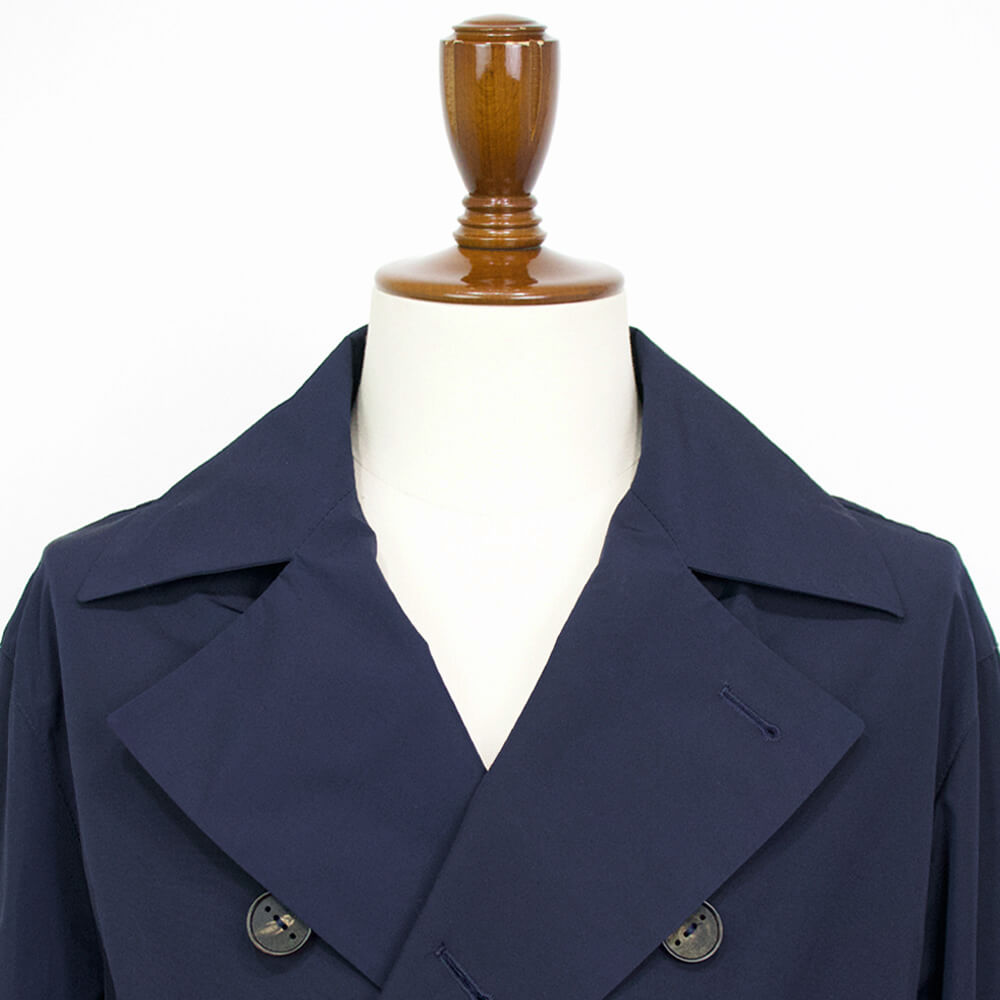 hevoらしさを感じ取れる立体的な襟とキレイに落ちる肩のシルエット、ポケットの配置など細かなディテールはコートそのものです。しかしながら羽織るとジャケットを彷彿とさせる軽やかな着心地は、近年のhevoらしいトラッドとモダンをミックスした独自のセンスが光っています。