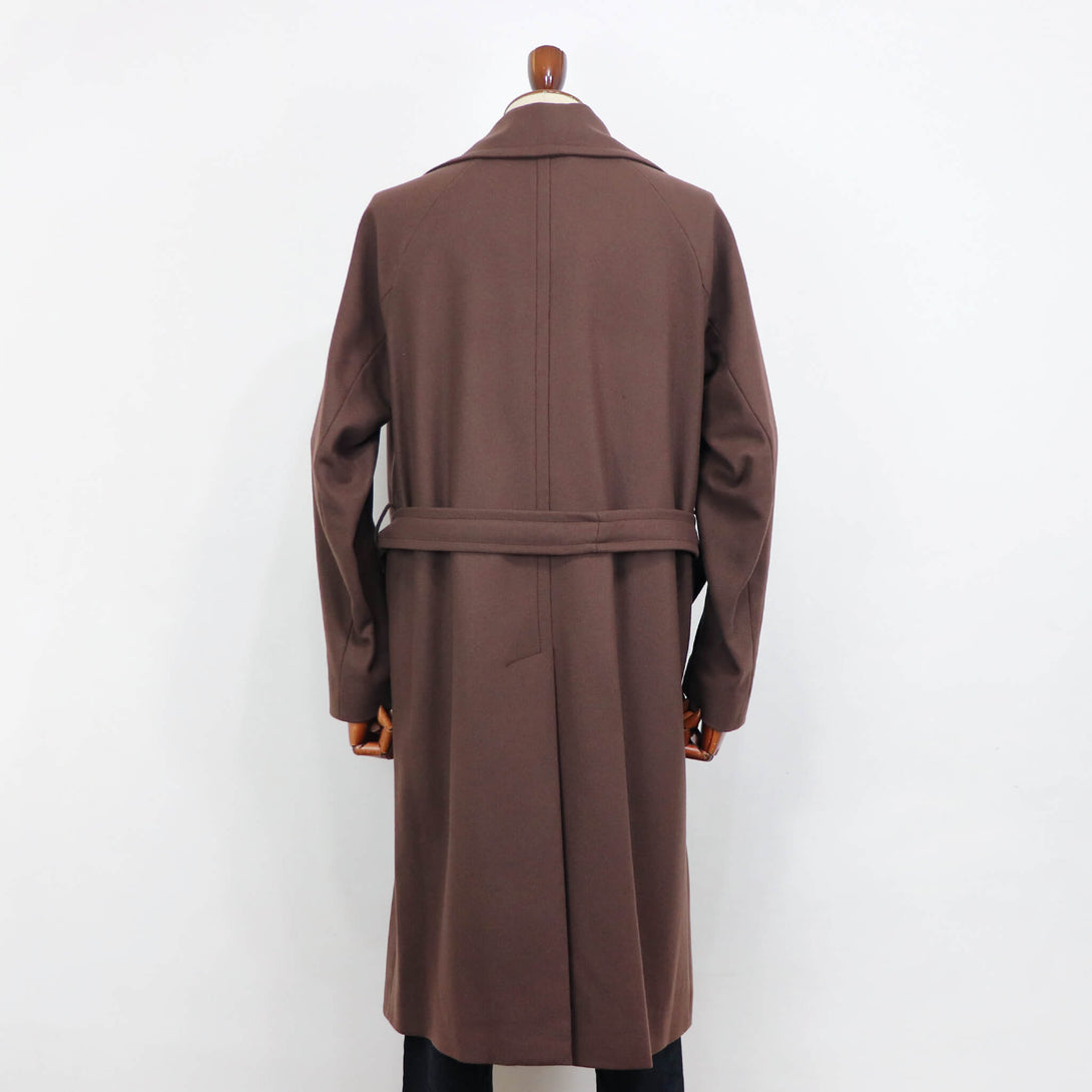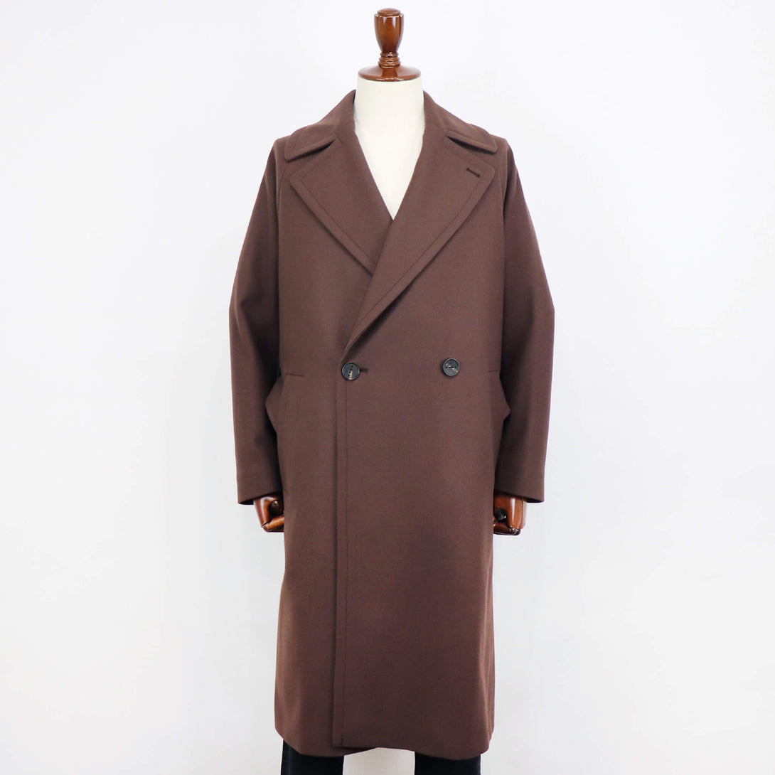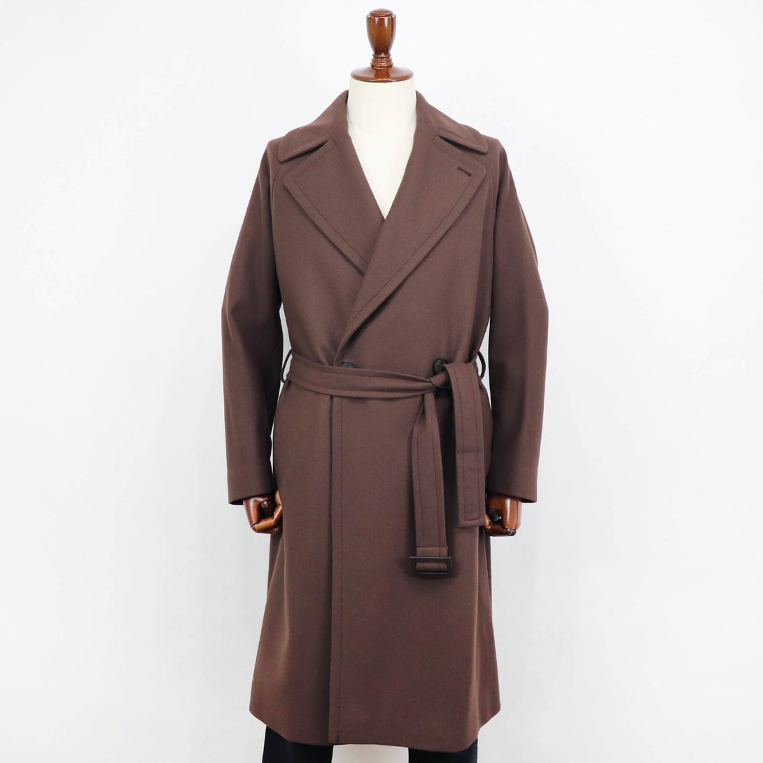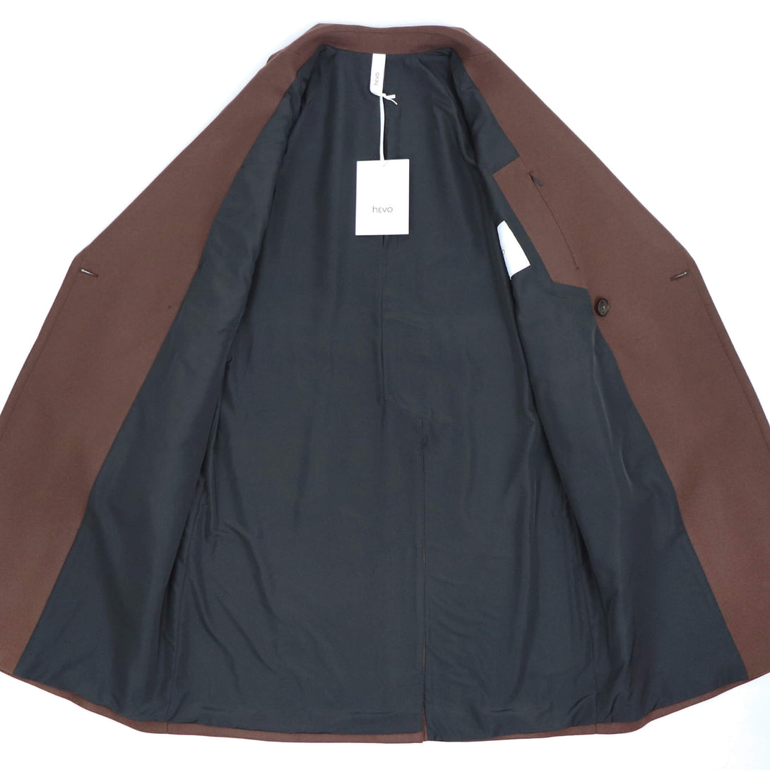 hevo(イーヴォ)の定番コート、ブリンディジが届きました。上質な素材とゆったりとした独特なシルエットが存在感を放つロングコート。産まれて初めて刈りとられた柔らかく高い保温性が魅力の「ヴァージンウール」で作られたメルトン生地。こちらを使い作られたダブルフロントのベルテッドコートです。ラグランスリーブとゆったりとしたシルエットのコートは、hevoならではの独特なシルエットを生み出し、スーツスタイルにも合う、コンテンポラリーな雰囲気が漂うデザインに仕上げられています。