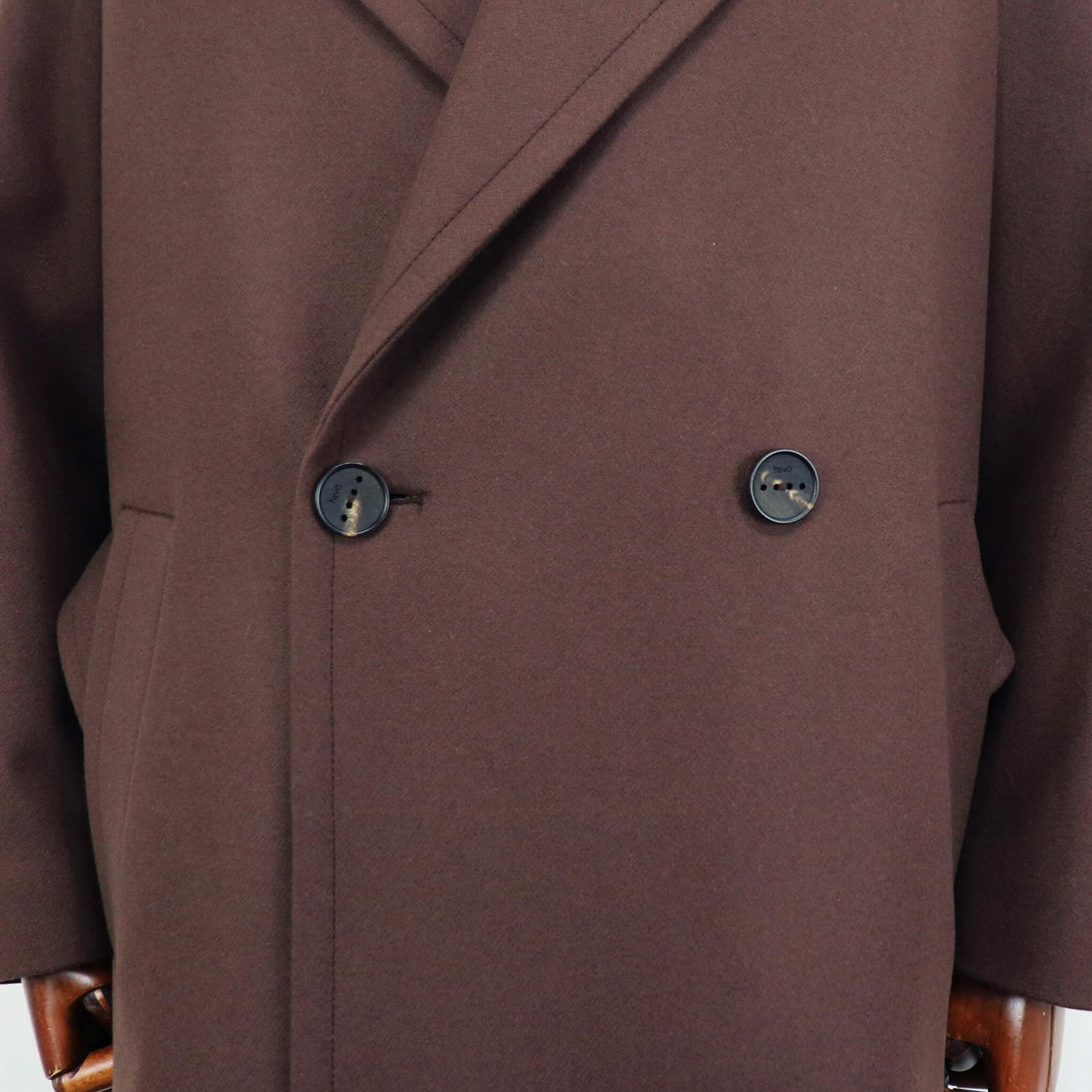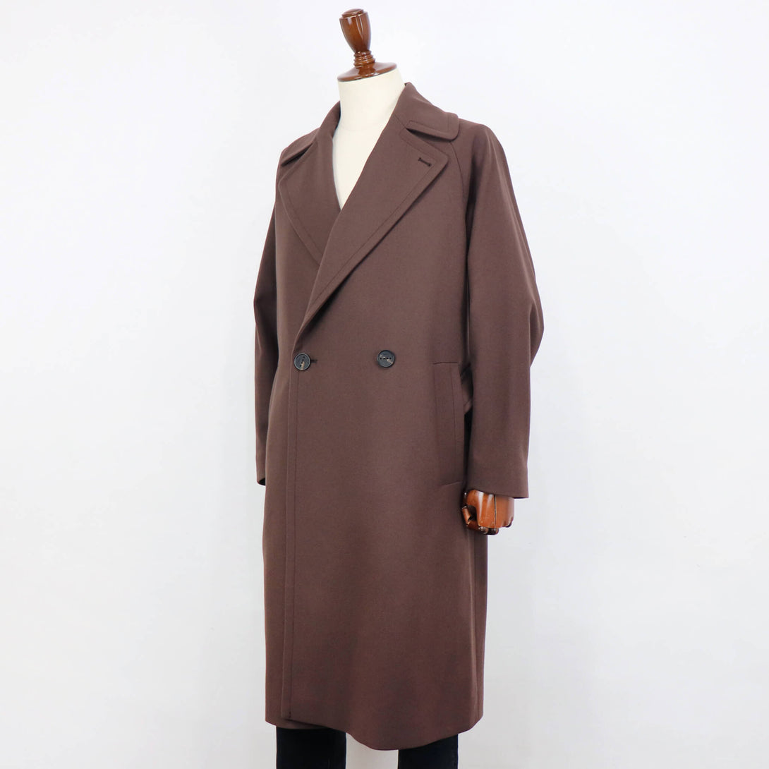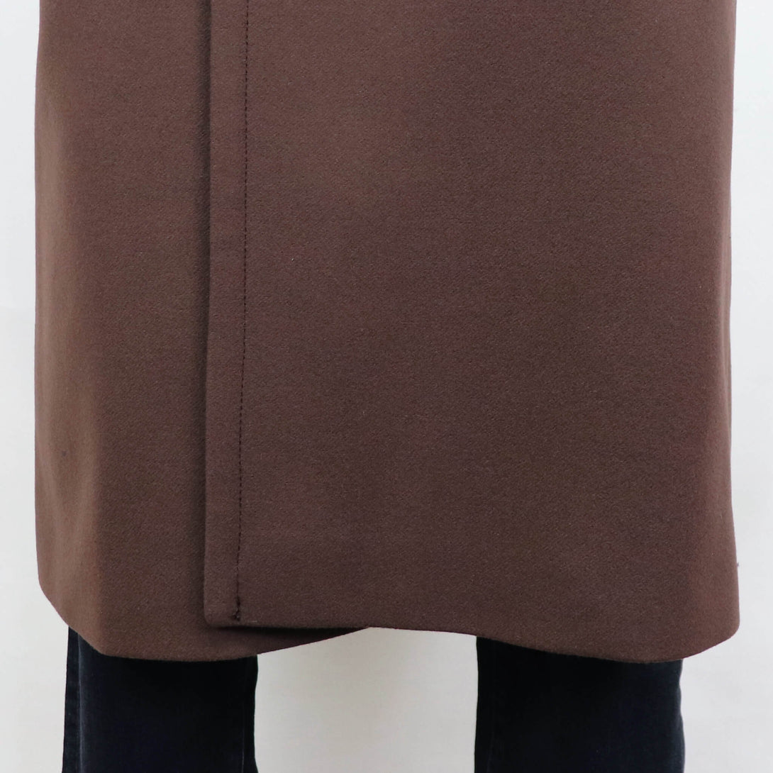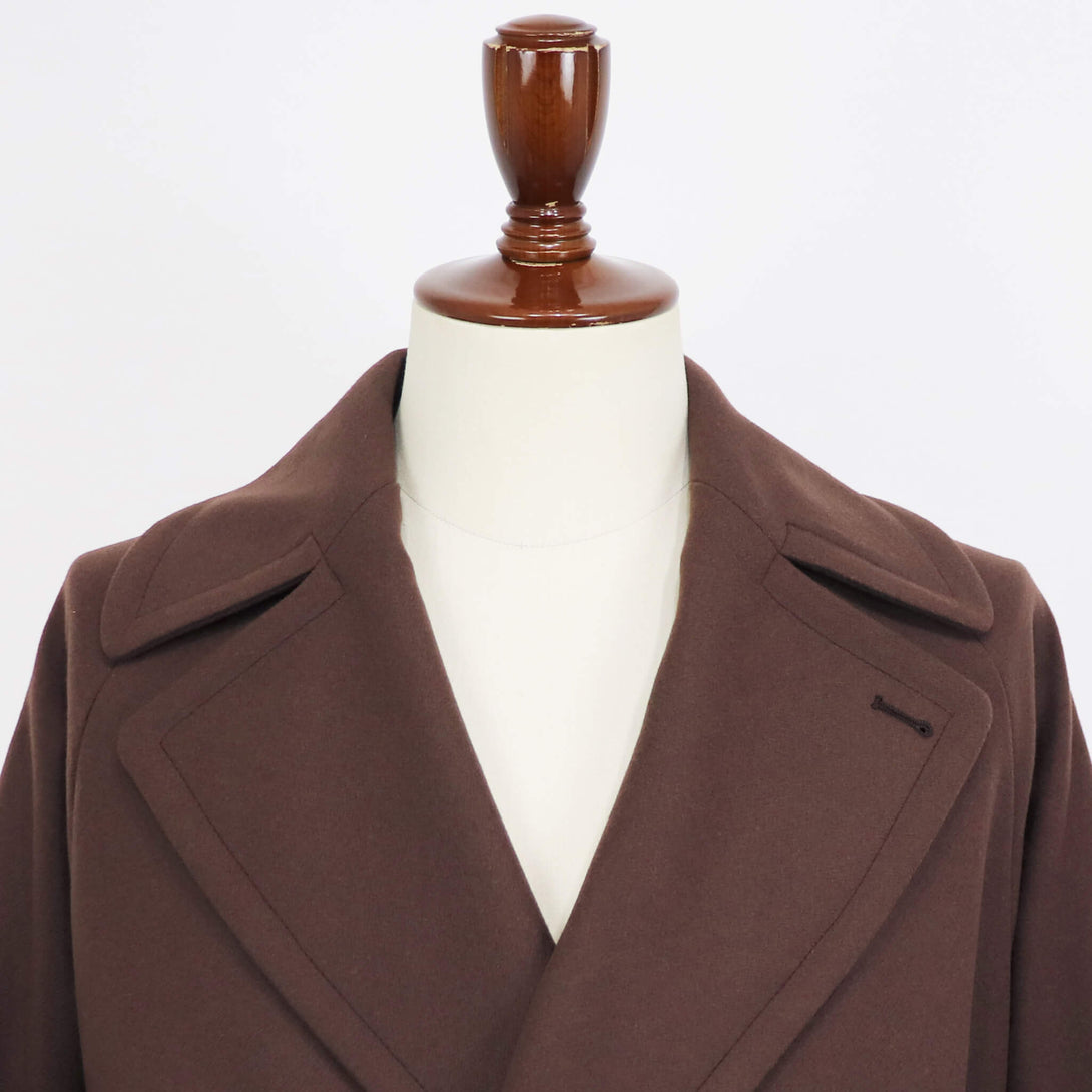 hevo(イーヴォ)の定番コート、ブリンディジが届きました。上質な素材とゆったりとした独特なシルエットが存在感を放つロングコート。産まれて初めて刈りとられた柔らかく高い保温性が魅力の「ヴァージンウール」で作られたメルトン生地。こちらを使い作られたダブルフロントのベルテッドコートです。ラグランスリーブとゆったりとしたシルエットのコートは、hevoならではの独特なシルエットを生み出し、スーツスタイルにも合う、コンテンポラリーな雰囲気が漂うデザインに仕上げられています。