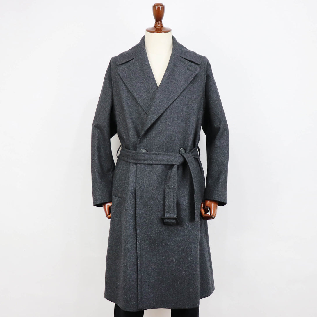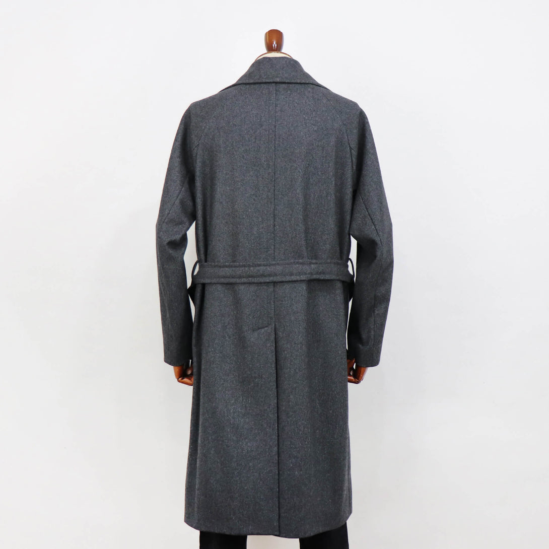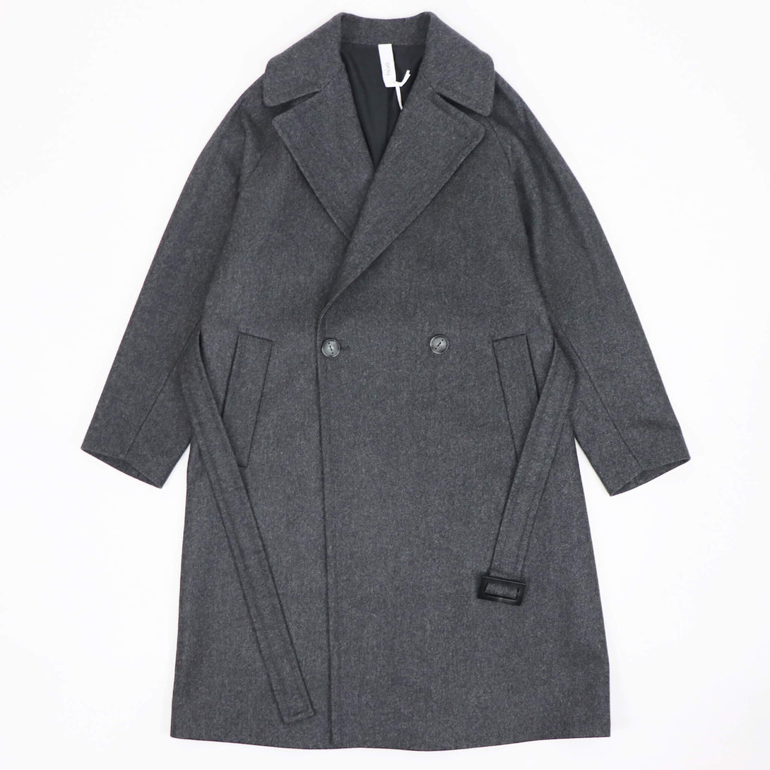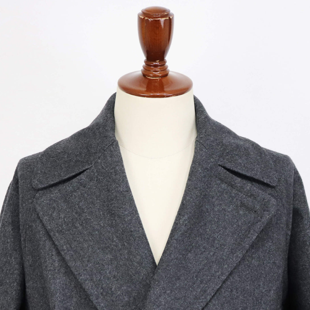 hevo(イーヴォ)の定番コート、ブリンディジが届きました。上質な素材とゆったりとした独特なシルエットが存在感を放つロングコート。産まれて初めて刈りとられた柔らかく高い保温性が魅力の「ヴァージンウール」で作られたメルトン生地。こちらを使い作られたダブルフロントのベルテッドコートです。ラグランスリーブとゆったりとしたシルエットのコートは、hevoならではの独特なシルエットを生み出し、スーツスタイルにも合う、コンテンポラリーな雰囲気が漂うデザインに仕上げられています。