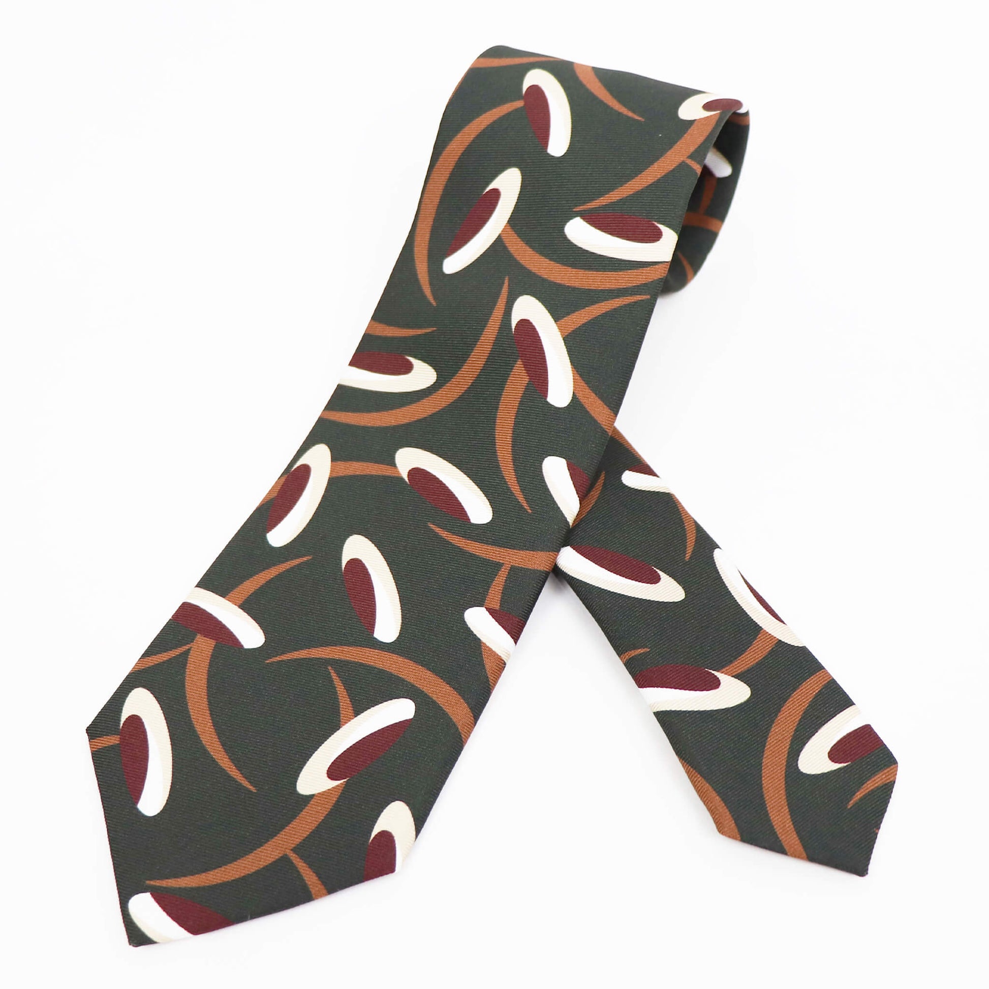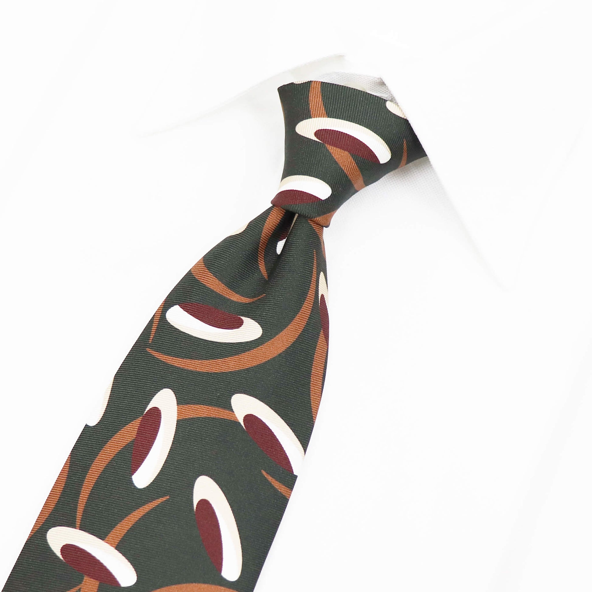 一見するとポップなデザインに見えますが、実際に結んでみると驚くほどにクラシックでエレガントな雰囲気の表情に変わるのに驚かされます。結婚式やパーティーなど華やかなシーンはもちろんのこと、落ち着いた色味ですのでビジネスにおいても活躍してくれる一本です。英国の伝統とイタリアのシルク産業の知識を融合した端正な佇まいが魅力です。ワードローブの一つにあると重宝すること間違いなしです。
