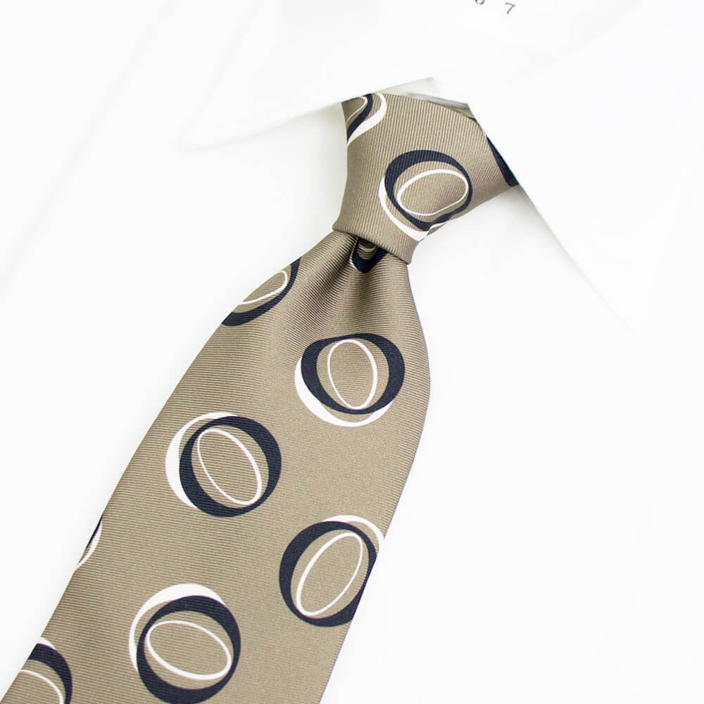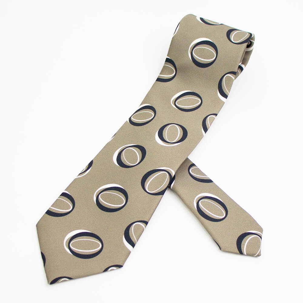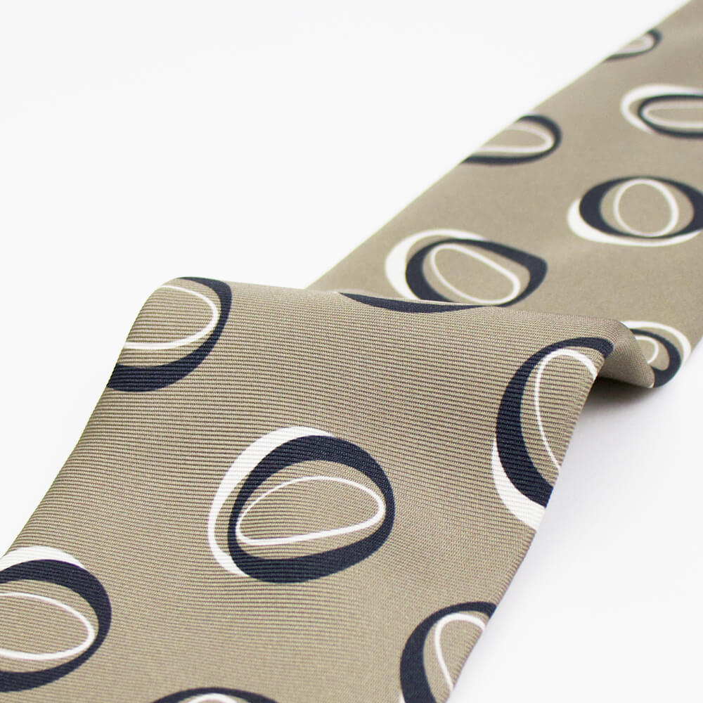 一見するとポップなデザインに見えますが、実際に結んでみると驚くほどにクラシックでエレガントな雰囲気の表情に変わるのに驚かされます。結婚式やパーティーなど華やかなシーンはもちろんのこと、落ち着いた色味ですのでビジネスにおいても活躍してくれる一本です。英国の伝統とイタリアのシルク産業の知識を融合した端正な佇まいが魅力です。ワードローブの一つにあると重宝すること間違いなしです。