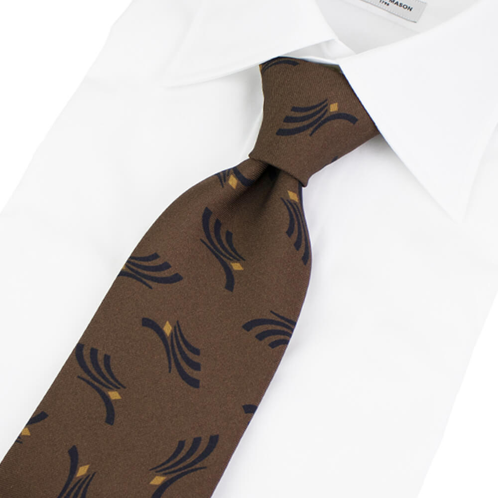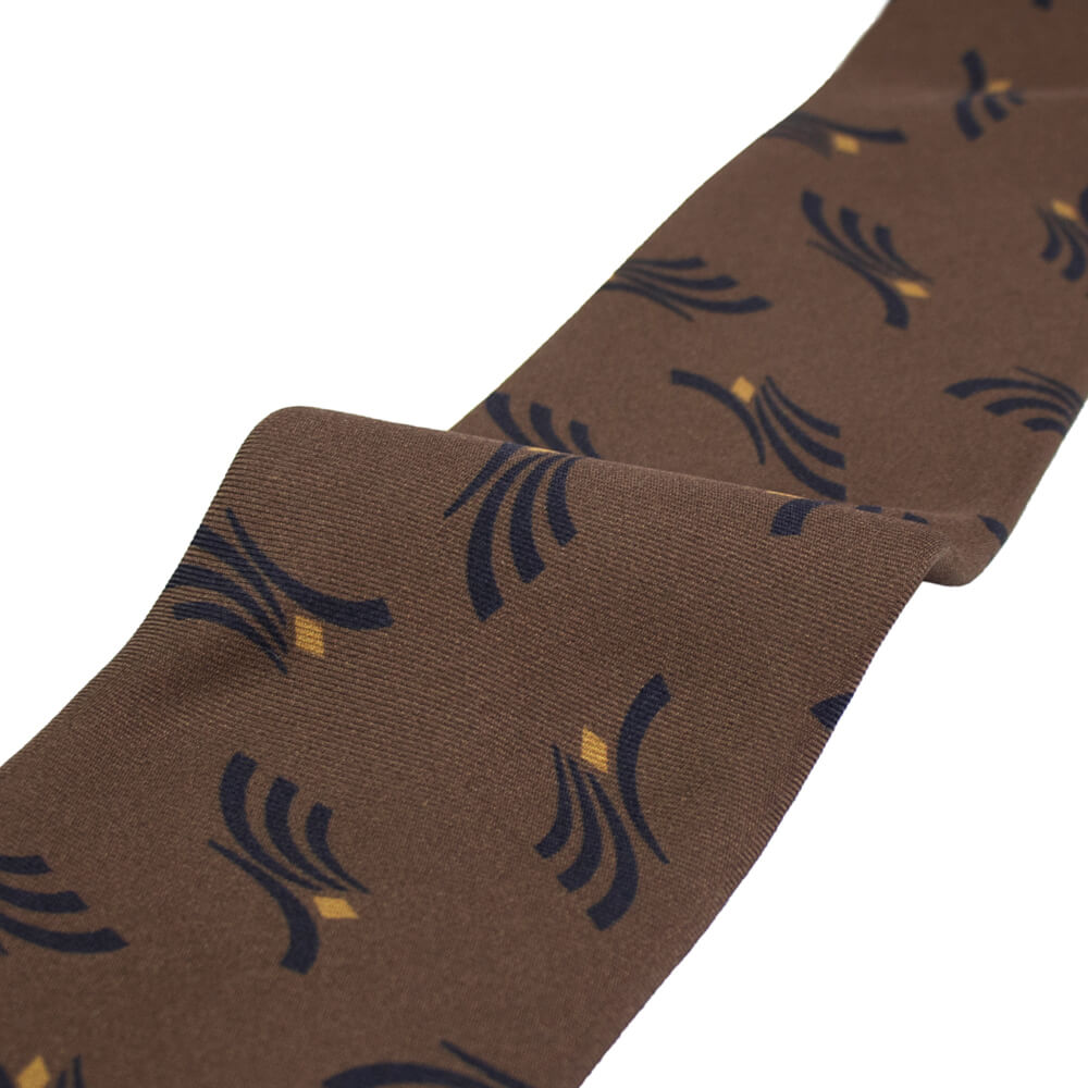 クラシカルでありながらモダンな印象の柄はとても美しく胸元をぐっとお洒落にしてくれます。英国の伝統とイタリアのシルク産業の知識を融合した端正な佇まいが魅力。ドレススタイリングを品良く飾る1本です。ワードローブの一つにあると重宝すること間違いなしです。