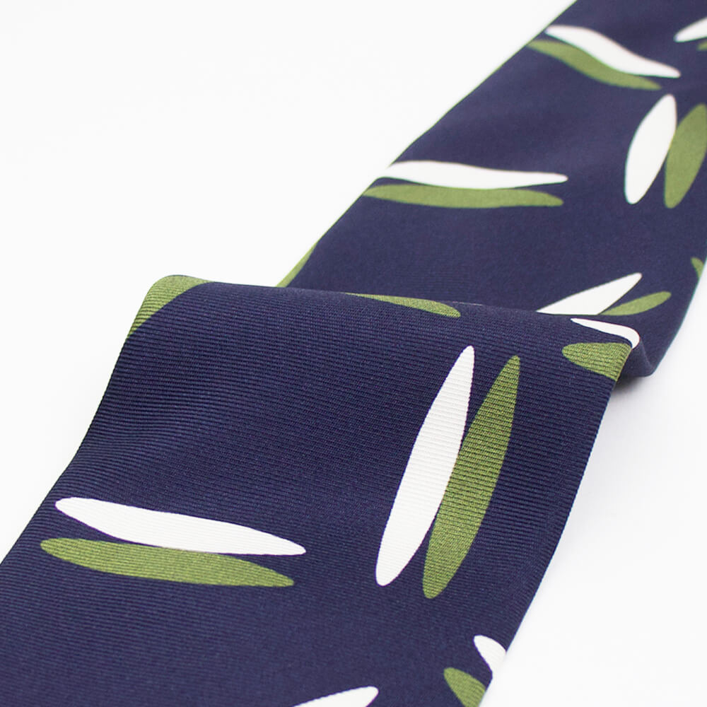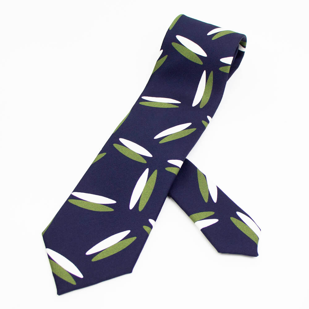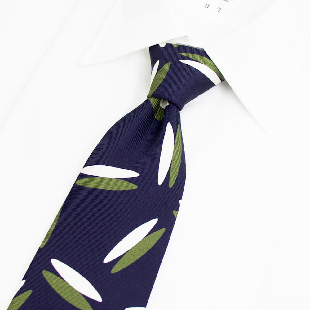 一見するとポップなデザインに見えますが、実際に結んでみると驚くほどにクラシックでエレガントな雰囲気の表情に変わるのに驚かされます。結婚式やパーティーなど華やかなシーンはもちろんのこと、落ち着いた色味ですのでビジネスにおいても活躍してくれる一本です。英国の伝統とイタリアのシルク産業の知識を融合した端正な佇まいが魅力です。ワードローブの一つにあると重宝すること間違いなしです。