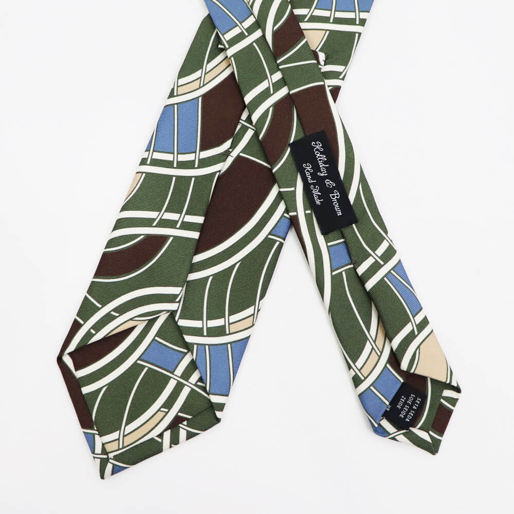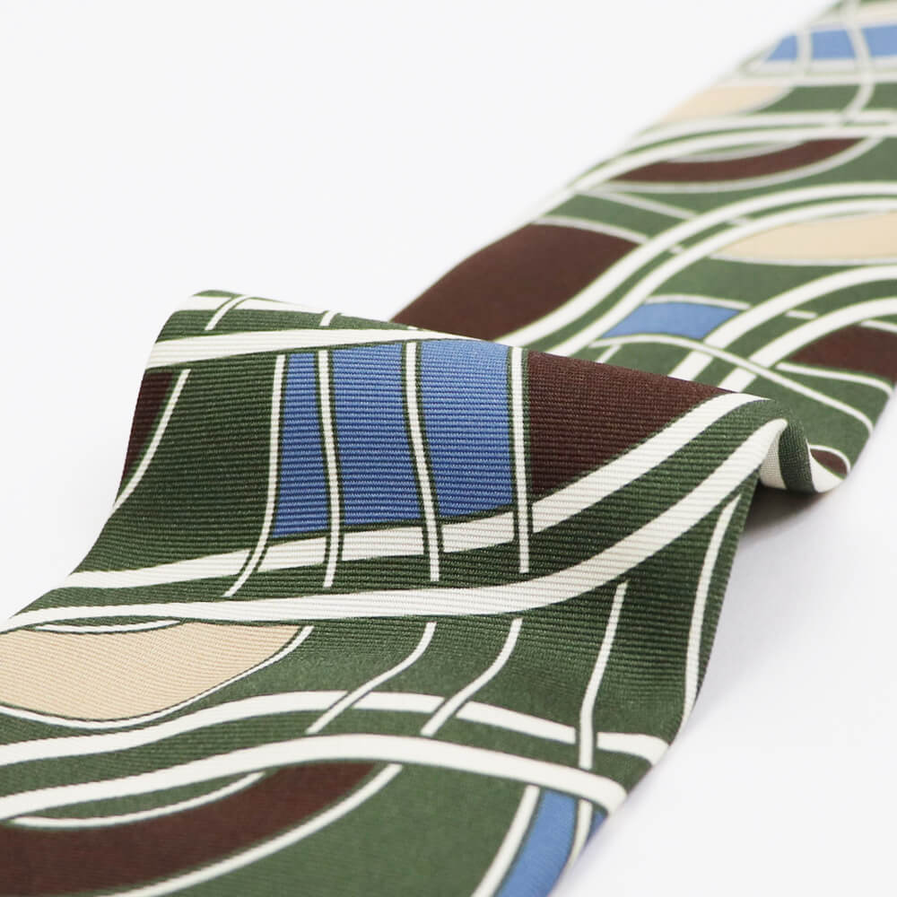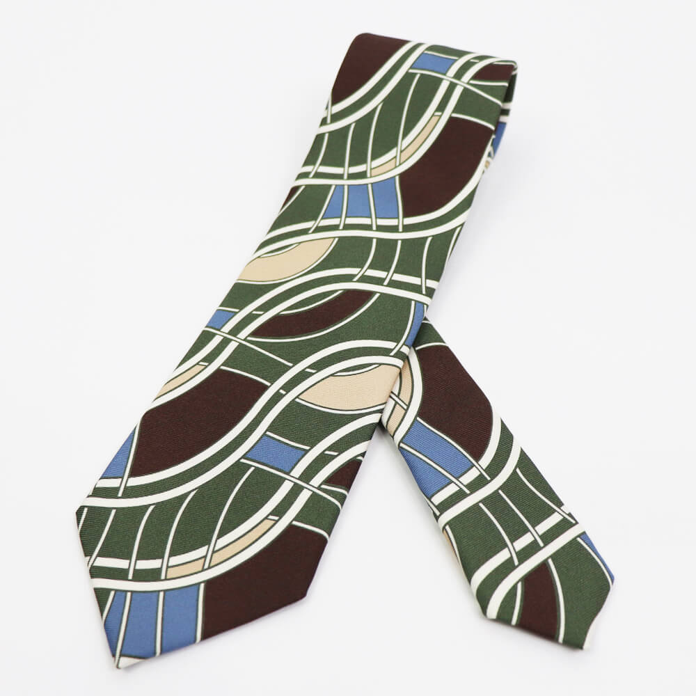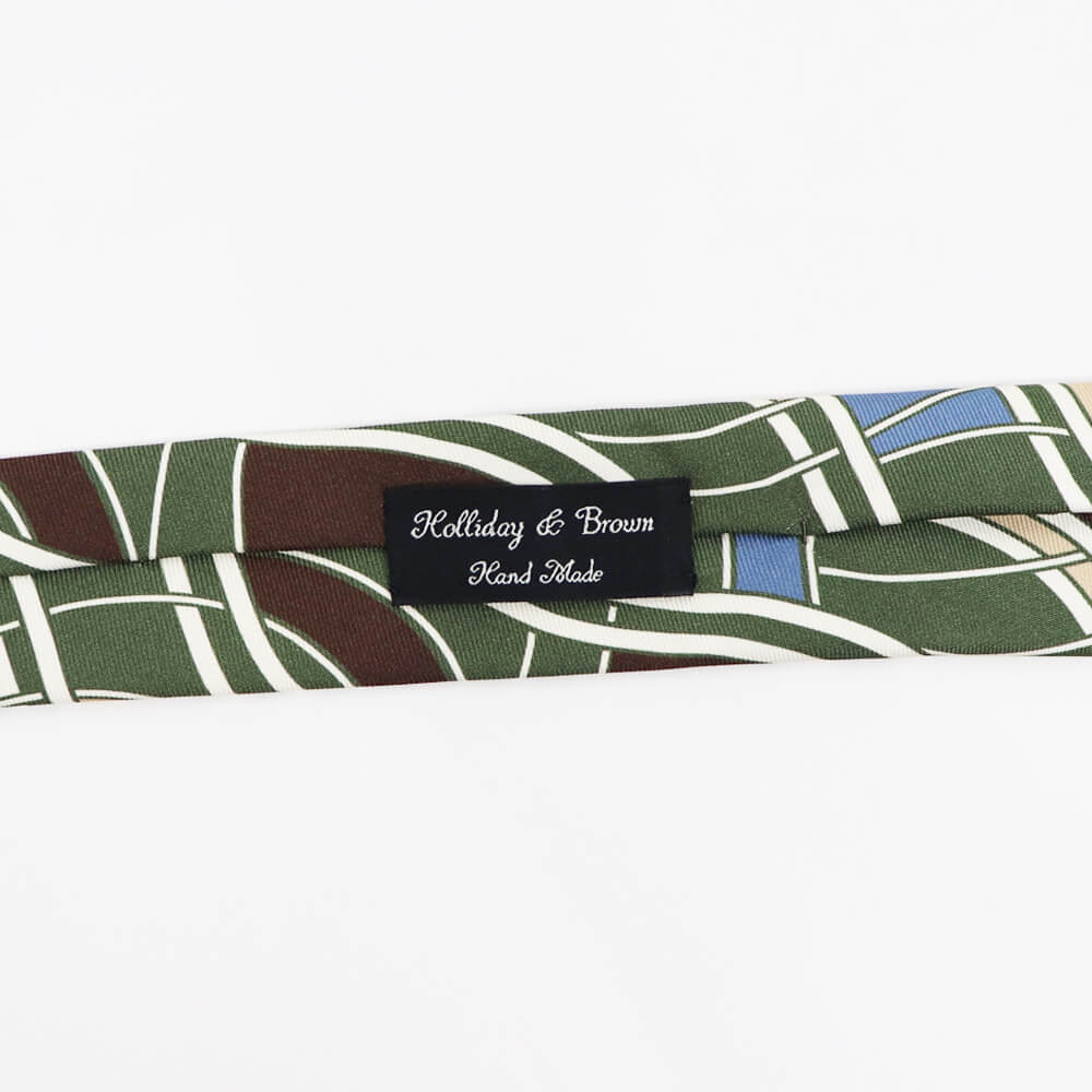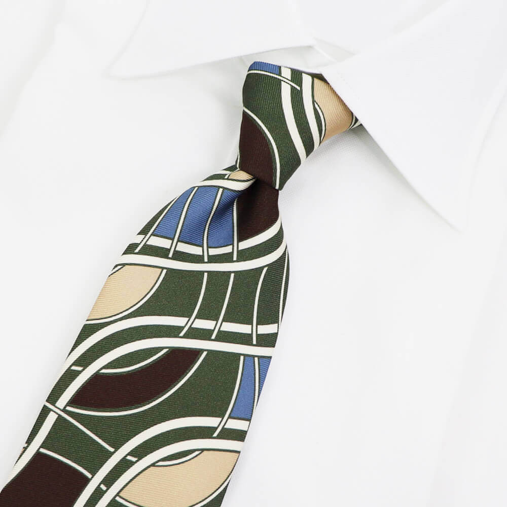 一見するとポップなデザインに見えますが、実際に結んでみると驚くほどにクラシックでエレガントな雰囲気の表情に変わるのに驚かされます。結婚式やパーティーなど華やかなシーンはもちろんのこと、落ち着いた色味ですのでビジネスにおいても活躍してくれる一本です。英国の伝統とイタリアのシルク産業の知識を融合した端正な佇まいが魅力です。ワードローブの一つにあると重宝すること間違いなしです。