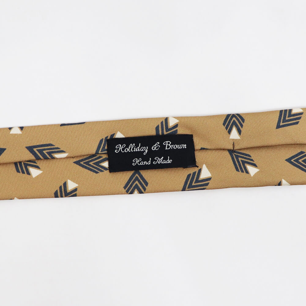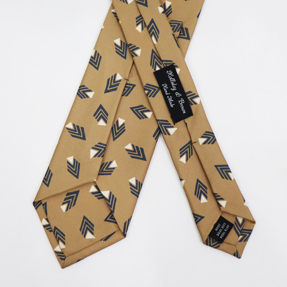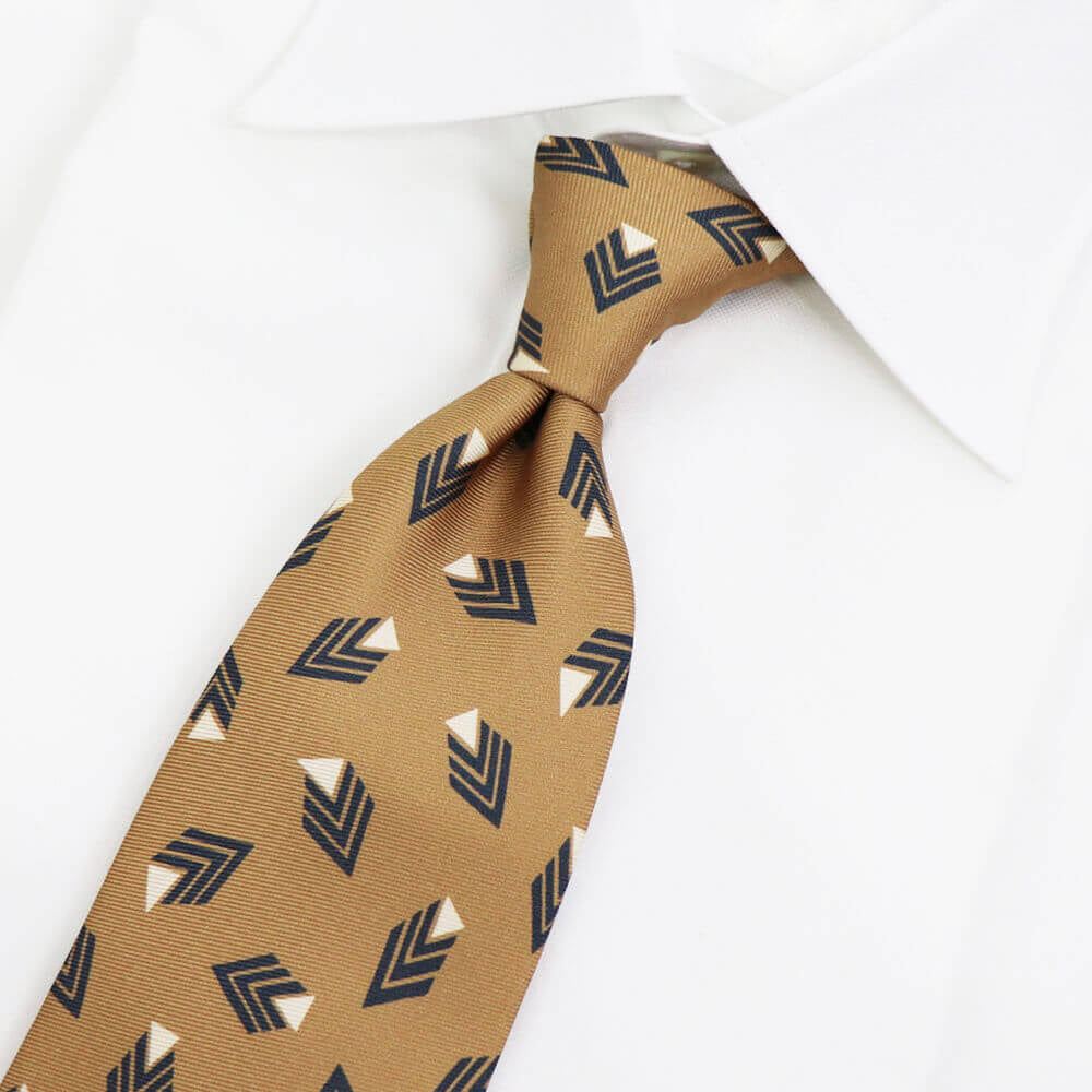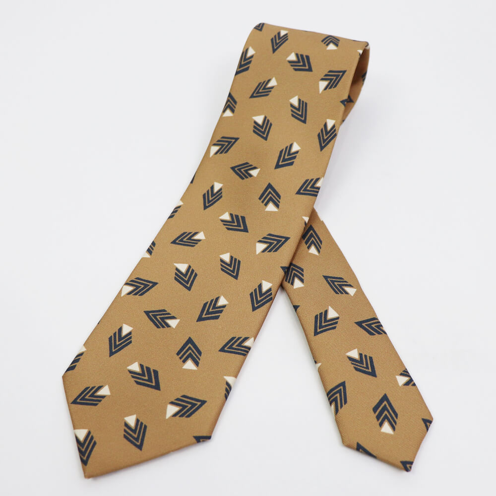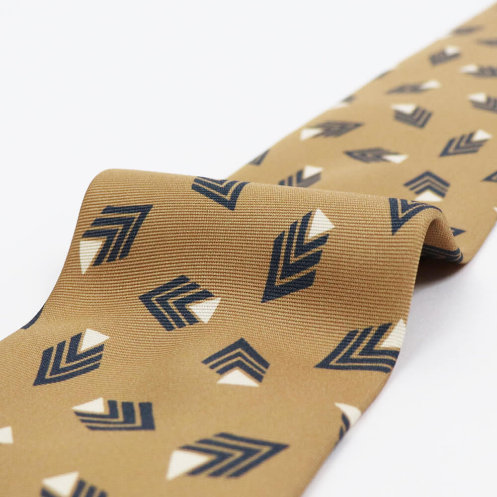 一見するとポップなデザインに見えますが、実際に結んでみると驚くほどにクラシックでエレガントな雰囲気の表情に変わるのに驚かされます。結婚式やパーティーなど華やかなシーンはもちろんのこと、落ち着いた色味ですのでビジネスにおいても活躍してくれる一本です。英国の伝統とイタリアのシルク産業の知識を融合した端正な佇まいが魅力です。ワードローブの一つにあると重宝すること間違いなしです。