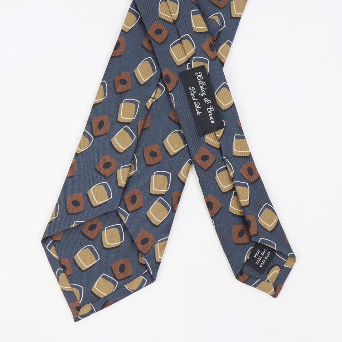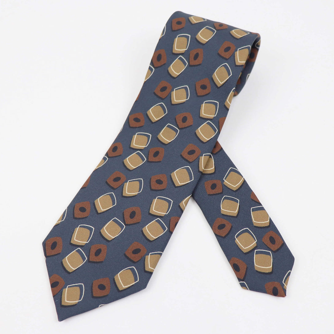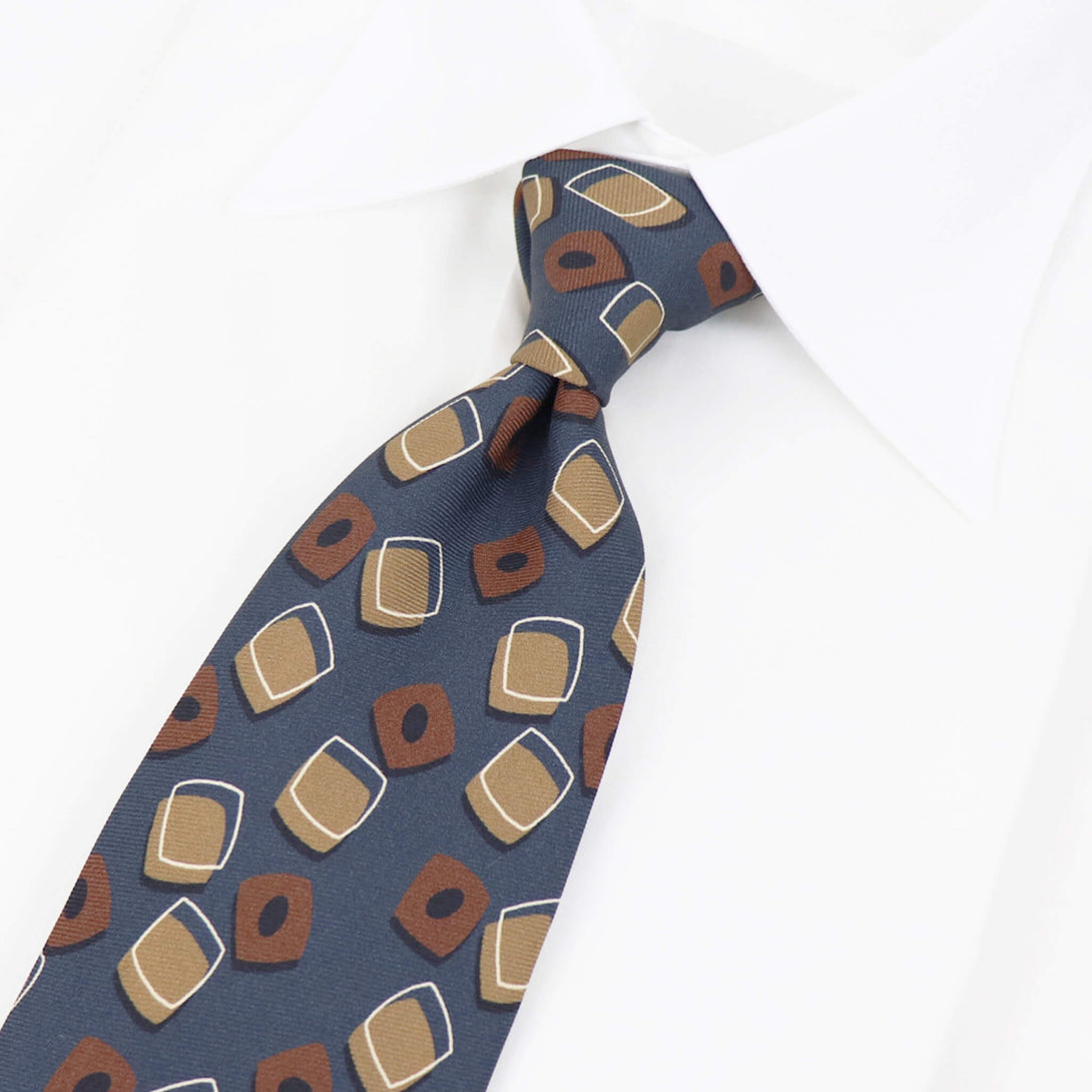 一見するとポップなデザインに見えますが、実際に結んでみると驚くほどにクラシックでエレガントな雰囲気の表情に変わるのに驚かされます。結婚式やパーティーなど華やかなシーンはもちろんのこと、落ち着いた色味ですのでビジネスにおいても活躍してくれる一本です。英国の伝統とイタリアのシルク産業の知識を融合した端正な佇まいが魅力です。ワードローブの一つにあると重宝すること間違いなしです。