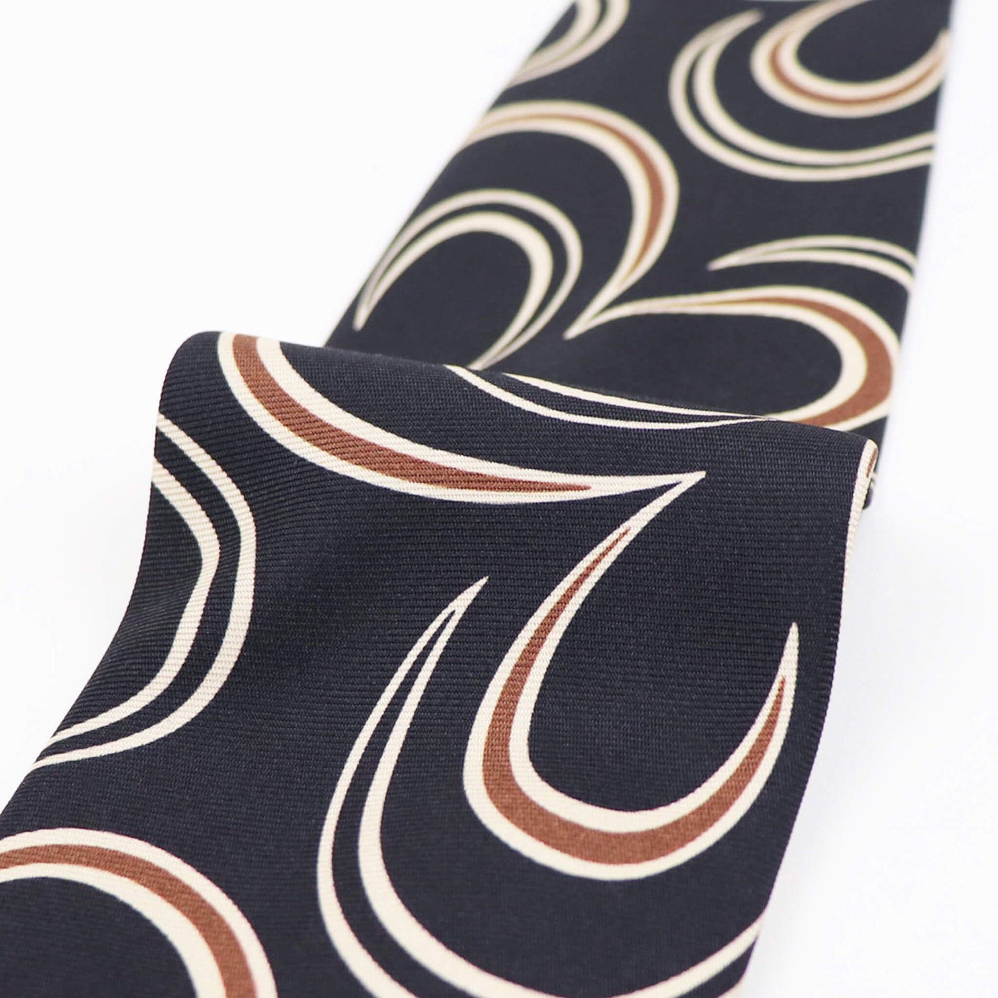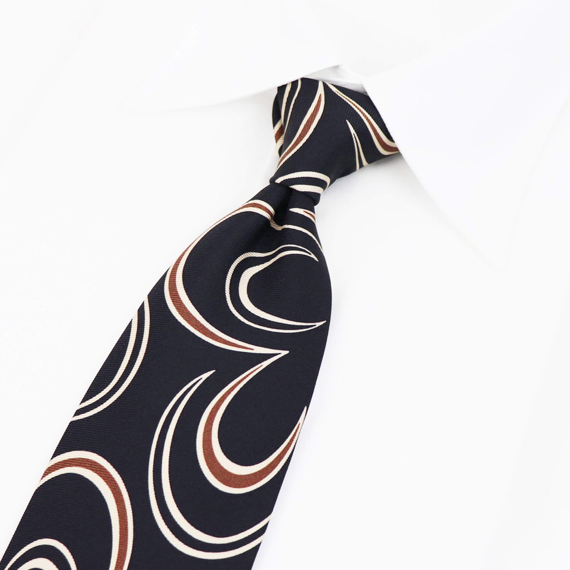 一見するとポップなデザインに見えますが、実際に結んでみると驚くほどにクラシックでエレガントな雰囲気の表情に変わるのに驚かされます。結婚式やパーティーなど華やかなシーンはもちろんのこと、落ち着いた色味ですのでビジネスにおいても活躍してくれる一本です。英国の伝統とイタリアのシルク産業の知識を融合した端正な佇まいが魅力です。ワードローブの一つにあると重宝すること間違いなしです。