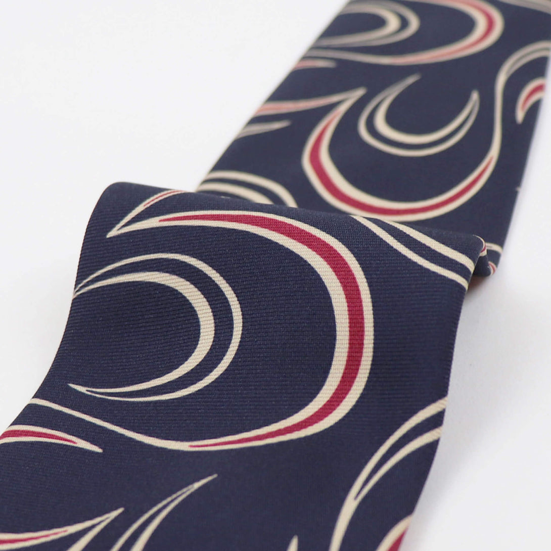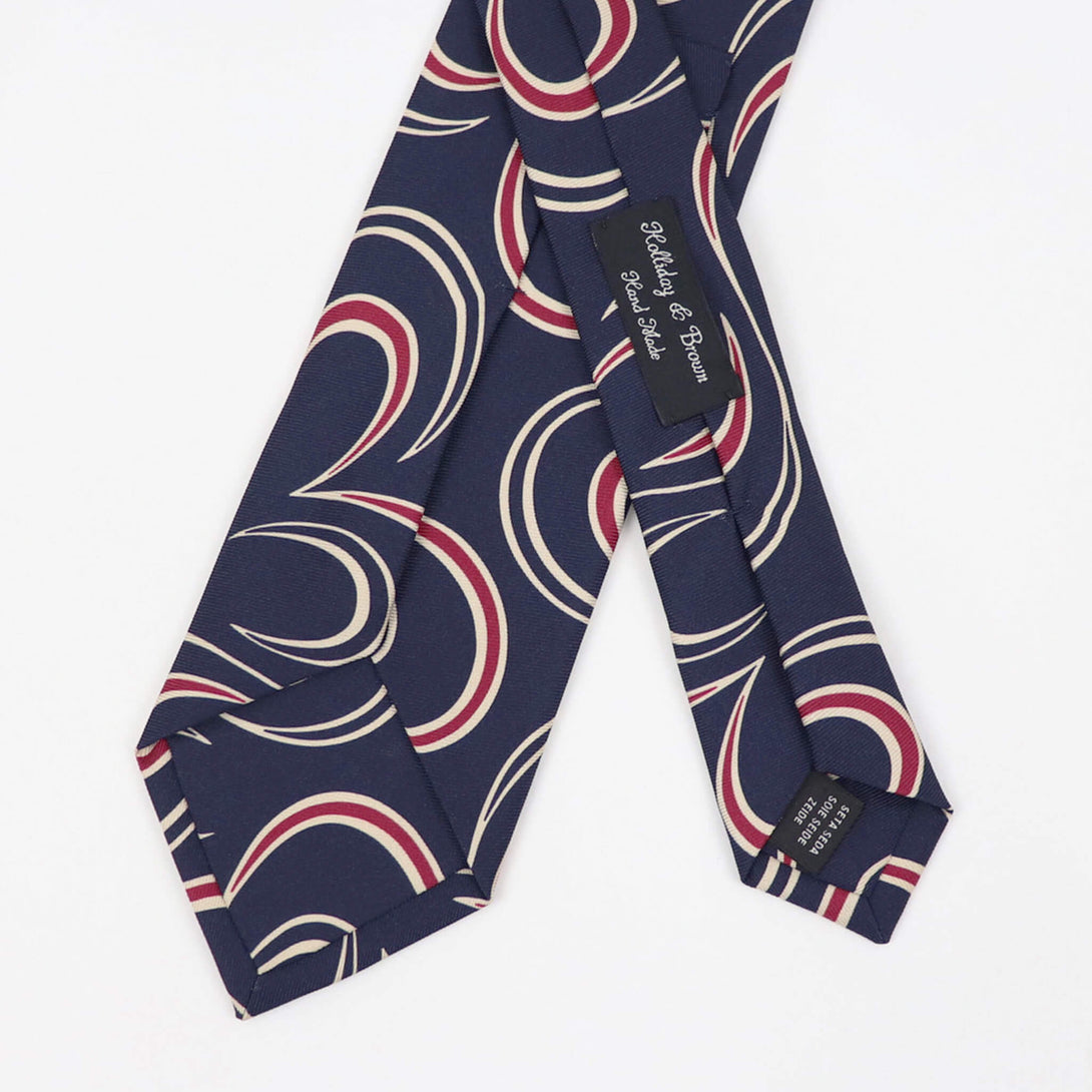 一見するとポップなデザインに見えますが、実際に結んでみると驚くほどにクラシックでエレガントな雰囲気の表情に変わるのに驚かされます。結婚式やパーティーなど華やかなシーンはもちろんのこと、落ち着いた色味ですのでビジネスにおいても活躍してくれる一本です。英国の伝統とイタリアのシルク産業の知識を融合した端正な佇まいが魅力です。ワードローブの一つにあると重宝すること間違いなしです。