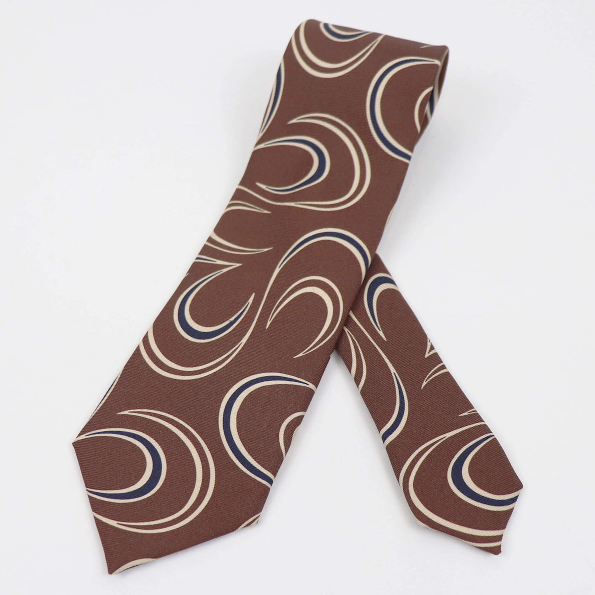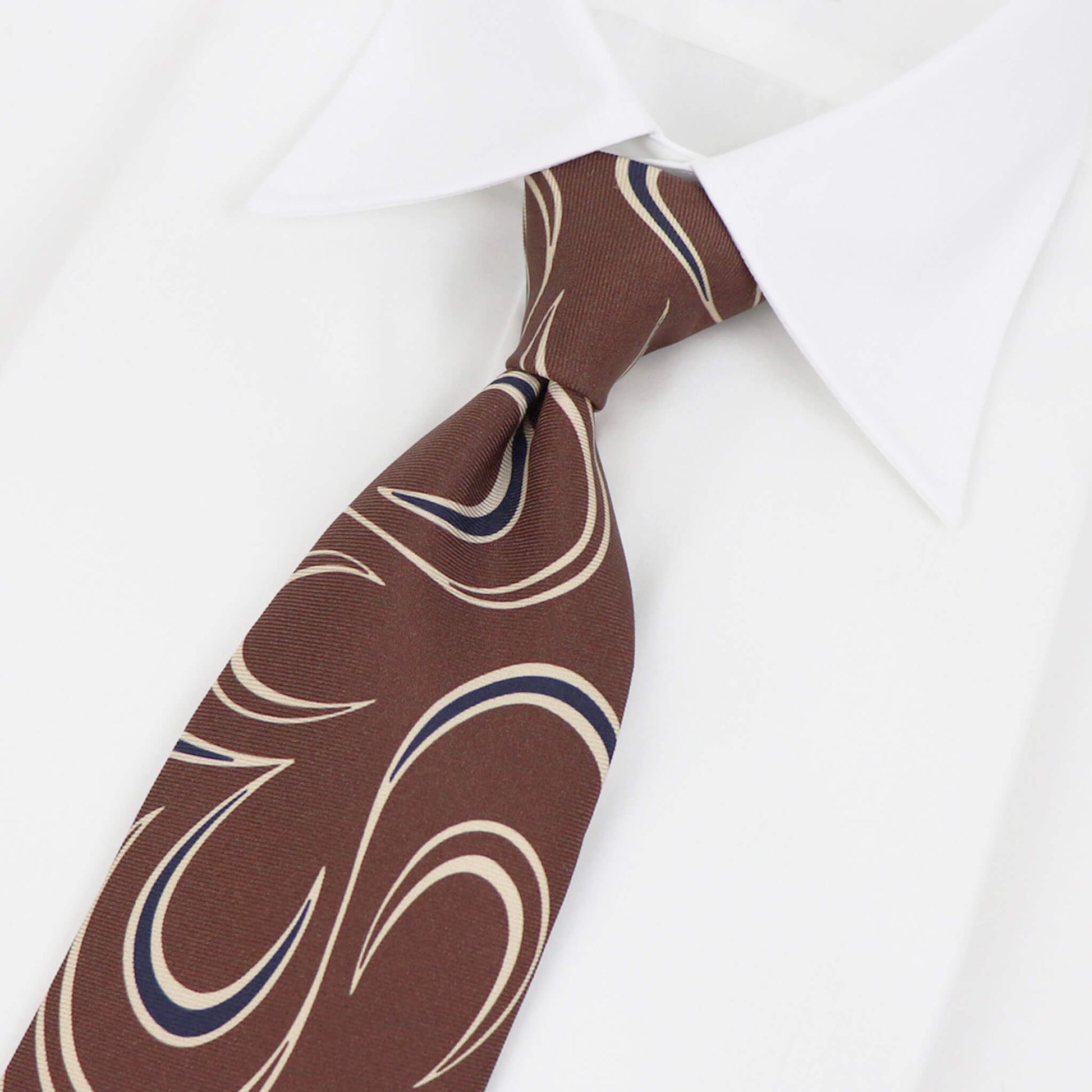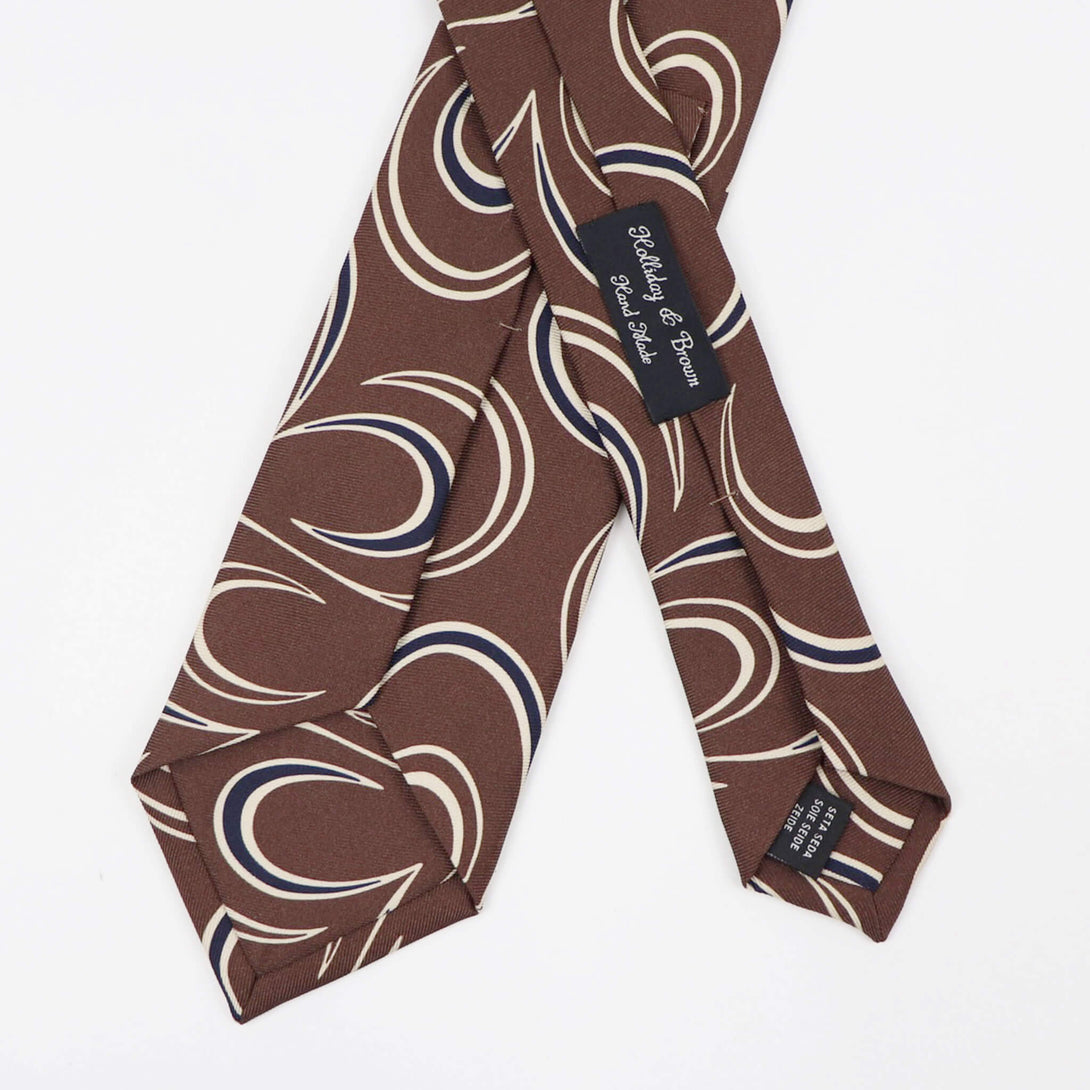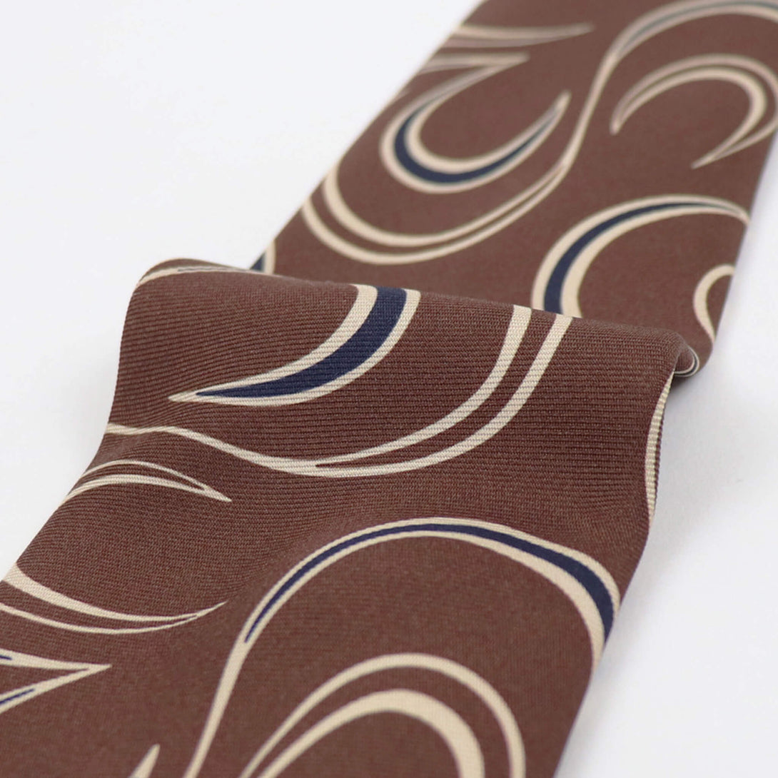 一見するとポップなデザインに見えますが、実際に結んでみると驚くほどにクラシックでエレガントな雰囲気の表情に変わるのに驚かされます。結婚式やパーティーなど華やかなシーンはもちろんのこと、落ち着いた色味ですのでビジネスにおいても活躍してくれる一本です。英国の伝統とイタリアのシルク産業の知識を融合した端正な佇まいが魅力です。ワードローブの一つにあると重宝すること間違いなしです。