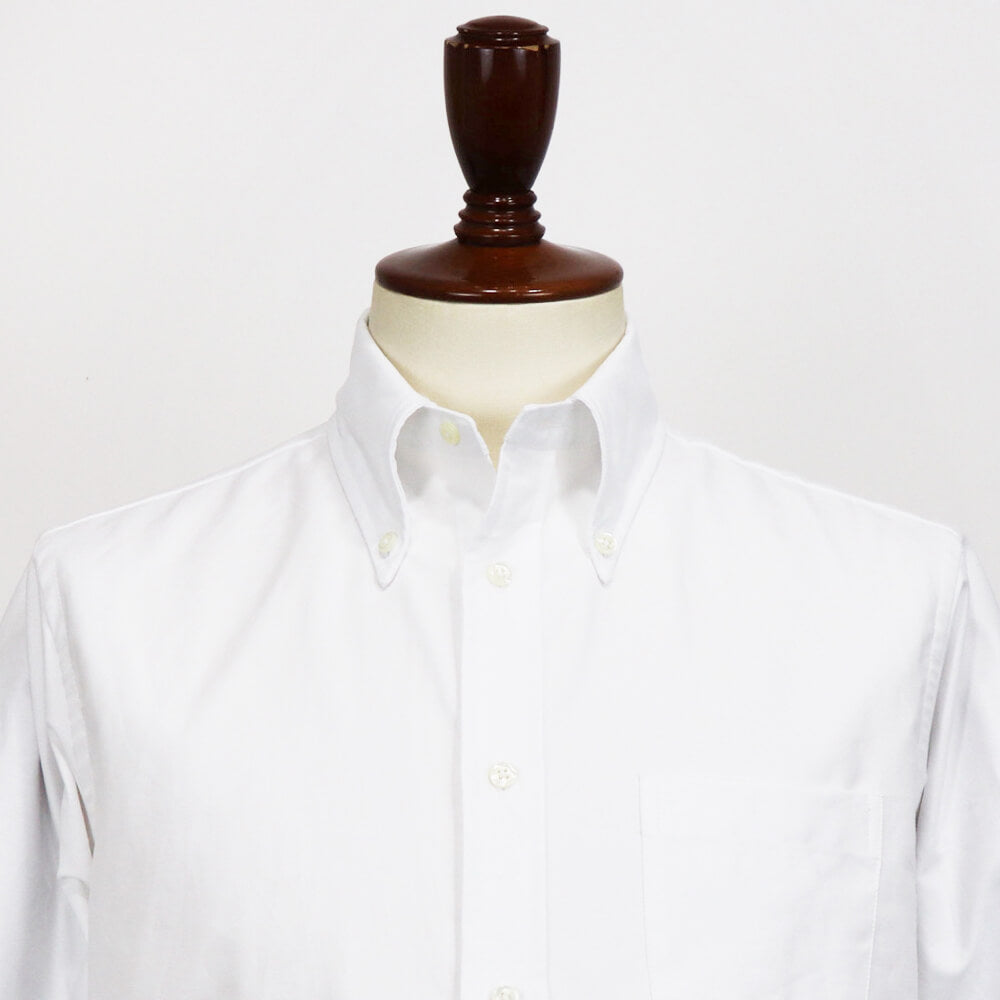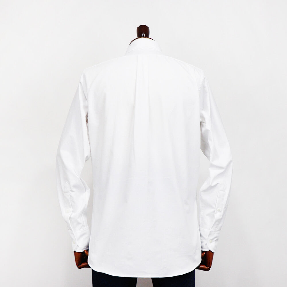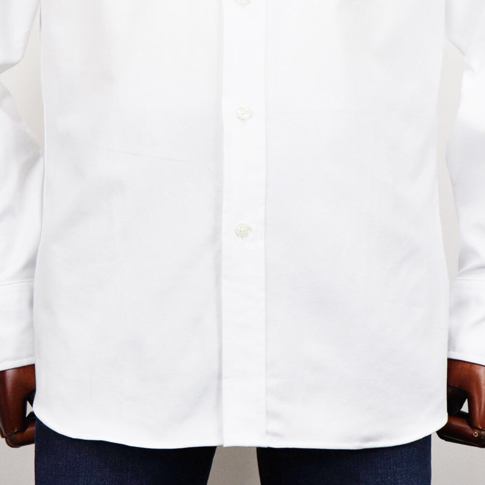 カラーとバンドのシェイプ、そしてその2つの絶妙なバランスはクラシックなアメリカシャツの雰囲気を残しつつ、現代のディテールにアップデートされたものとなっています。背中のプリーツはセンタープリーツを採用しています。これはアメリカのシャツメーカーの基本的考えでドレスシャツはセンタープリーツ仕様、ワークシャツはサイドプリーツ仕様で作るというものです。