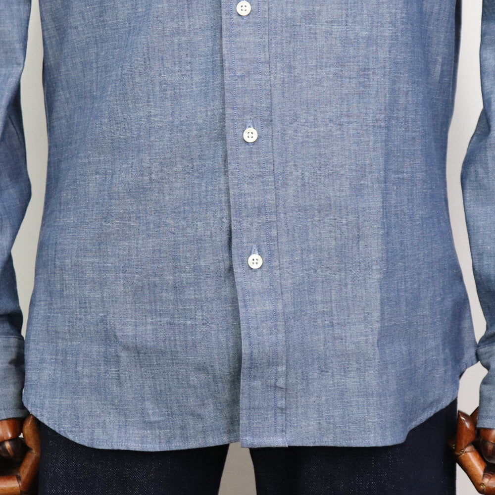 シャツを着た時の動きのストレスを感じさせない作りとなっています。着る人の肩・腕の動きに快適な可動域を確保するため、後身頃の中央に深く入るセンタープリーツ。基本的にドレスシャツはボックス(中央部)、ワークシャツやユニホームシャツはショルダー(腕寄りのサイド側)プリーツと使い分けされています。また、シャツの隠れた生命線とも言える剣ボロ、そして2本のカフ・プリーツ。剣ボロ部分は袋状に縫製しているため、単純な大量生産品とは一線を画す美しさがあり、テーラーシャツメーカーならではの丁寧な作りです。また、カスタムシャツの特徴として剣ボロ部分のボタン、そして2本のカフ・プリーツがインデイビジュアライズドシャツのアイコンとなっています。