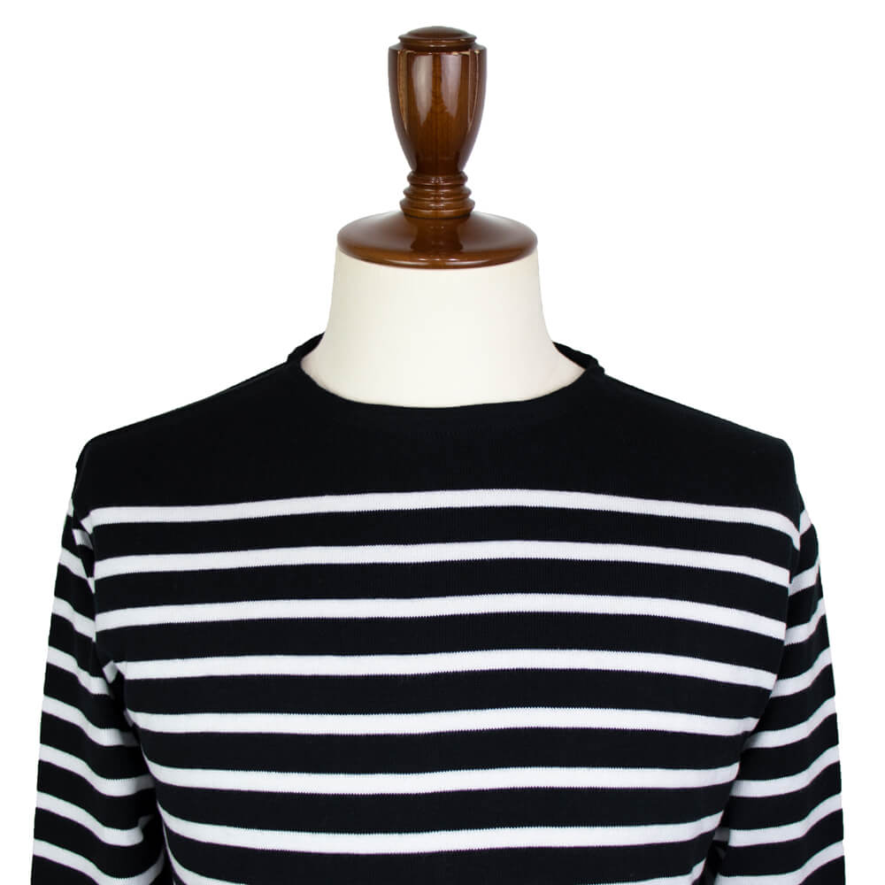 フランス・スペイン国境のバスク地方でフィッシャーマンが着用していたバスクシャツをシーアイランドコットンで贅沢に編み立てた24Gニット。配色も含めバスクシャツ特有のマリンテイストをあえて感じさせない、モダンな印象のバスクシャツとなっています。
