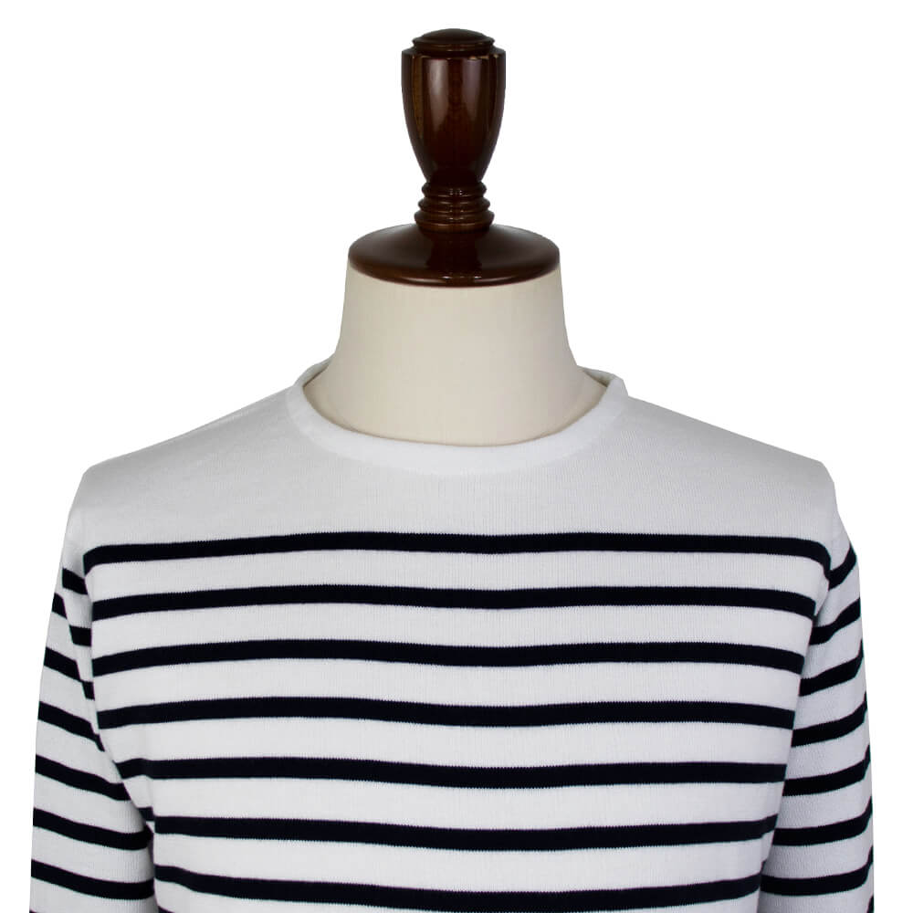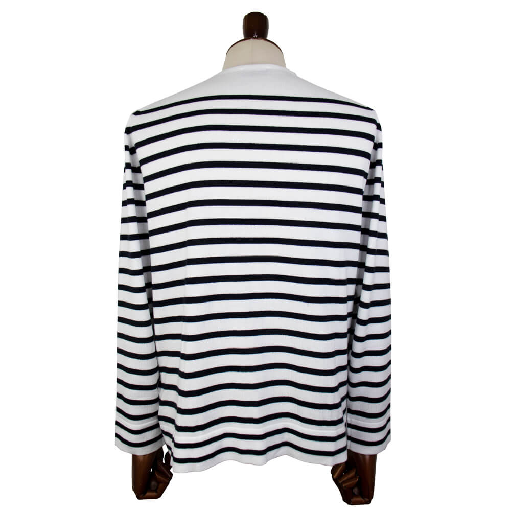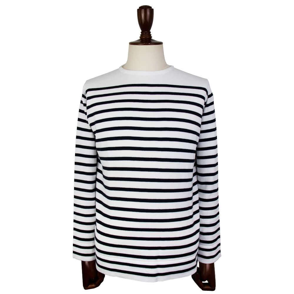 フランス・スペイン国境のバスク地方でフィッシャーマンが着用していたバスクシャツをシーアイランドコットンで贅沢に編み立てた24Gニット。配色も含めバスクシャツ特有のマリンテイストをあえて感じさせない、モダンな印象のバスクシャツとなっています。
