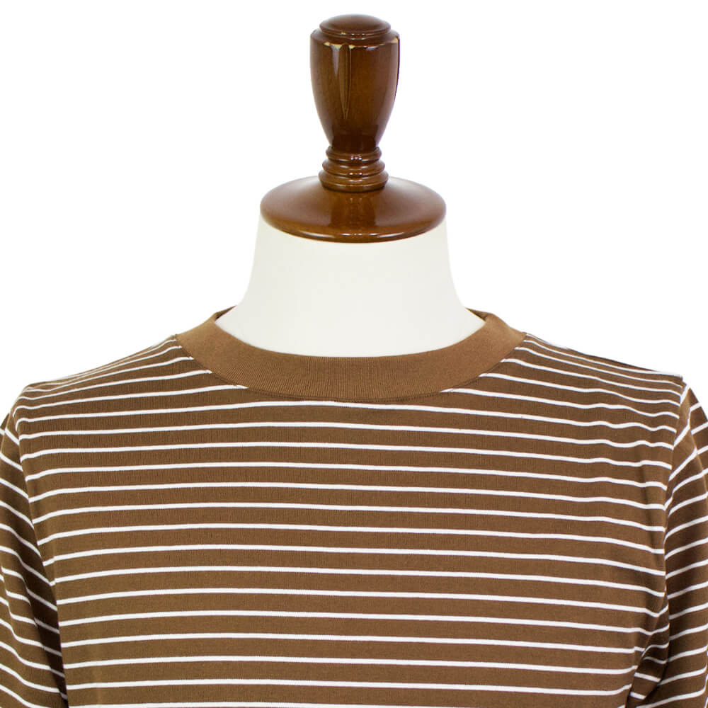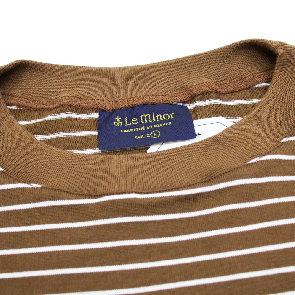 Le minor(ルミノア)20ゲージコットン ボーダー クルーネックカットソー【ブラウン×ホワイト】