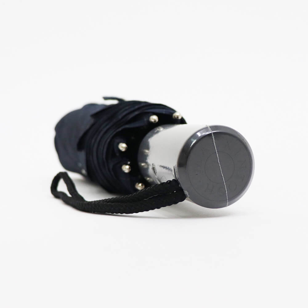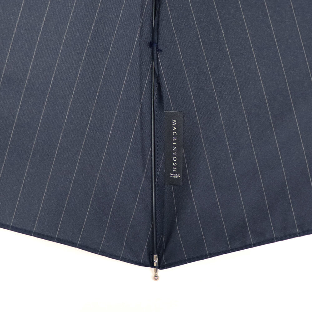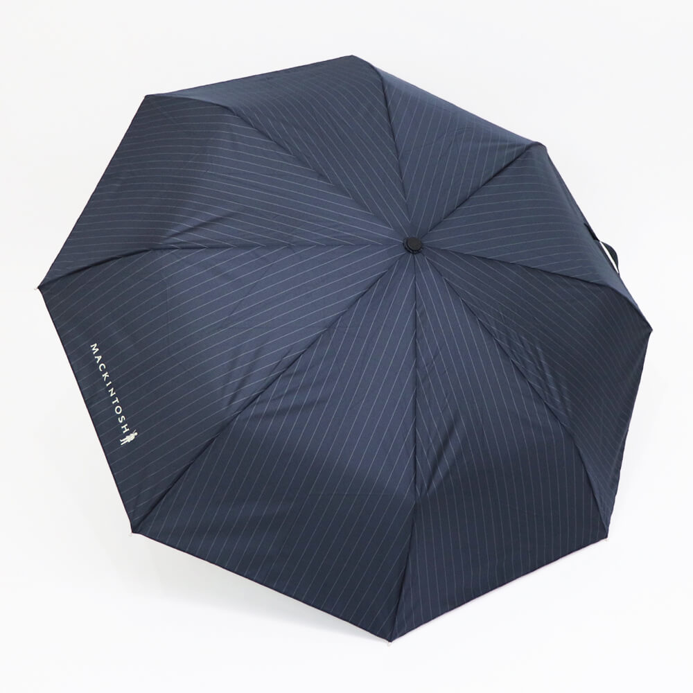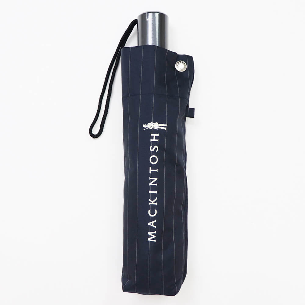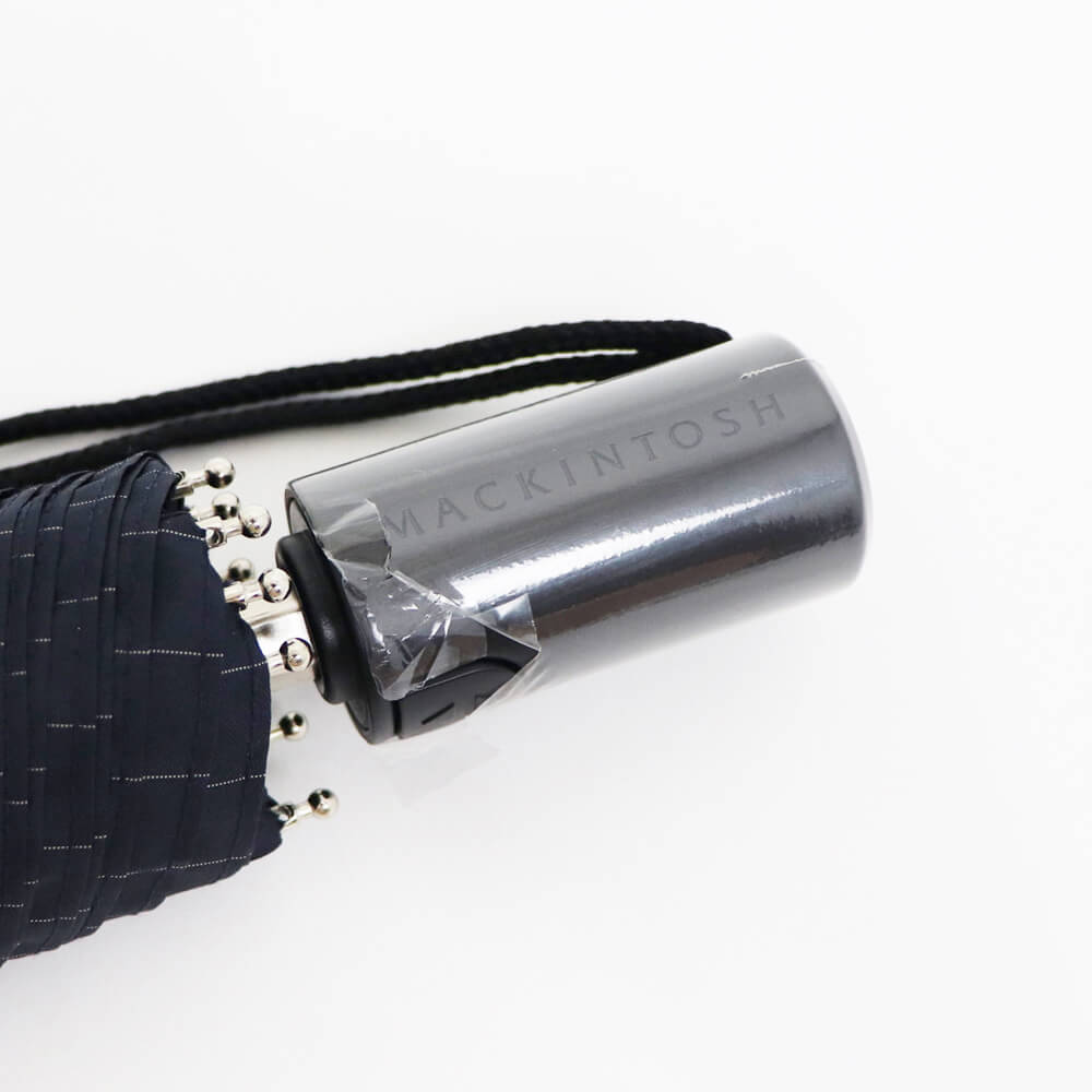 端正でスポーティーな表情が特徴的な折り畳み傘。ワンタッチで開閉できて使い勝手も抜群。シャフトを短く収納する際に安全な反発防止機能も付いている優れもの。傘袋にはマッキントッシュのアウターにも使用しているロゴ入りドットボタンをあしらい、上品な雰囲気に仕上げました。