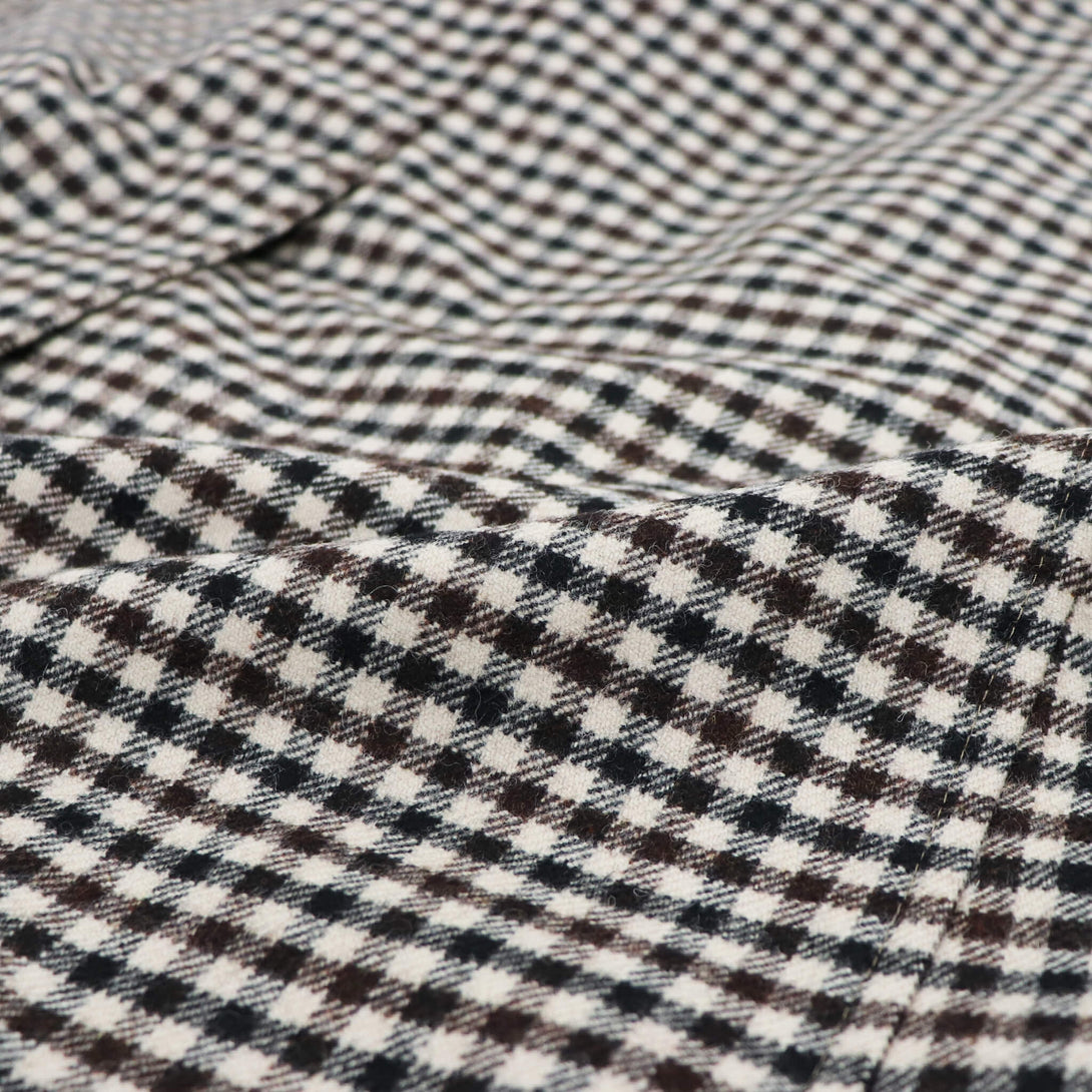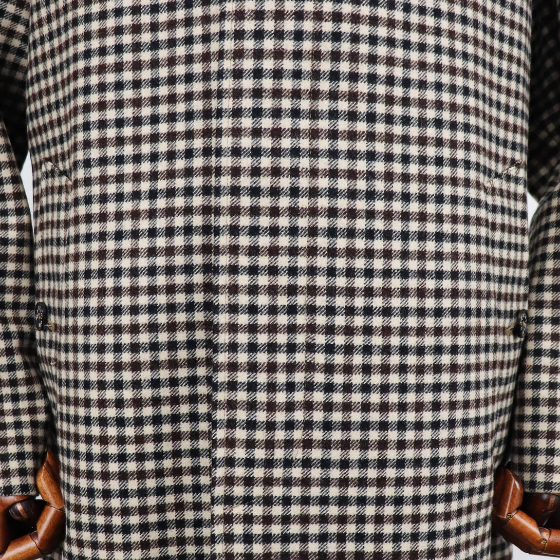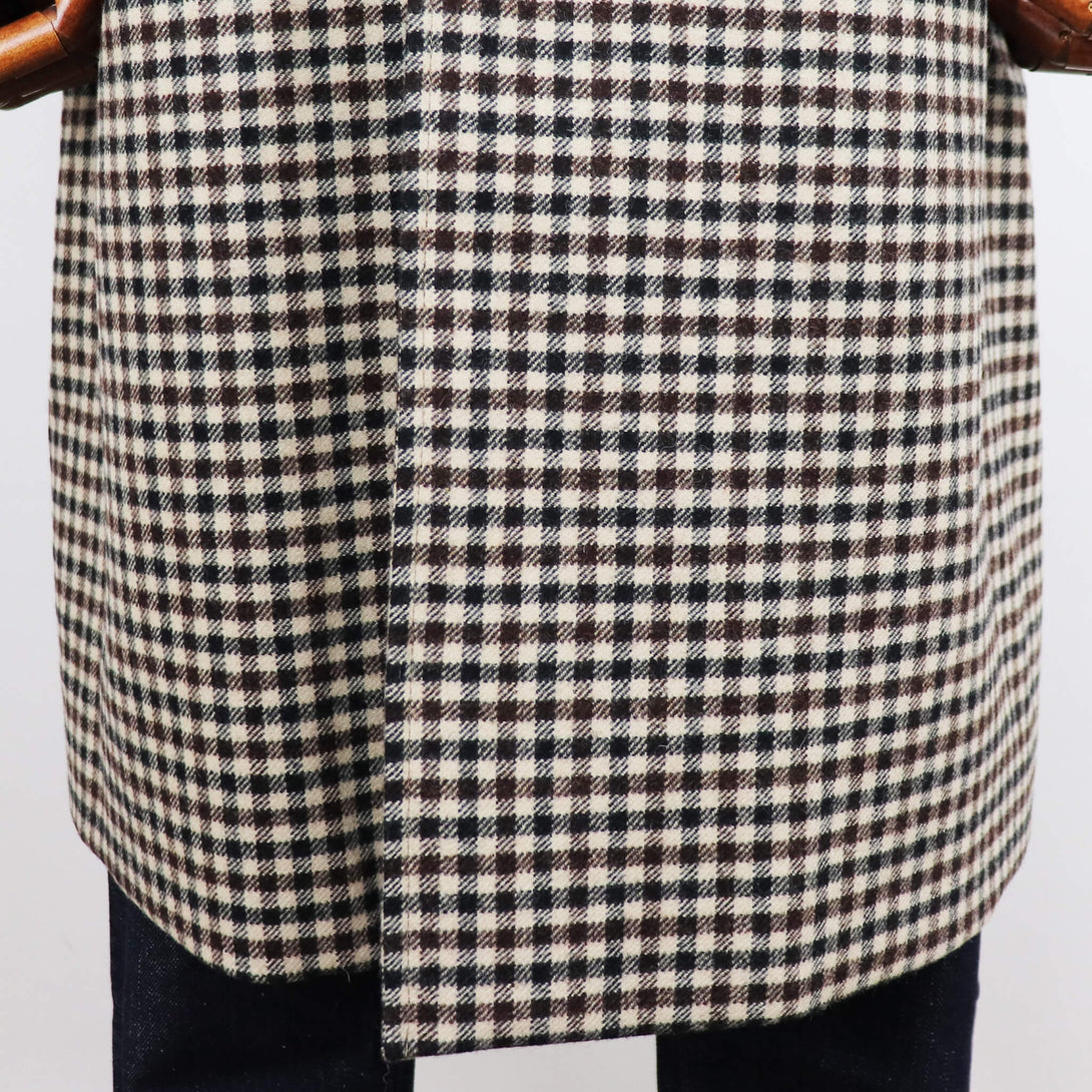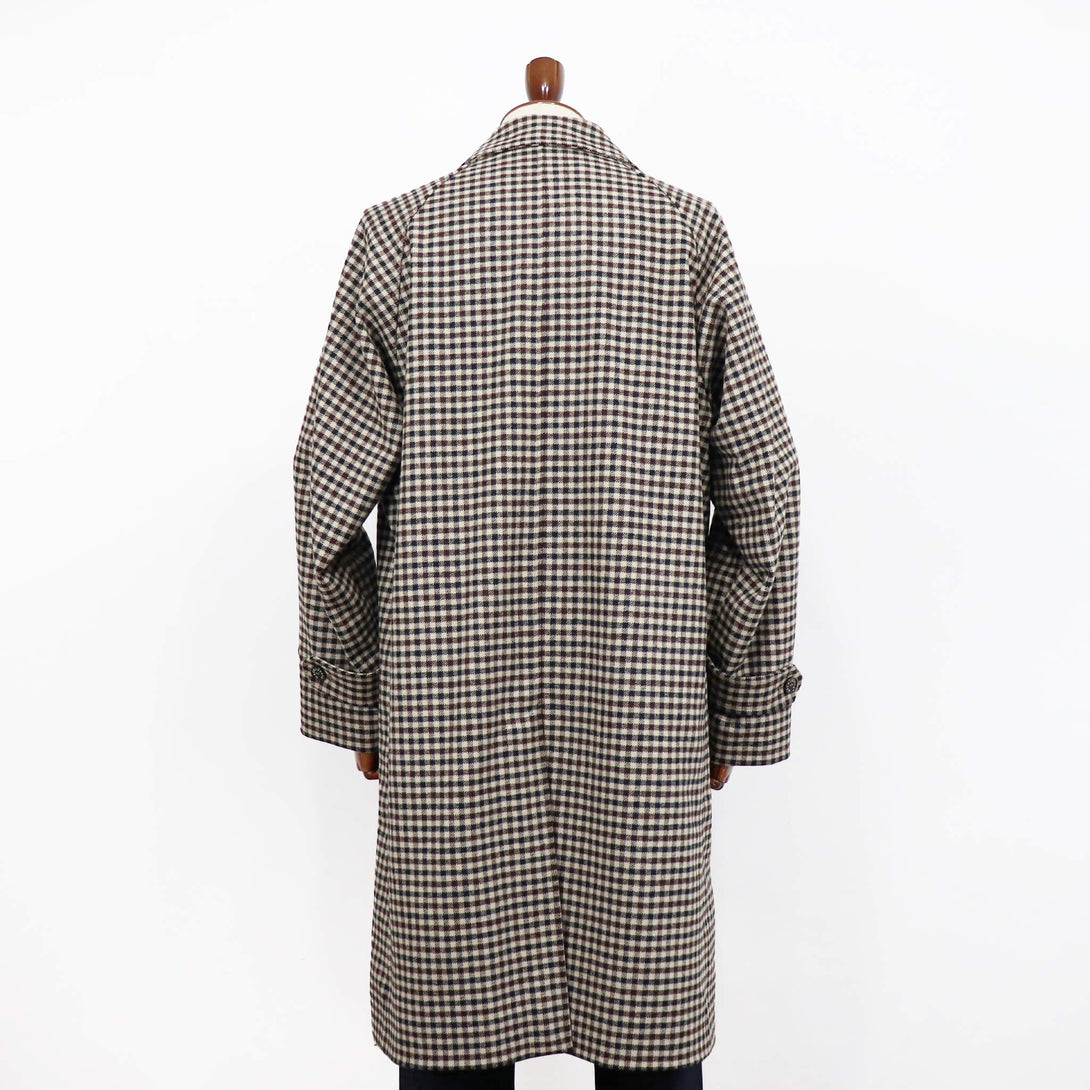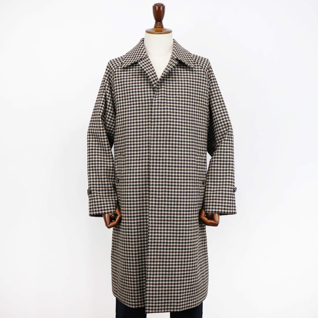 今季のセレクトは、モデル名”BELFORD”の緩やかなAラインになるシルエットと肩の落ち具合が絶妙なバランスのバルカラーコート。適度なウエイトがありながらもストレスのない着心地となっています。時代に左右されないオーセンティックなディテールのバルカラーコート、生地はガンクラブチェック。生地だけを見たらブリティッシュカントリーなムードですが、スーツスタイルや、オフホワイト・ベージュ系のワントーンコーデに合わせて都会的なスタイリングを楽しんでみてはいかがでしょうか。