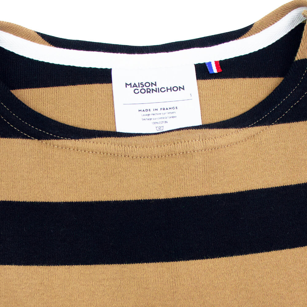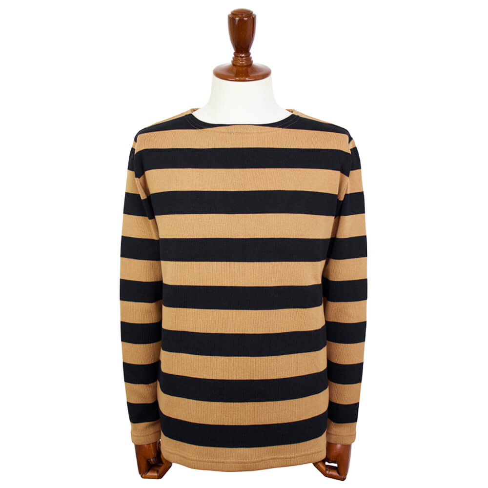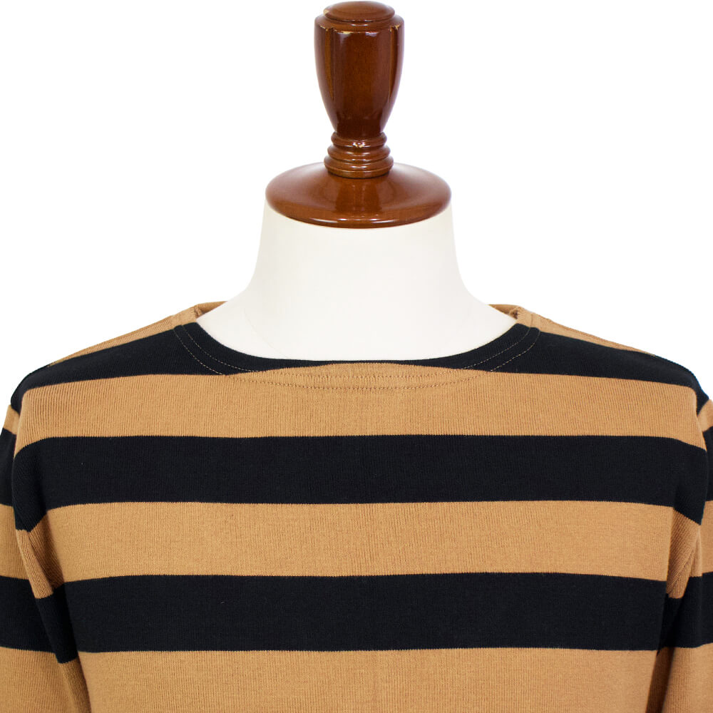 カットソーでありながらニットのようにも使うことができる一枚。伸縮性と着心地の良さはコルニションならでは。バスクシャツなので首元が横にスーッと広がる上品なボートネックカットソー。程よい首元の広がり方は、上品なフランスらしい味付けとなっています。ドイツ製のヴィンテージ編み機によって作り出された生地はフランス国内でも数社、数少ない貴重な物となっています。背景も含め、少しフレンチな気分を味わいたい。そんな一着に仕上がっています。