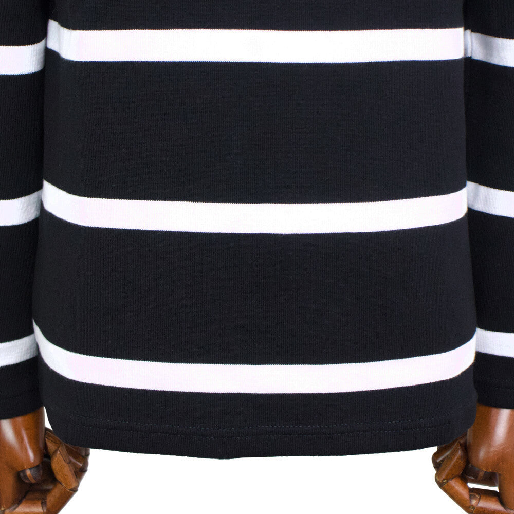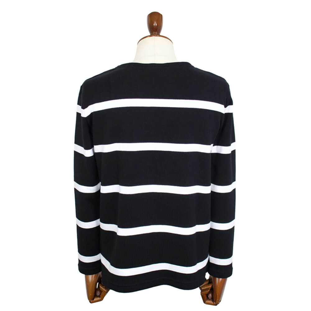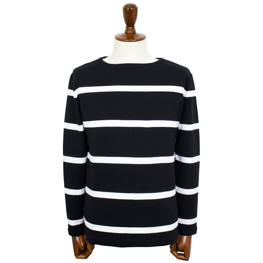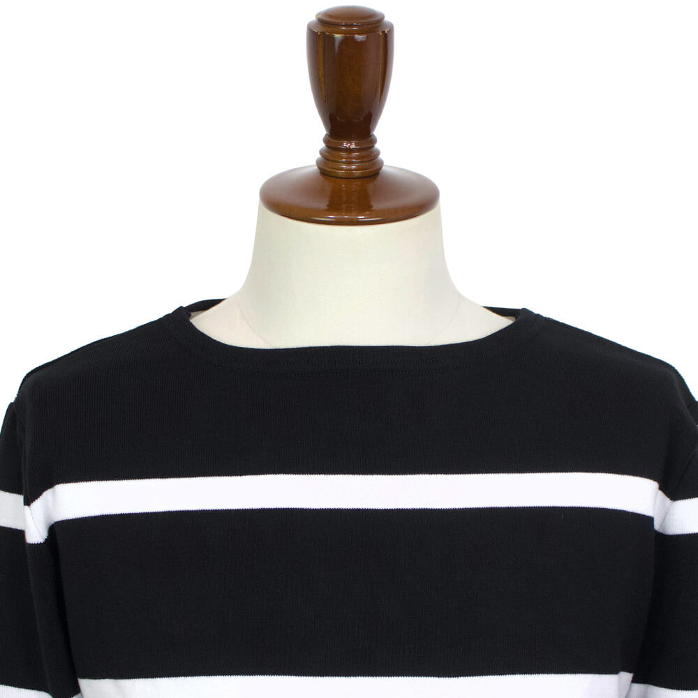 カットソーでありながらニットのようにも使うことができる一枚。伸縮性と着心地の良さはコルニションならでは。バスクシャツなので、首元が横にスーッと広がる上品なボートネックカットソー。程よい首元の広がり方は、上品なフランスらしい味付けとなっています。ドイツ製のヴィンテージ編み機によって作り出された生地はフランス国内でも数社、数少ない貴重な物となっています。背景も含め、少しフレンチな気分を味わいたい。そんな一着に仕上がっています。