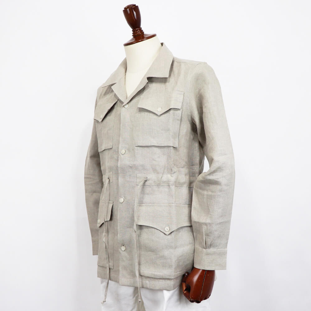 昨年ご好評いただいた、リネン素材のサファリシャツジャケットALFREDOが今季も登場です。柔軟で爽やかな肌触りだけでなく、通気性にも優れた軽やかなリネン素材を厳選し使用した一着です。シャツ生地のテーラードジャケットはここ数年主流になりつつありますが、このカジュアルなサファリジャケットは実にMASSIMO D'AUGUSTOらしい逸品です。