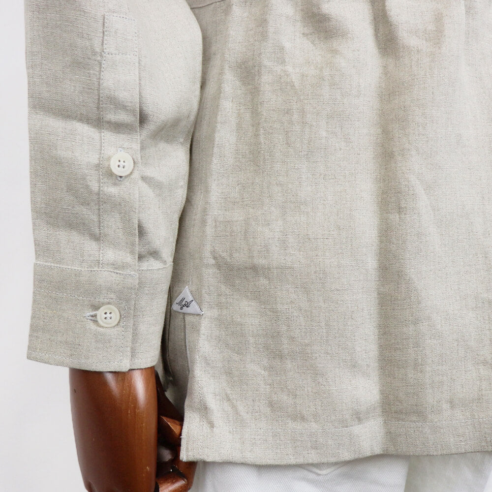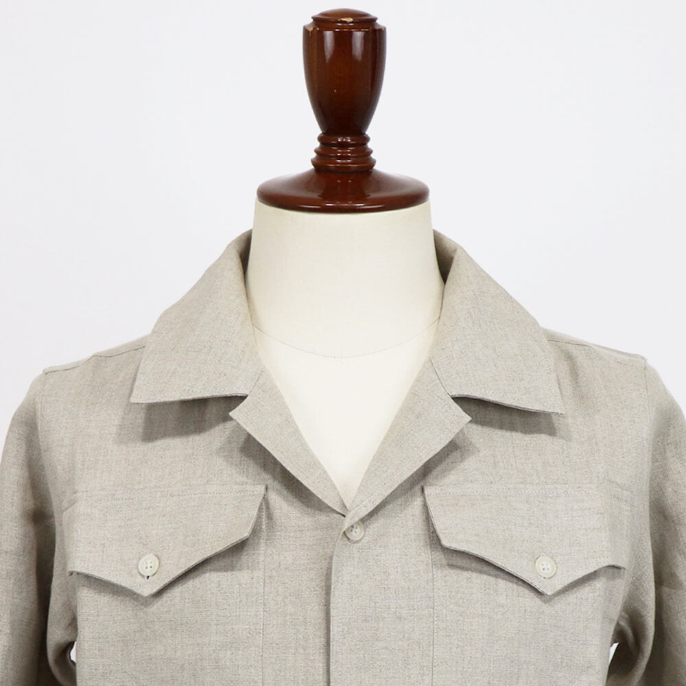 不揃いな太さの糸で織り上げた独特の風合いが魅力で通気性が良くナチュラルなタッチを生み出し、洗濯を重ねることで生まれる起毛感が更にソフトなタッチの生地へと変化をしていきます。ブランドならではの抜群のフィッティングや美しいシルエットは上品さをプラスしてくれます。真夏は腕まくりをして涼しげに着用するのが大人の色気を演出し、プリーツパンツやグルカパンツなどと合わせたレトロリゾートスタイルを楽しみたいアイテムですね!