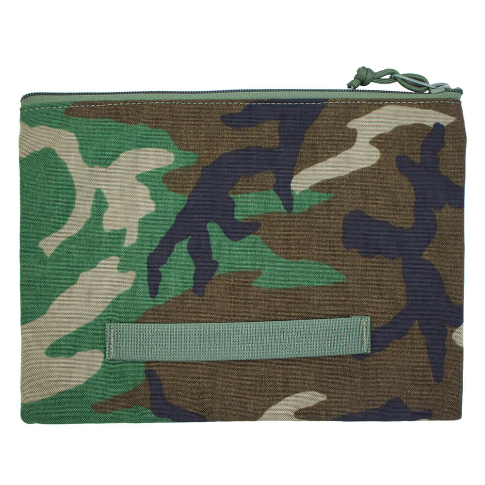 耐水性ウレタンコーティング加工のデュポン社製1000デニールのコーデュラナイロンを使用、裏地には、耐水性ウレタンコーティング加工の420デニールのパッククロスナイロンを使用しています。ジップには、YKKの丈夫な形状保持ファスナーを使用したコイル状樹脂ファスナー。背面にはウェビング素材の持ち手付きとなっています。