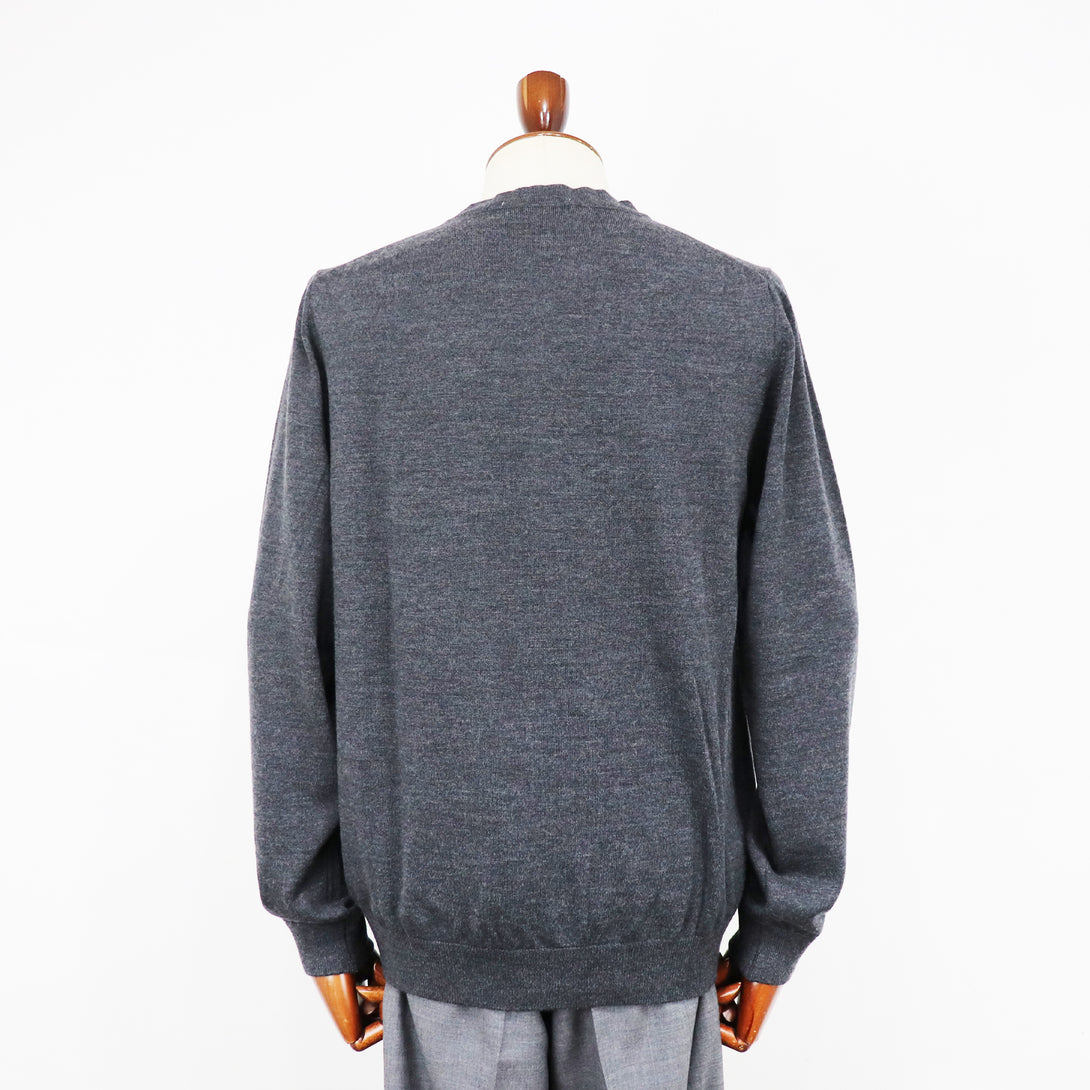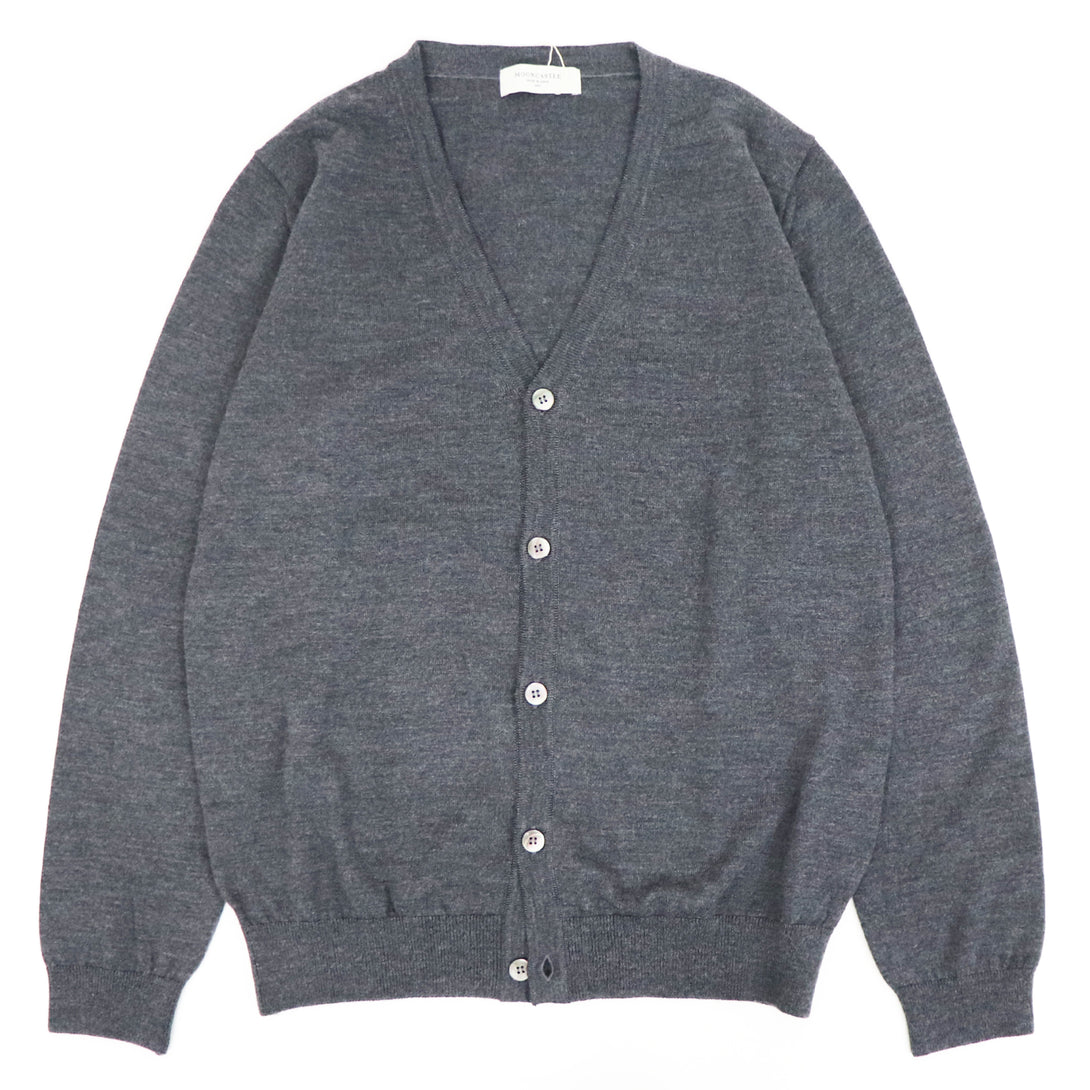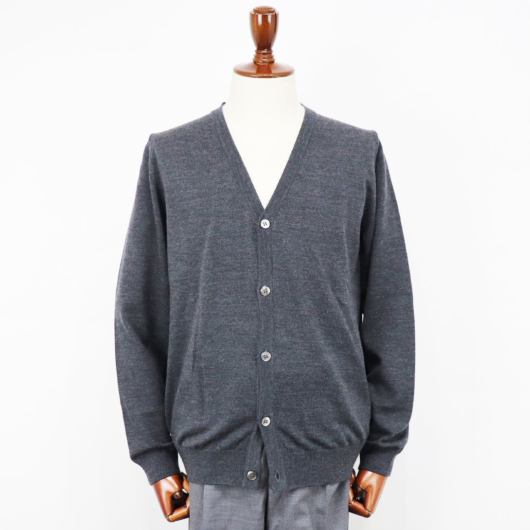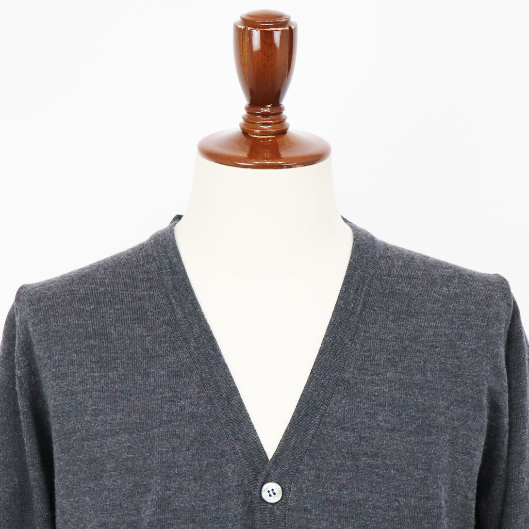 オーストラリア産メリノウールを使用したこのカーディガンは、繊細でしなやかな繊維ならではの滑らかな肌触りと上品な光沢感が魅力です。12G天竺編みによる細かく均一な編み目は、見た瞬間に上質さが伝わるハイゲージ仕上げ。目を詰めて編み立てることで生地にほどよい厚みと耐久性、そして高い保温性を持たせ、ウール特有のチクチク感を抑えて快適な着心地を実現しました。計算されたVネックラインは首元に適度な余裕を持たせ、黒蝶貝ボタンの奥行きある輝きと相まって洗練された印象に。袖や裾のリブはきつすぎず緩すぎない絶妙なフィット感で、シルエットを美しく整えながらジャケットのインナーとしても使いやすいデザインです。冬のワードローブに欠かせない、大人の魅力を引き上げるベーシックなウールカーディガンです。