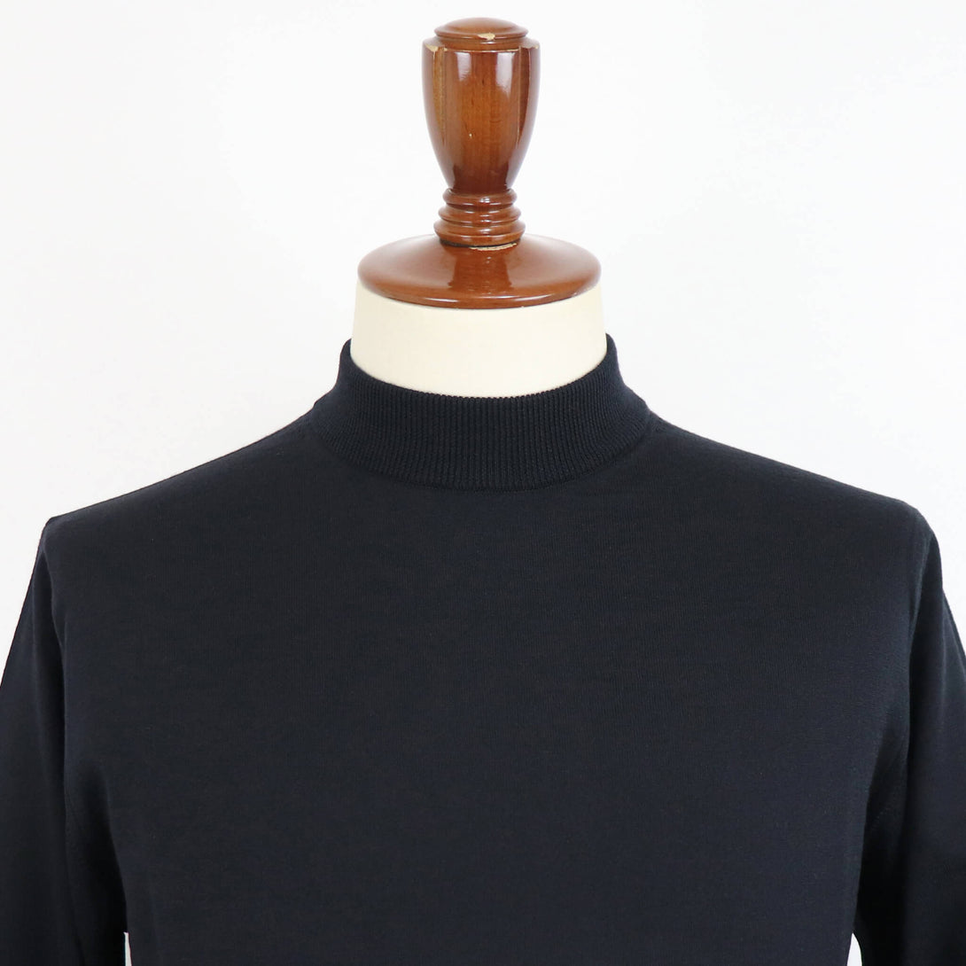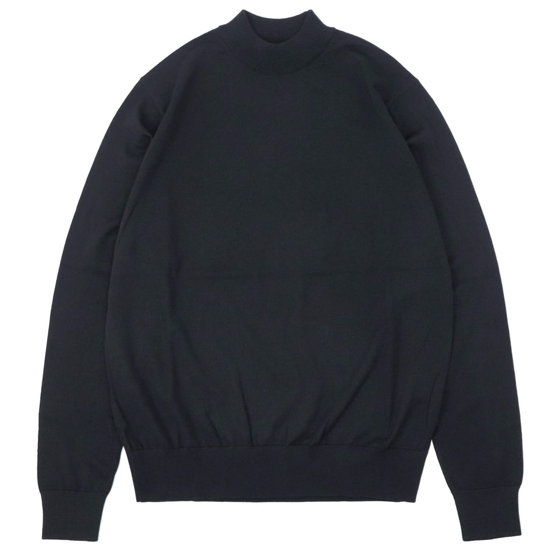 nomiamo/ノミアモの定番、エクストラファインメリノウールで編み上げた33ゲージのモックネックウールニットです。国内でも非常に希少なフルファッション編機で編み上げられた世界に誇るメイドインジャパンのハイゲージニットです。滑らかな表面としなやかな質感を持ったモックネックニットは、ウールの素材の良さがダイレクトに感じられる素晴らしい物となっています。首元がスッキリとしたモックネックはタートルネックが少し苦手な方にもおすすめ。ジャケットのインナーに着ると首周りに付く皮脂汚れなども防いでくれます。スーツやジャケットなどのドレスアイテムからカジュアルまで幅広いコーディネートに使う事ができます。