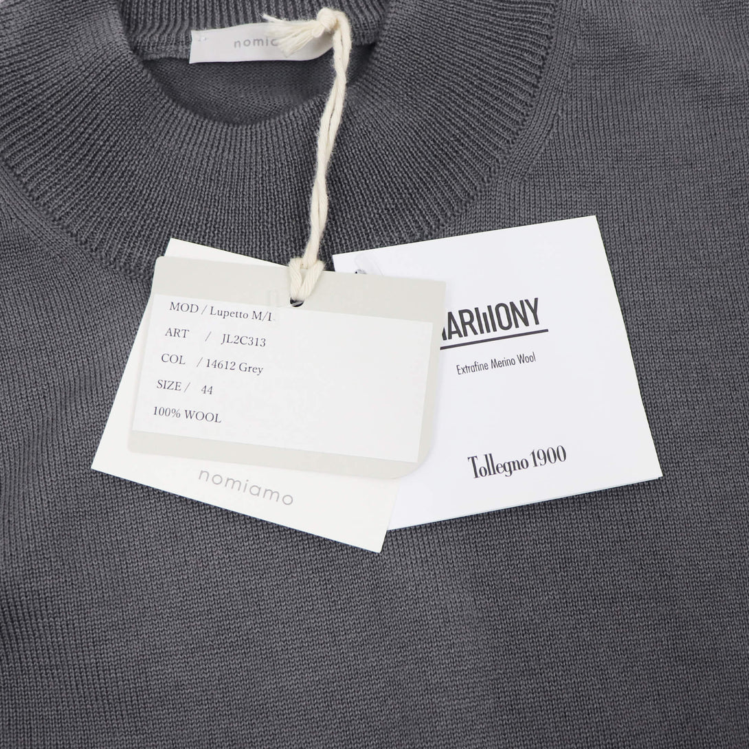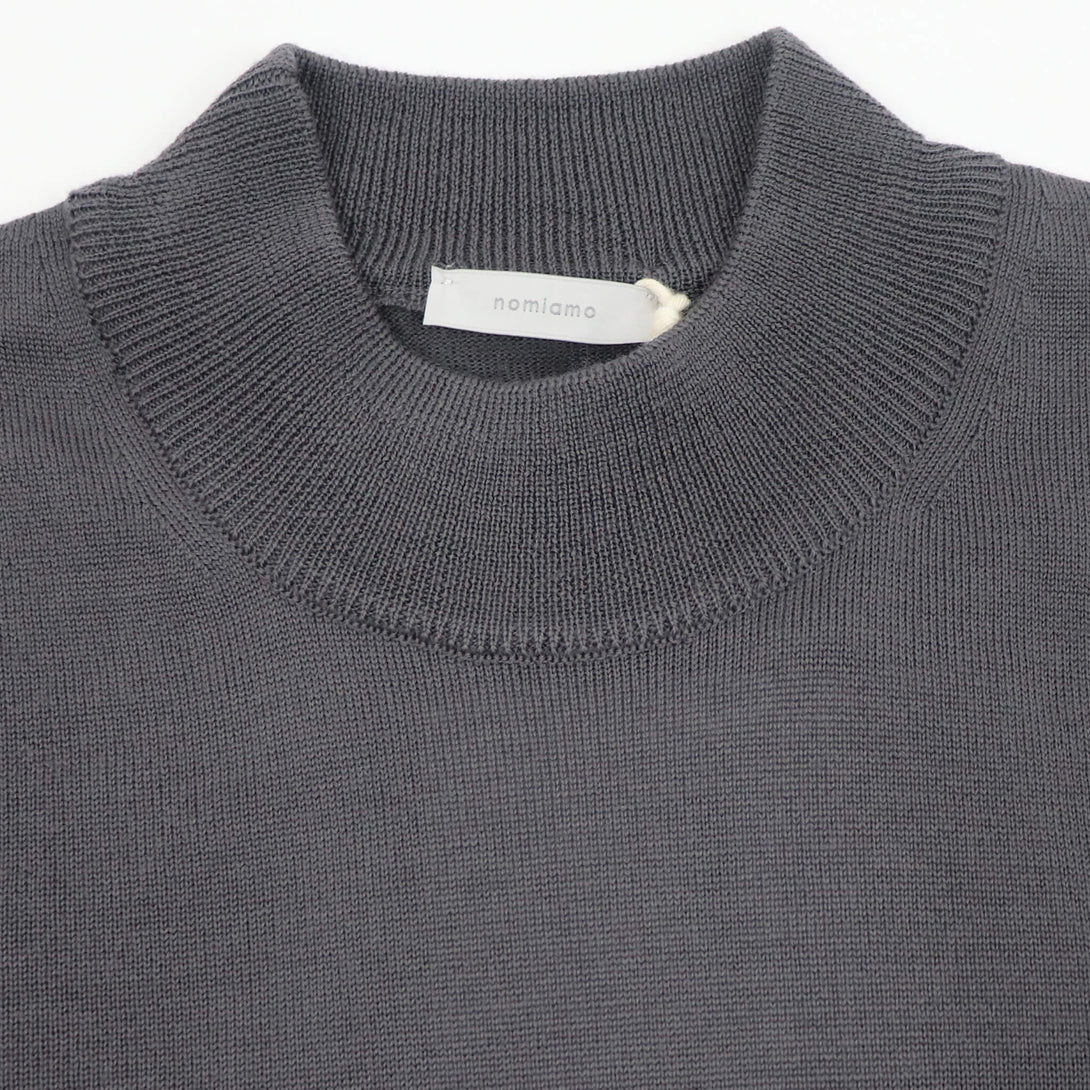 nomiamo(ノミアモ)のウールモックネックニット。イタリア・トレーニョ社製の12Gエクストラファインメリノウールを使用し、艶のある美しい表情と、しなやかで心地よい肌触りが魅力です。