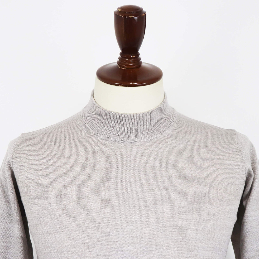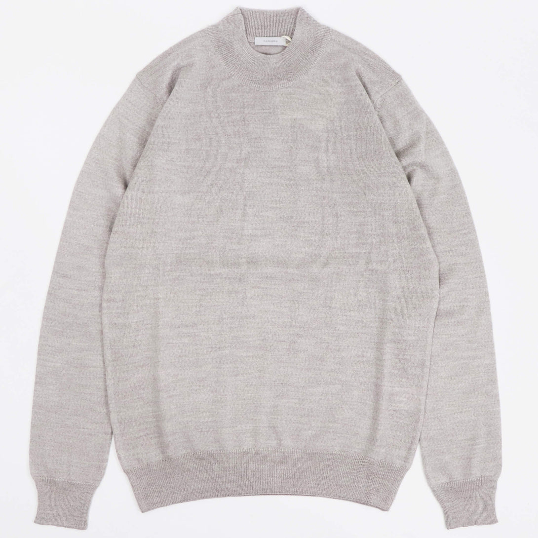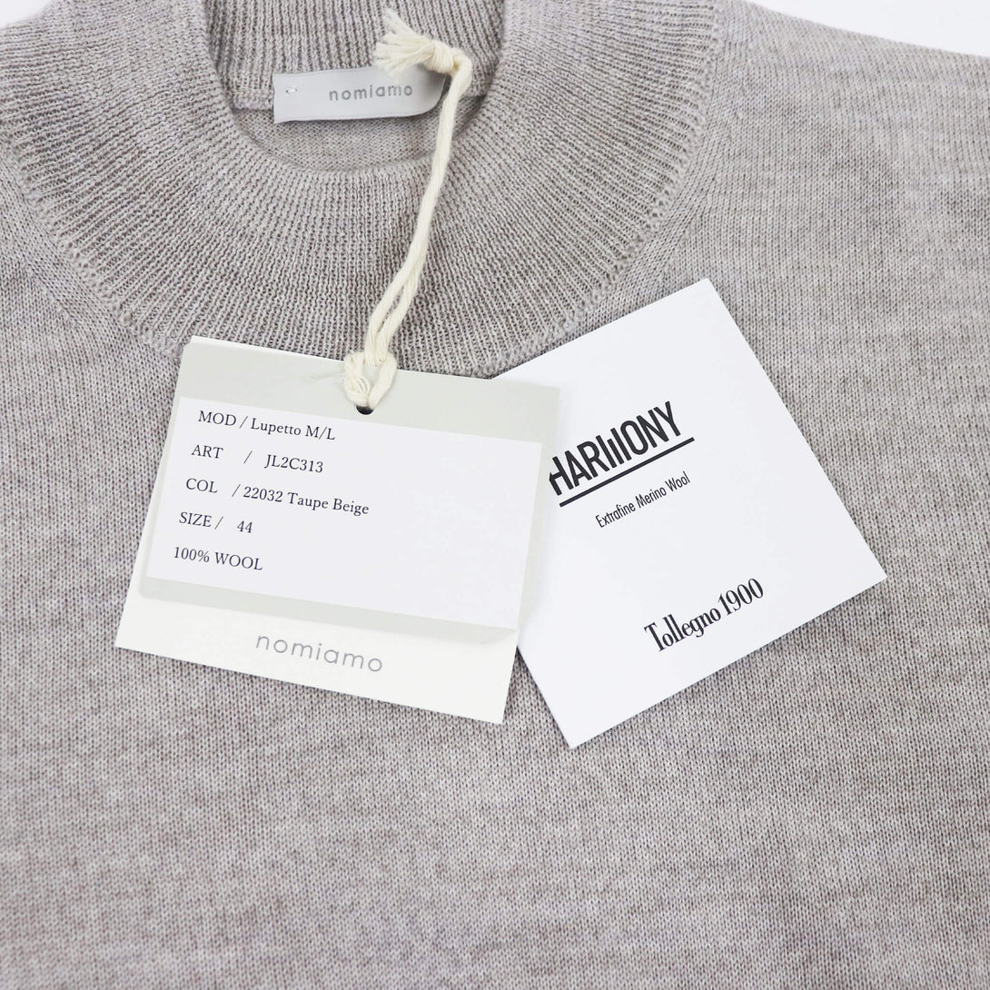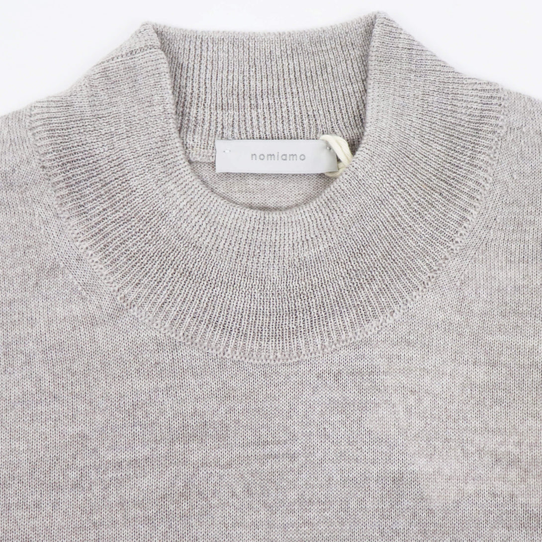 nomiamo(ノミアモ)のウールモックネックニット。イタリア・トレーニョ社製の12Gエクストラファインメリノウールを使用し、艶のある美しい表情と、しなやかで心地よい肌触りが魅力です。