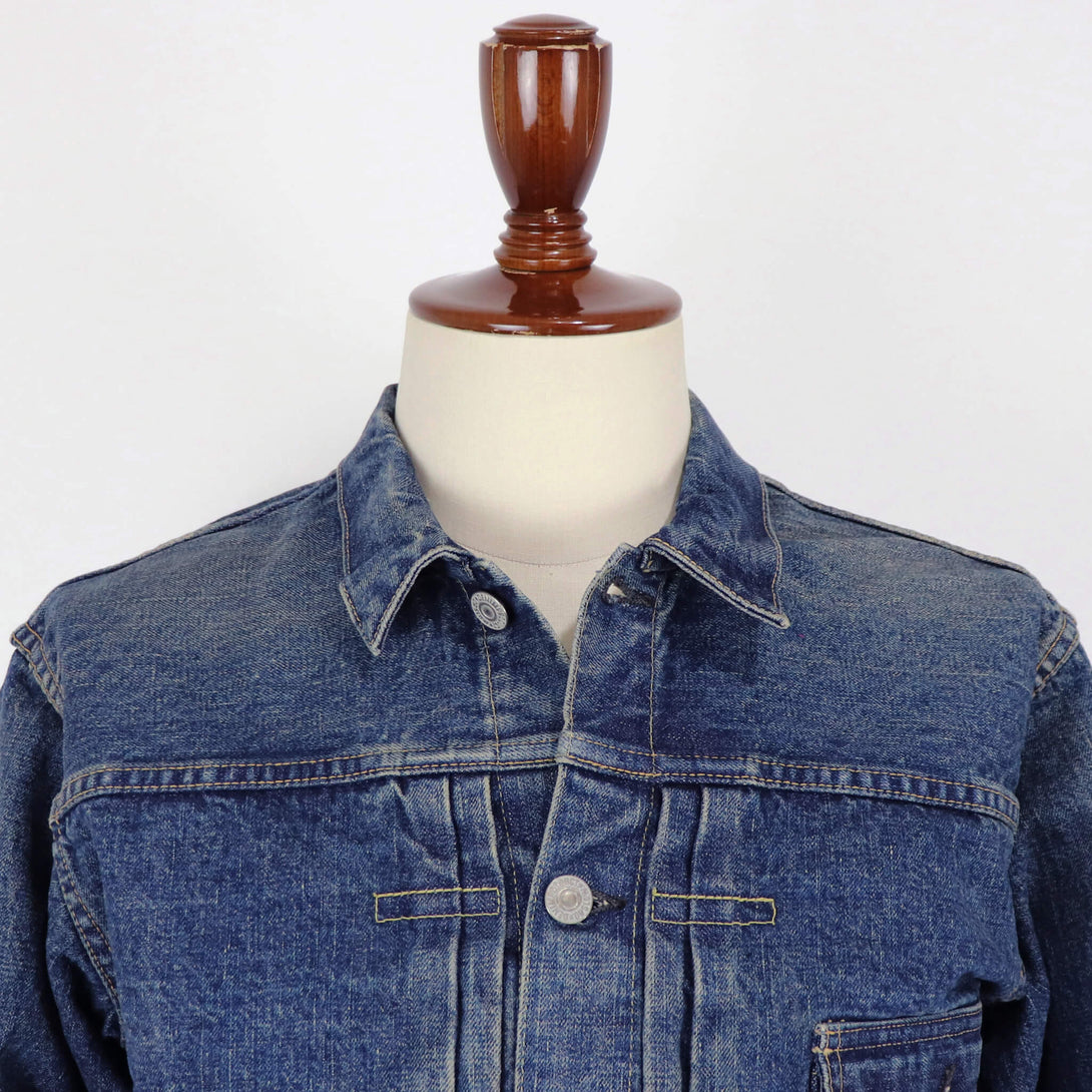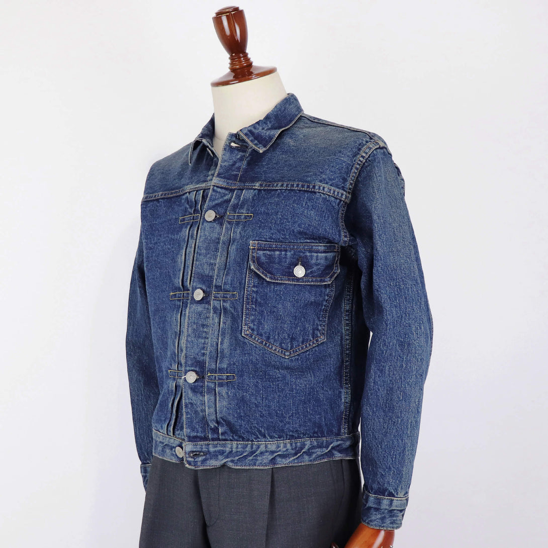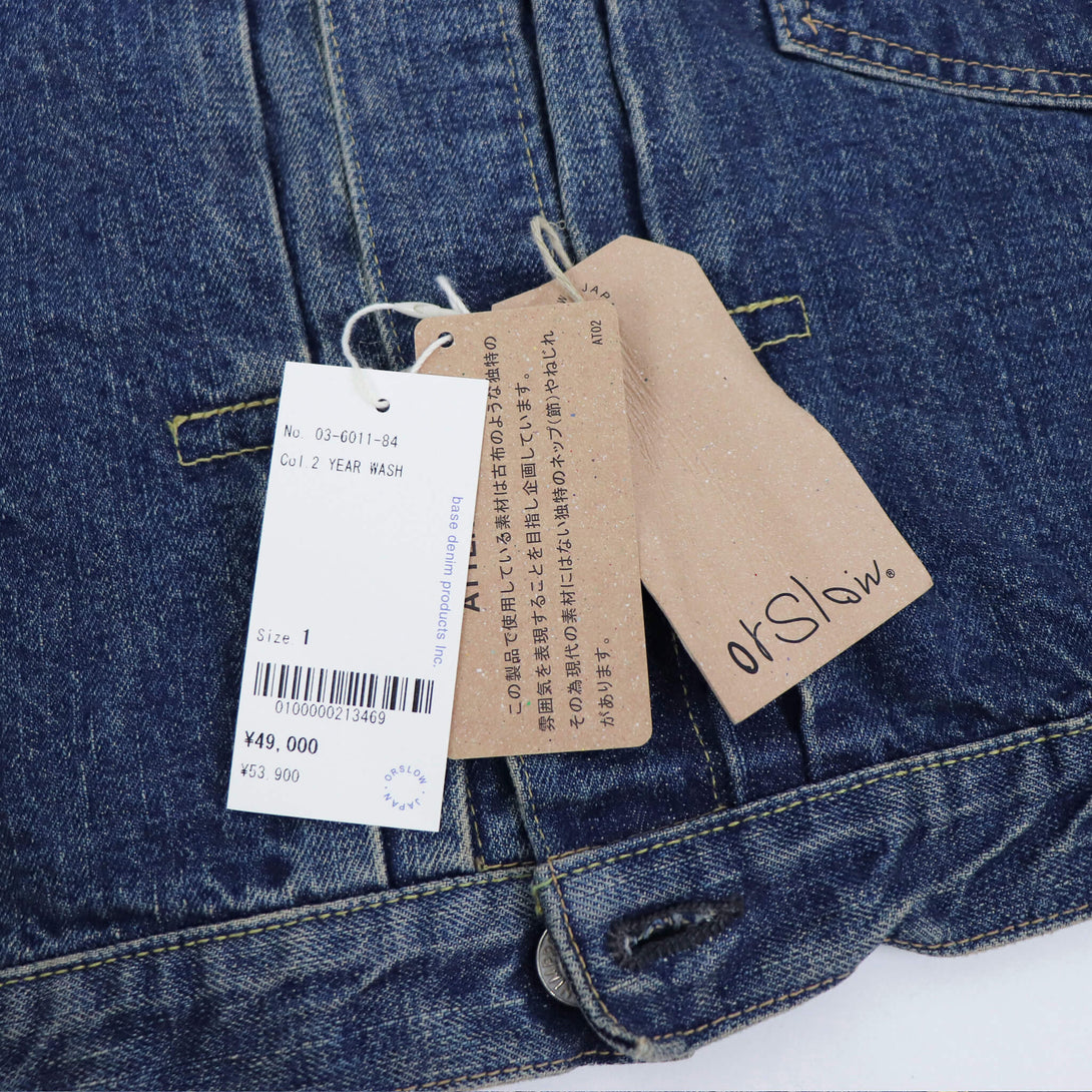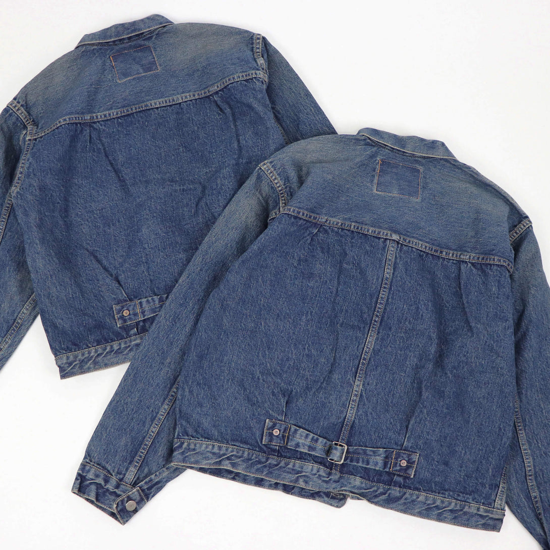今季、orSlow(オアスロウ)から素敵なアイテムが届きました。1940年代、デニム素材のジャケットがまだジージャンと呼ばれていなかった時代プリーツの入ったブラウスと呼ばれていました。フロントプリーツのデザインは1800年代のなごりがあります。織り上がった後に防縮加工がかかっていない生地は縦方向によく縮み1800年代当時は生地を横使いで縫製し洗い後縮んだ際にプリーツをほどけば身幅を広げることが出来るといった仕様になっていたとも言われています。生地を縦方向に使う仕様になってからもデザインだけが残り現代でもフロントプリーツのデザインとして継承されています。1940年代のデニムは後年のデニムに比べ縦ムラが長い傾向があります。原料の綿を手摘みでしていたか機械でしていたかにより繊維の砕け方が違うからなのか定かではないですが1940年代以前のデニムと1950年代のデニムではムラの表情が違います。orslow6011に仕様しているオリジナルデニムも縦ムラが他の物より長い素材を使用しています。背中の仕様はサイズ3以上はTバックの仕様になっています。物が貴重で無駄なく使われていた時代に大きいサイズの生地の用尺をよくするために考えられた仕様だと思われます。