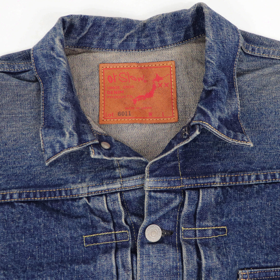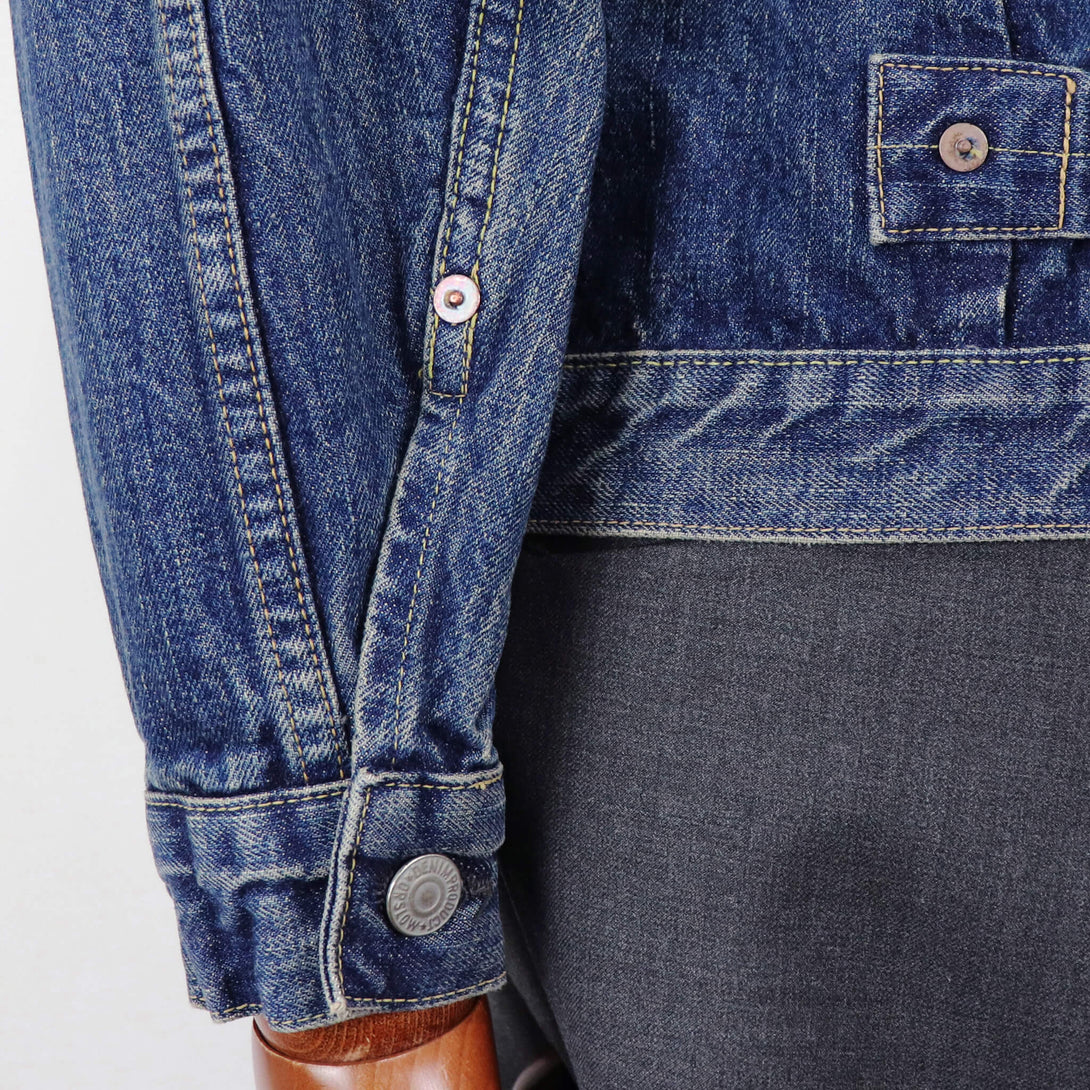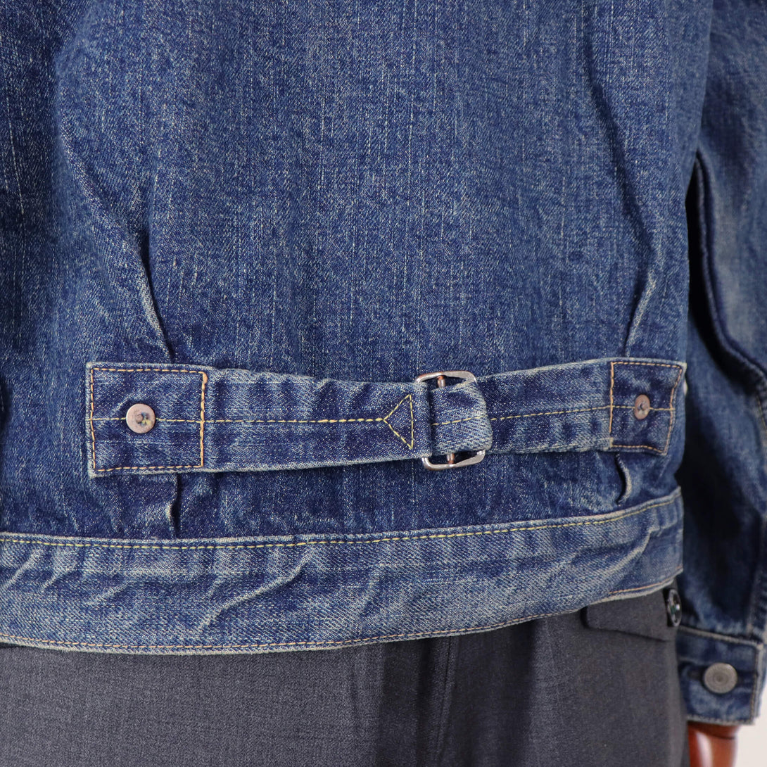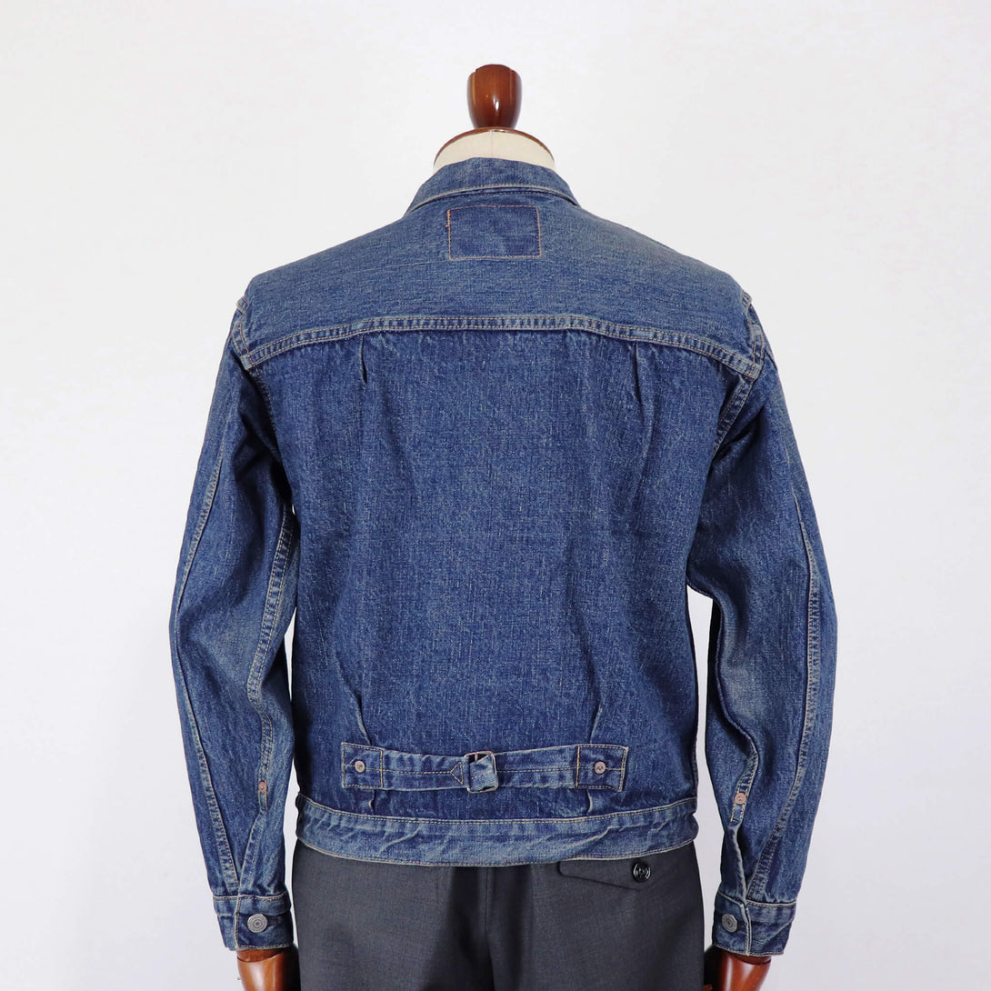 今季、orSlow(オアスロウ)から素敵なアイテムが届きました。1940年代、デニム素材のジャケットがまだジージャンと呼ばれていなかった時代プリーツの入ったブラウスと呼ばれていました。フロントプリーツのデザインは1800年代のなごりがあります。織り上がった後に防縮加工がかかっていない生地は縦方向によく縮み1800年代当時は生地を横使いで縫製し洗い後縮んだ際にプリーツをほどけば身幅を広げることが出来るといった仕様になっていたとも言われています。生地を縦方向に使う仕様になってからもデザインだけが残り現代でもフロントプリーツのデザインとして継承されています。1940年代のデニムは後年のデニムに比べ縦ムラが長い傾向があります。原料の綿を手摘みでしていたか機械でしていたかにより繊維の砕け方が違うからなのか定かではないですが1940年代以前のデニムと1950年代のデニムではムラの表情が違います。orslow6011に仕様しているオリジナルデニムも縦ムラが他の物より長い素材を使用しています。背中の仕様はサイズ3以上はTバックの仕様になっています。物が貴重で無駄なく使われていた時代に大きいサイズの生地の用尺をよくするために考えられた仕様だと思われます。