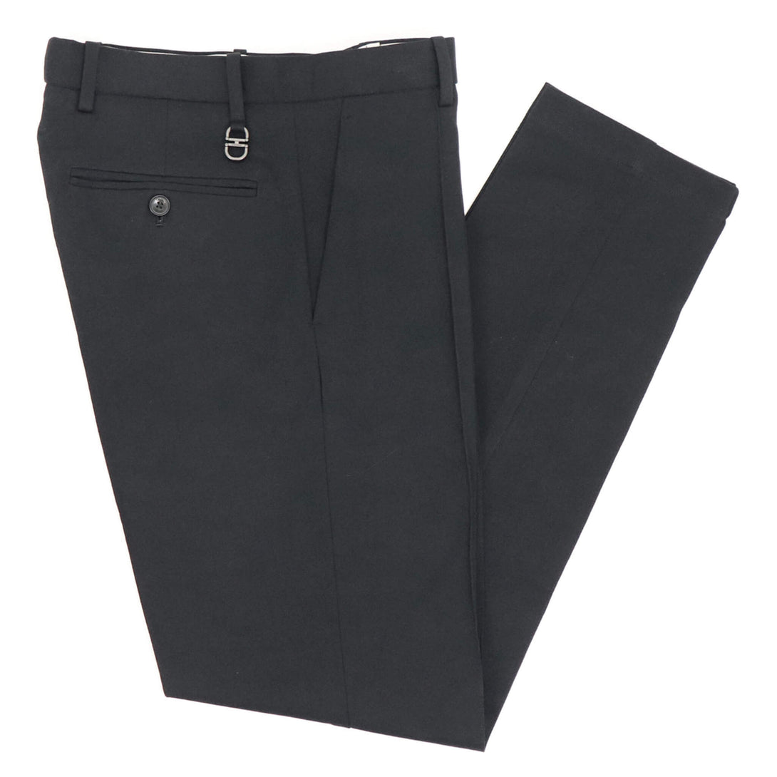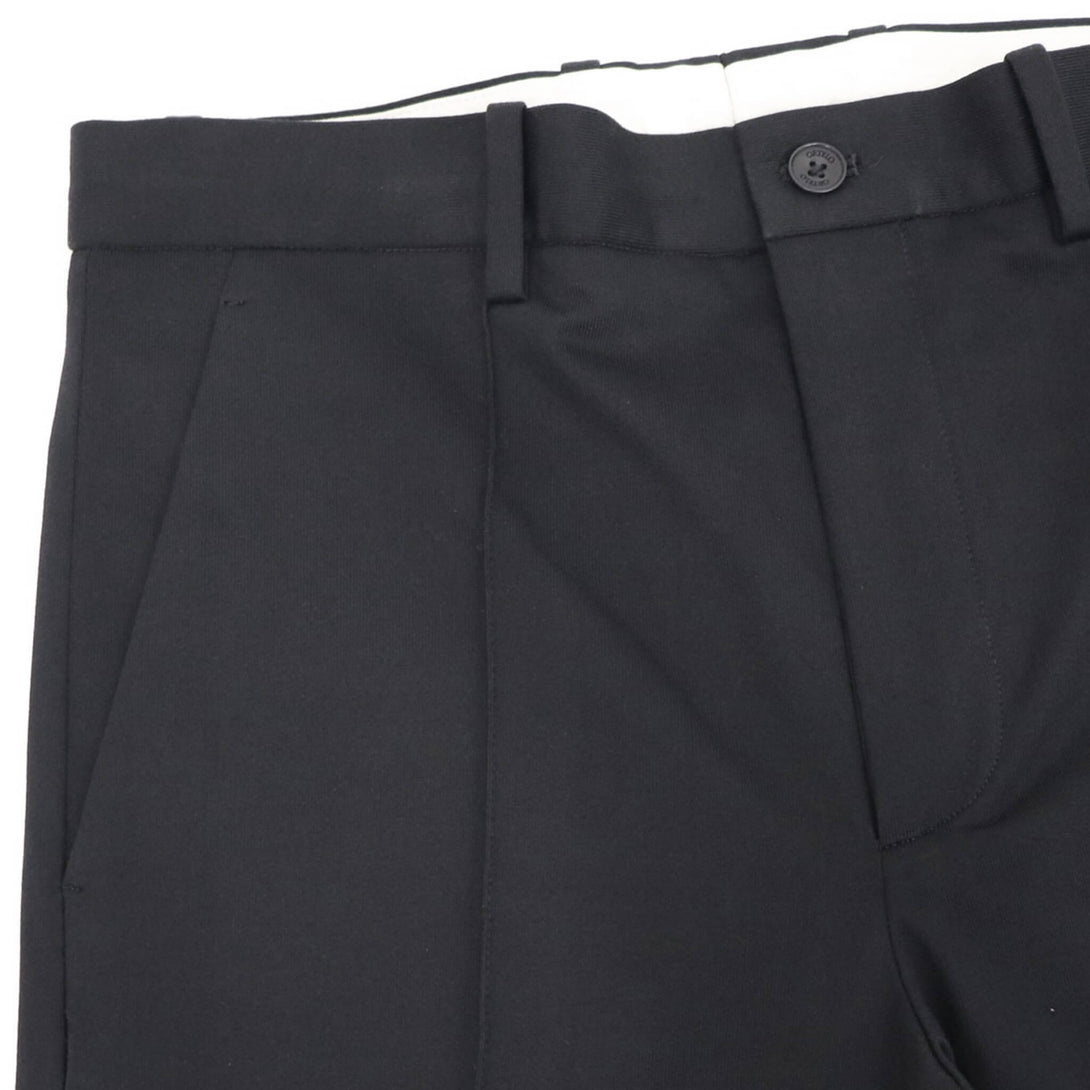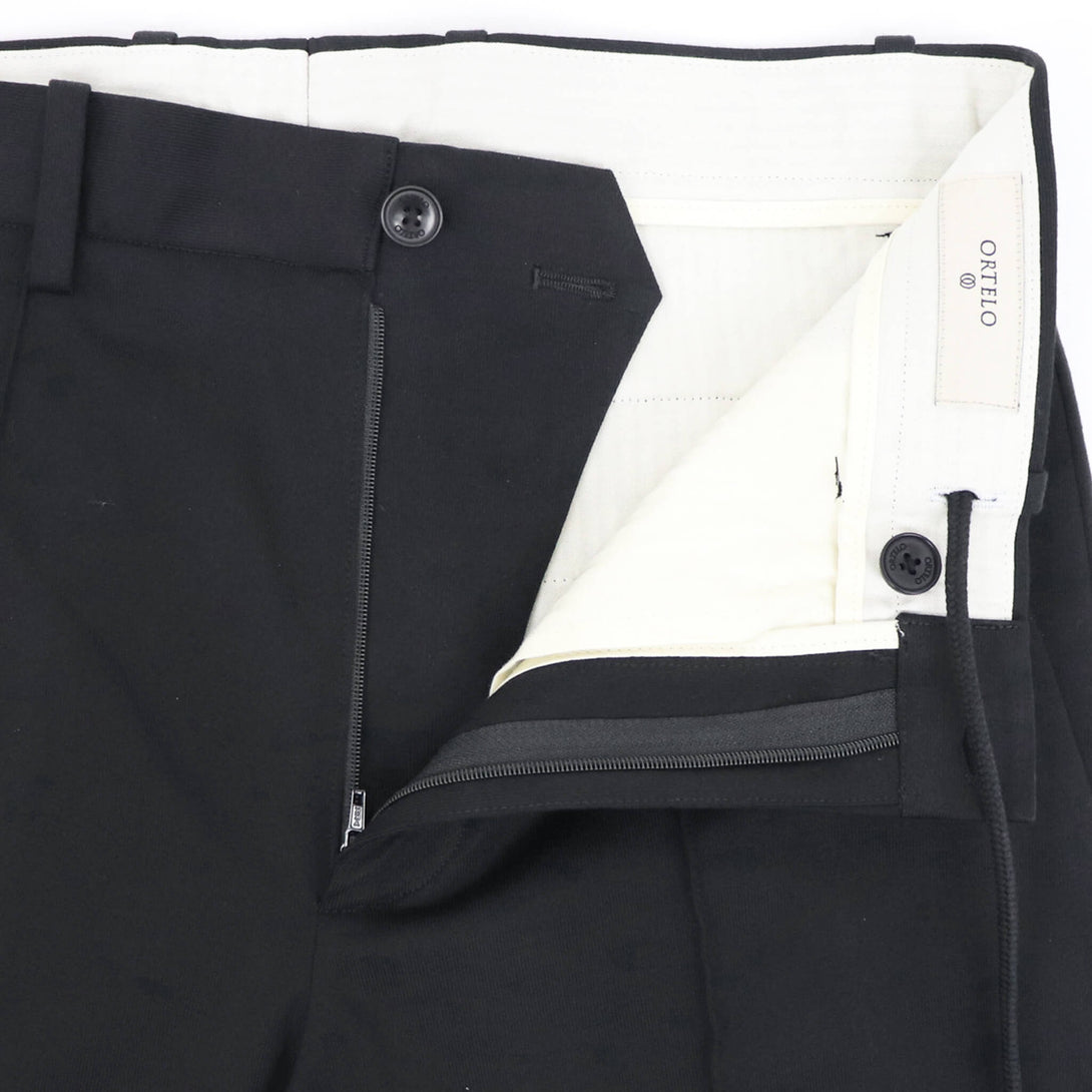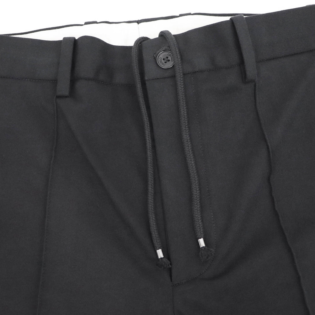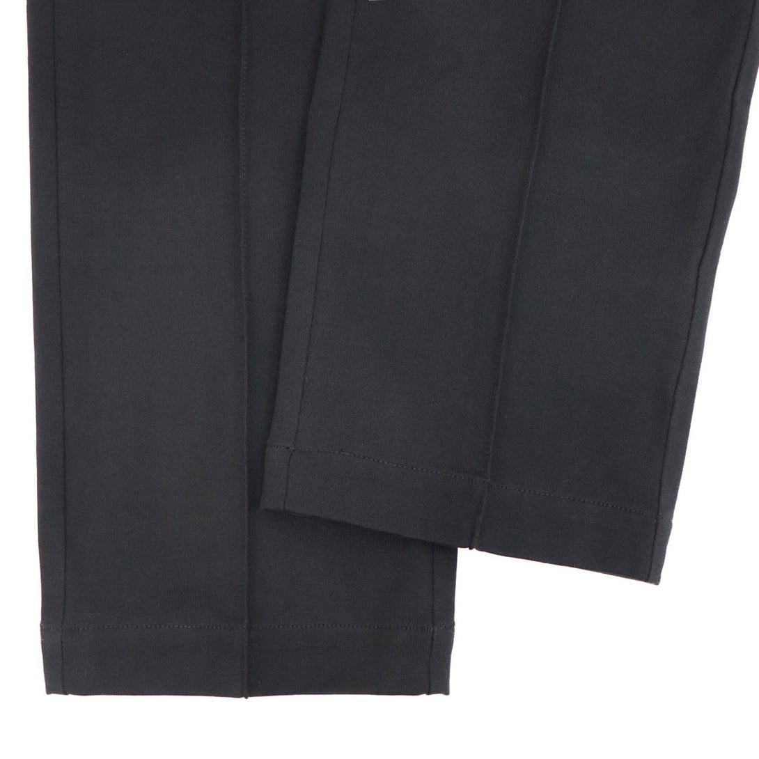 今季は、ノープリーツタイプのテーパードパンツ。膝から裾にかけてテーパードすることにより美脚効果抜群。以前あったSOLIDO(ソリード)で、有名な度詰天竺の素材で、ジャージーならではのストレッチ性に加えハリがあるしっかりとした生地となっています。特徴としては、ピンタックによる永久クリース仕様で、膝抜けしづらい仕上がりとなっています。
