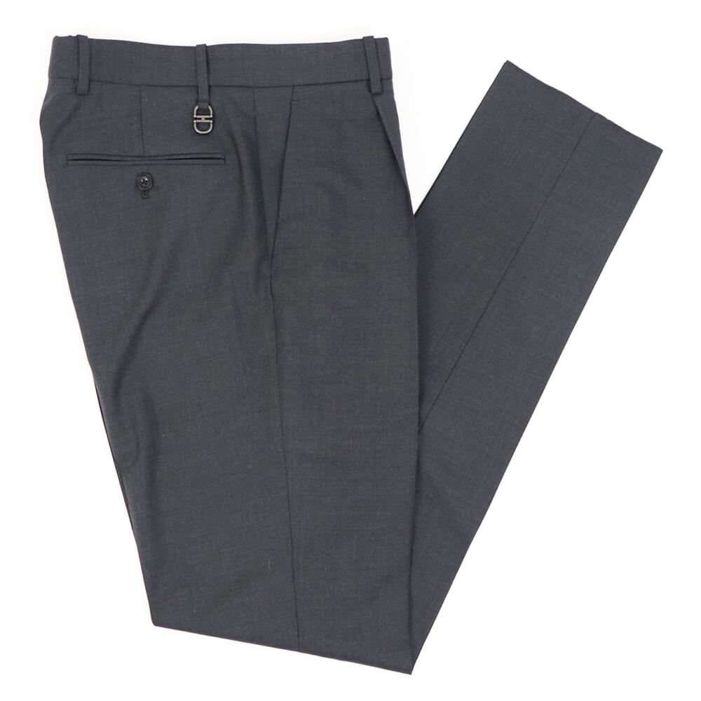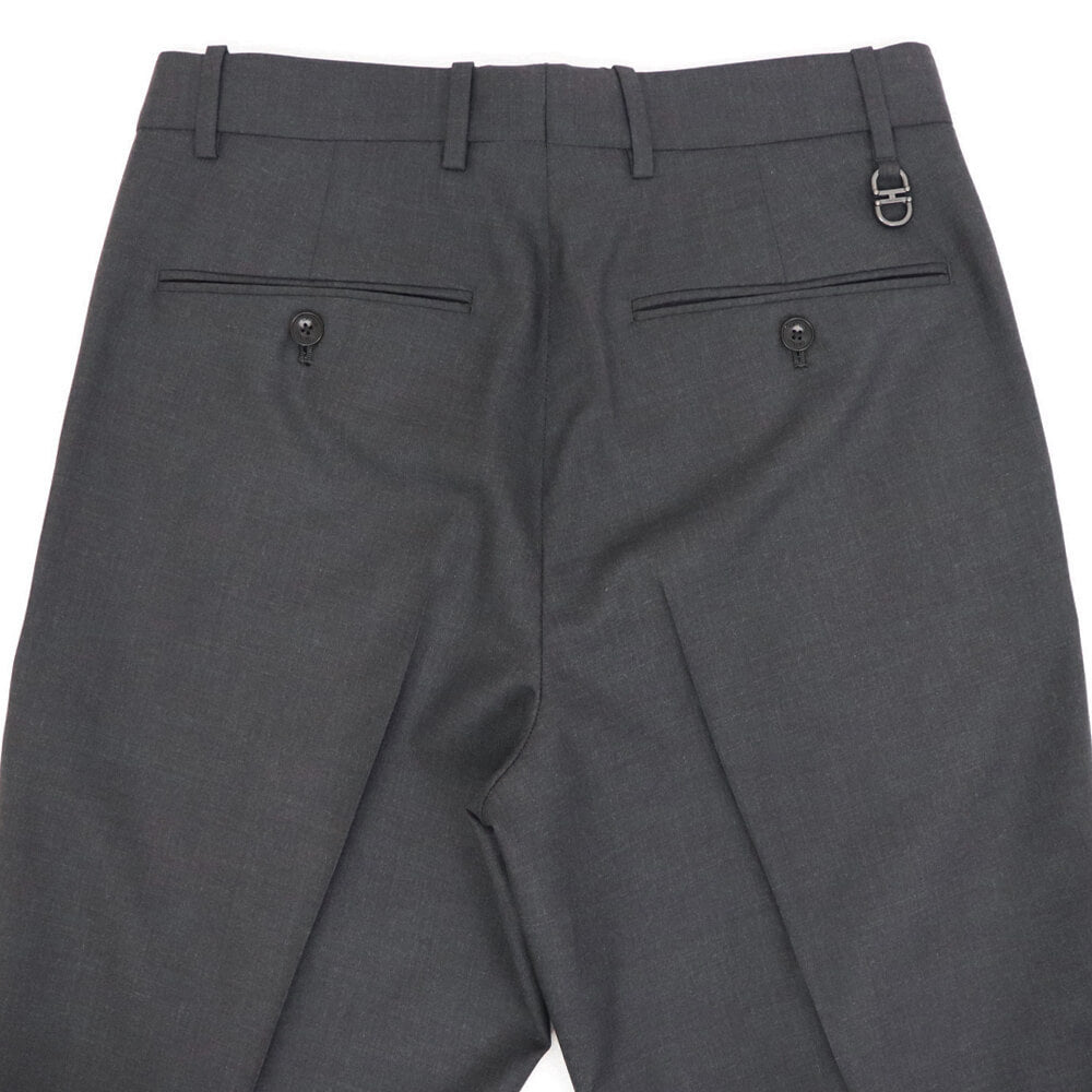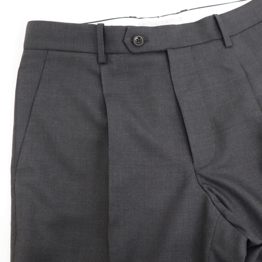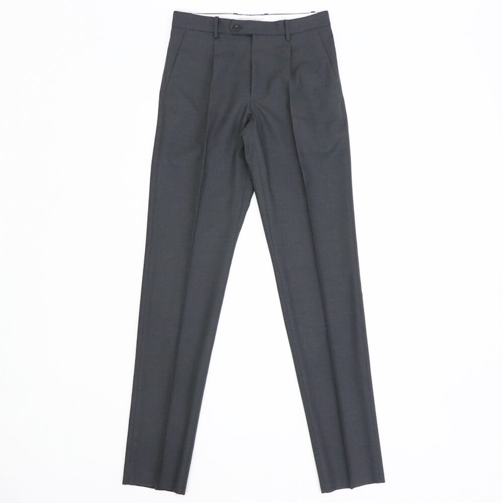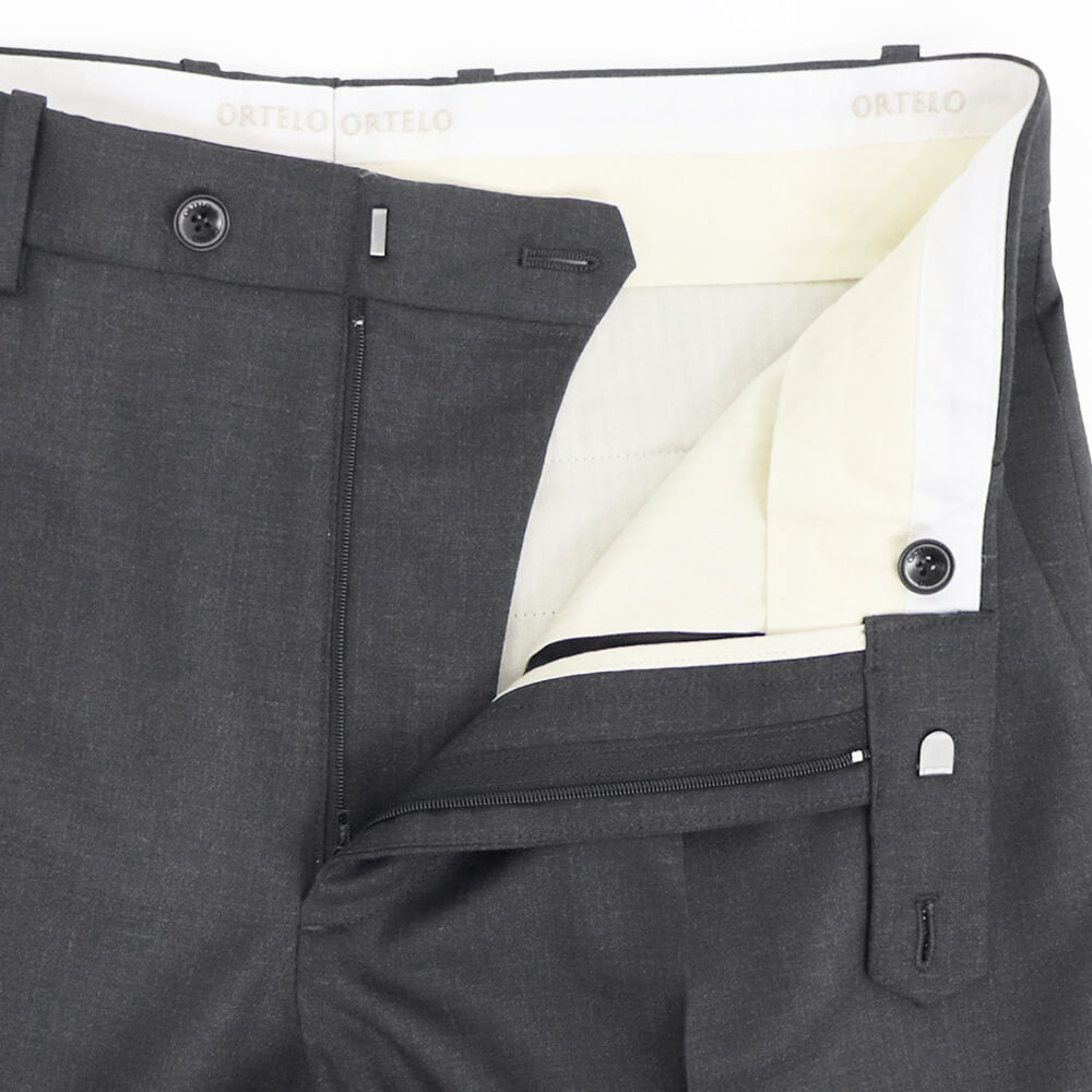 今季から登場した、パンツブランドのORTELO(オルテロ)今季のセレクトは、今では定番となった1プリーツ仕様のテーパードスラックス。 膝から裾にかけての自然なテーパードラインにより美脚効果抜群です。 ブランドロゴを刺繍したマーベルト、ロゴを刻印したナット釦、スレキに配したホースプリントによりブランドの世界観を表現。マーベルト仕様・股補強のクラシカルな仕様など、細部まで作り込んだ1着となっています。素材は、ウールの伸縮性を活かしたナチュラルストレッチが特徴で、糸を高密度に打ち込むことで、適度なハリ感の中にしなやかさのある風合いに仕上がっています。