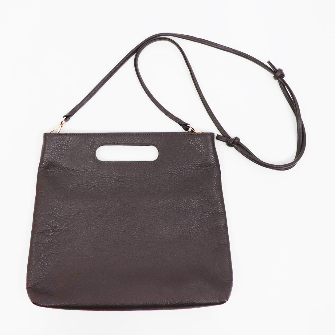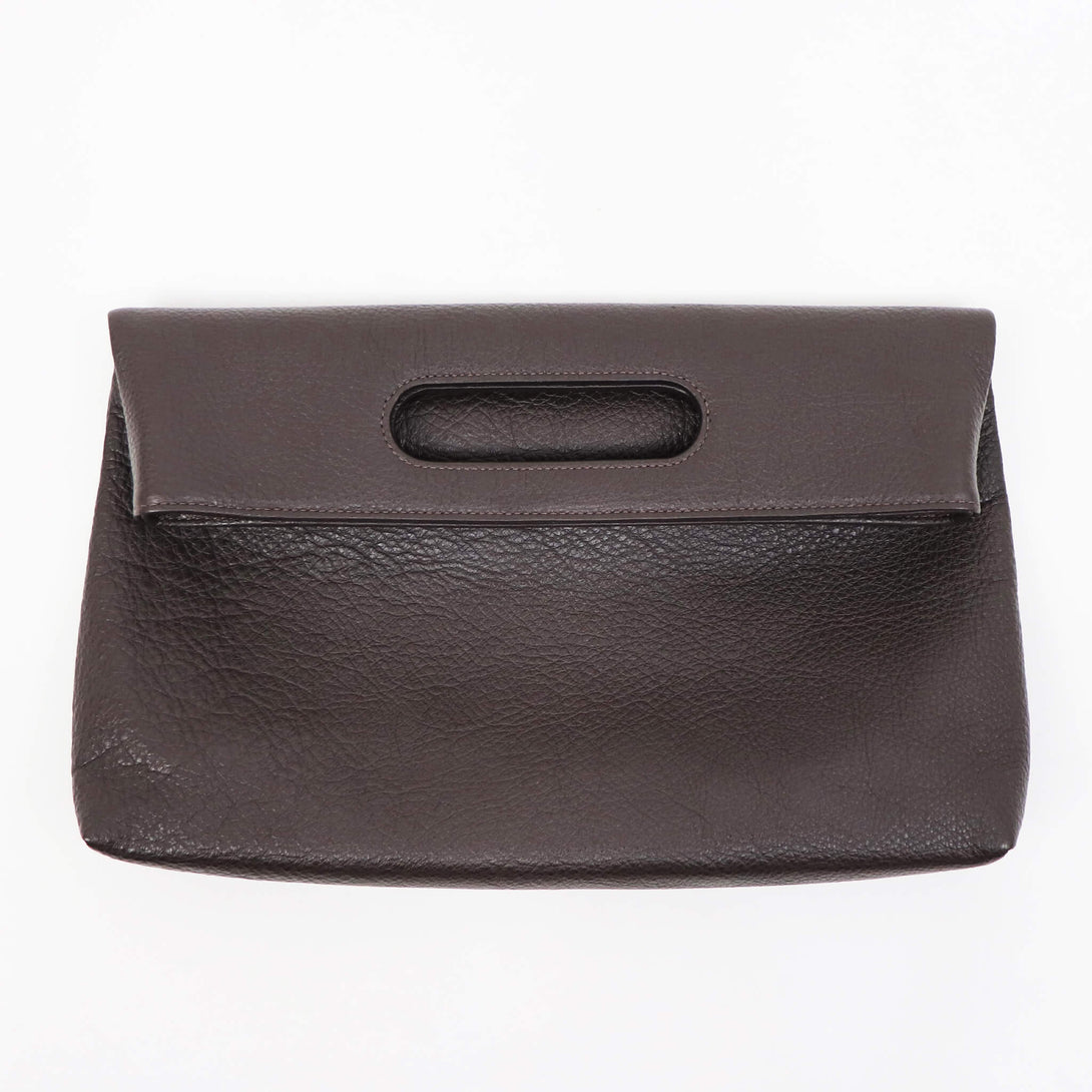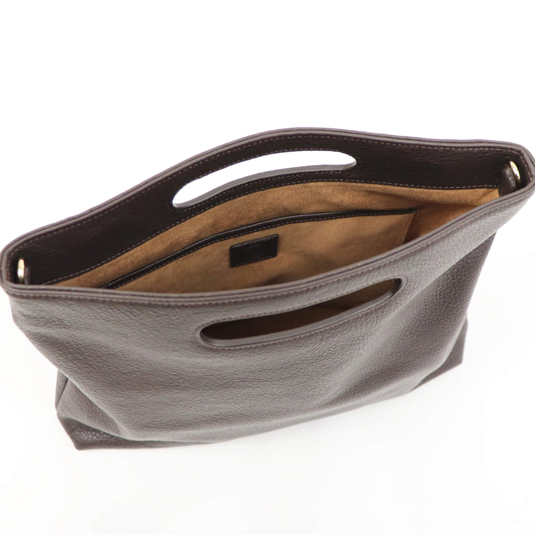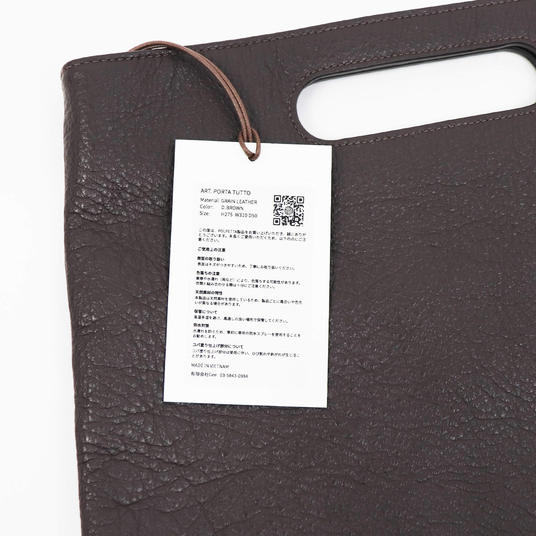 3WAYで使える、イタリアンレザーの表情-上質なグレインレザーを使用した、polpettaの3WAYバッグ。ストラップを付けて斜めがけ、外して取手を持てば軽やかに、さらに2つ折りにすればクラッチバッグとしても使用できます。