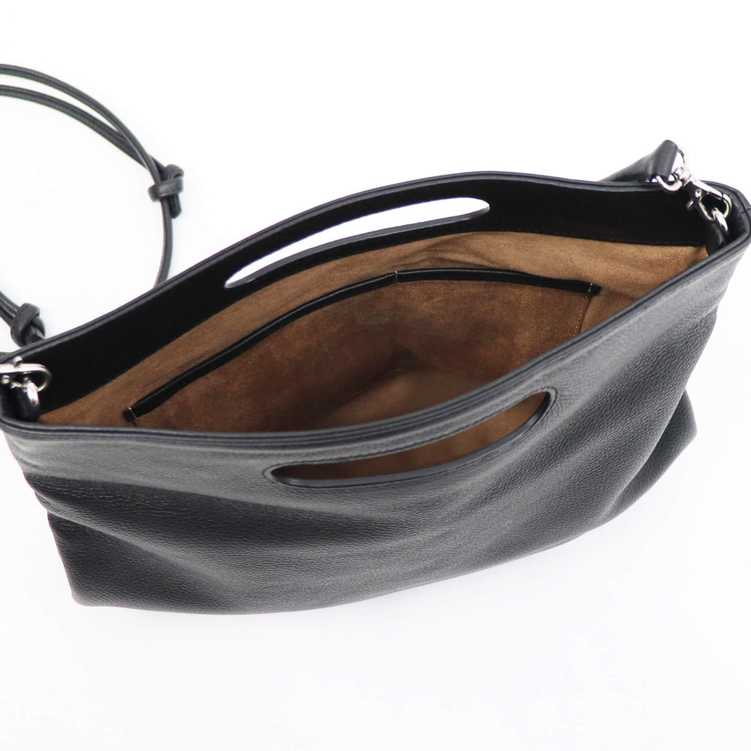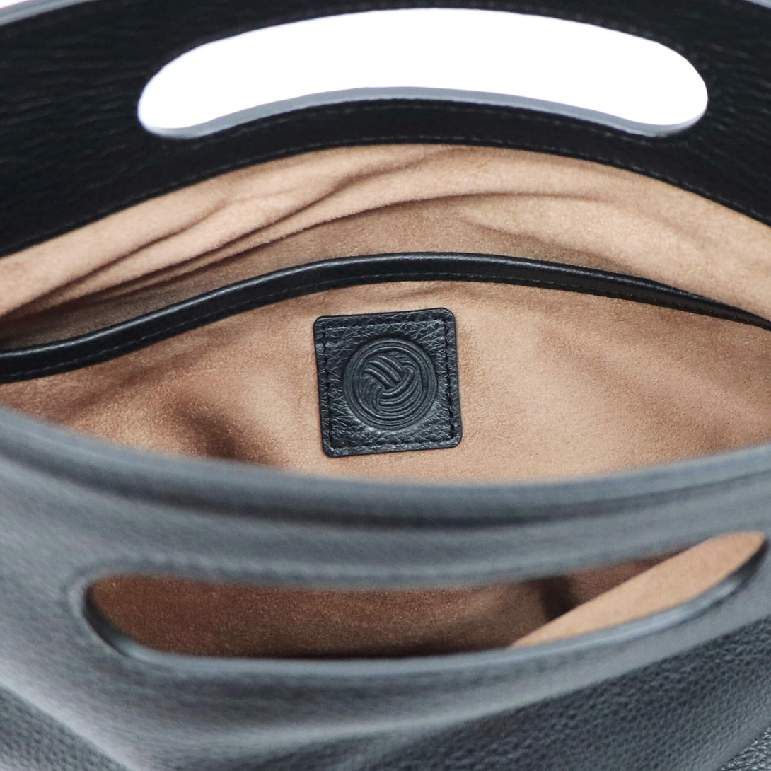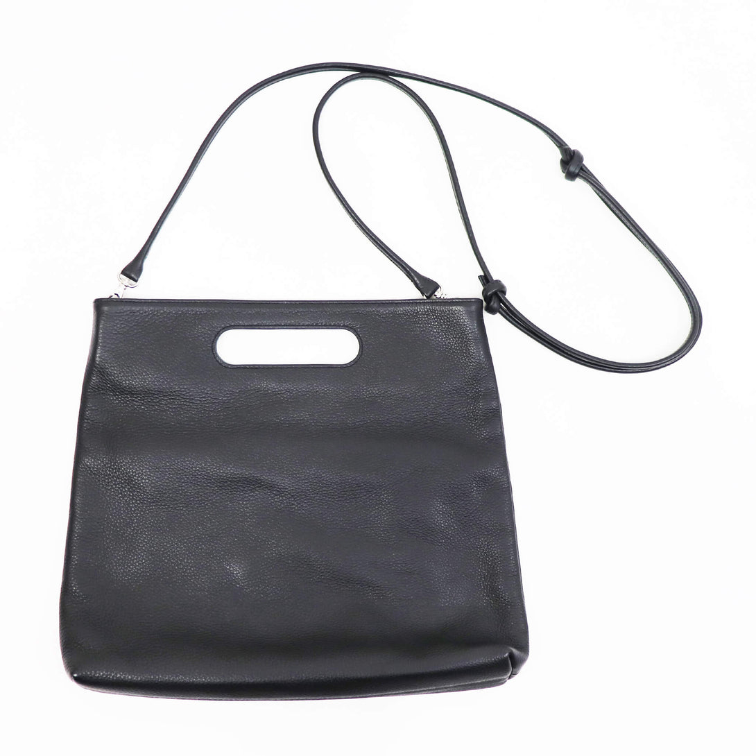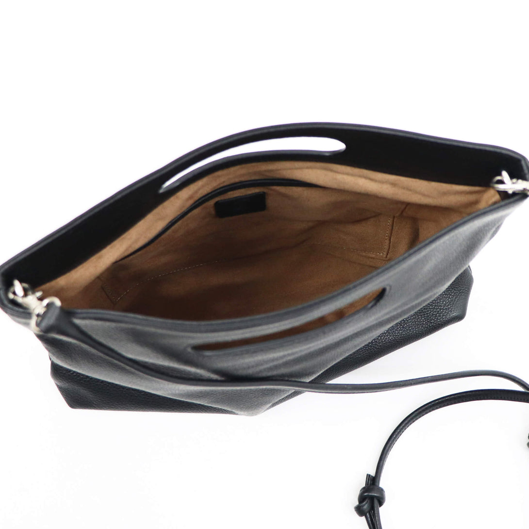 3WAYで使える、イタリアンレザーの表情-上質なグレインレザーを使用した、polpettaの3WAYバッグ。ストラップを付けて斜めがけ、外して取手を持てば軽やかに、さらに2つ折りにすればクラッチバッグとしても使用できます。
