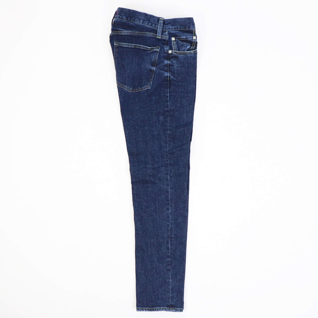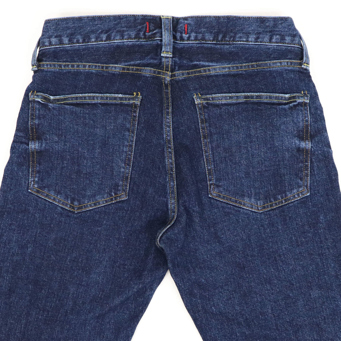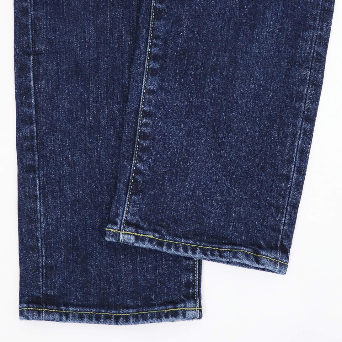 以前のRhythmと比べ、股上を約2cm深くウエストを1.5cm細くしたことによりウエスト周りのフィット感がアップしました。レングスは以前と変わらずジャストレングスを採用。綿100%の見え方で、デニムらしいラフ感ある=シボ感強めのカイハラのストレッチデニム採用し、ムラのある経糸を使用することで、自然な縦落ち感が生まれ、ヴィンテージデニムのような雰囲気を実現。汎用性高く、大人が穿けるデニムになり、幅広いカジュアルシーンにあわせた着回しが可能な1本です。