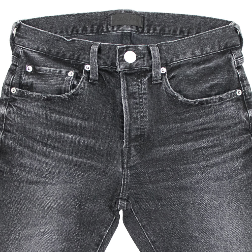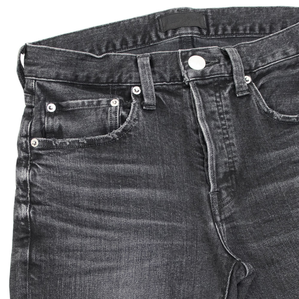 以前のRhythmと比べ、股上を約2cm深くウエストを1.5cm細くしたことによりウエスト周りのフィット感がアップ。レングスは以前と変わらずジャストレングス。綿100%の見え方で、デニムらしいラフ感ある=シボ感強めのカイハラのストレッチデニム採用。ラフな風合いが魅力で、はき込むことによって、美しく色落ちします。着用すればするほど、自分だけの1本に育つのがデニム生地のいいところです。仕上げにヒゲ部分に合わせて立体加工を施しています。より汎用性高く大人が穿けるデニムになり、幅広いスタイリングに合わせた着回しが可能な1本に仕上がっています。
