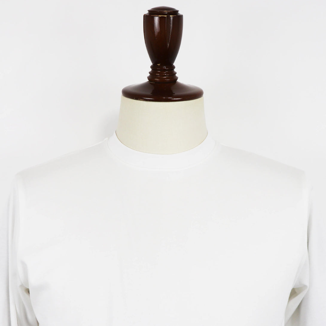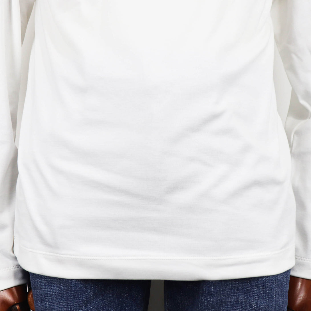 RIVORA(リヴォラ)より、ロングスリーブTシャツが届きました。綿の最高峰であるインドのスビンコットンのファーストピックを使用した、スムース編みのカットソーとなります。スムース組織にしていることで、素材の良さを一層引き立てています。非常に滑らかで、触れるとうっとりするような気持ちよさが特徴で、肌に直接触れる物だからこそ、1日着ていても、ストレスを感じさせることがないように、素材に拘りました。形もシンプルですが、襟周りの開き方や、ボディのサイズ感など、ドレス、カジュアル、どちらのコーディネートでも着用可能なTシャツを目指しました。同素材の、半袖もありますので、気になる方は是非、半袖もチェックしてみてください。