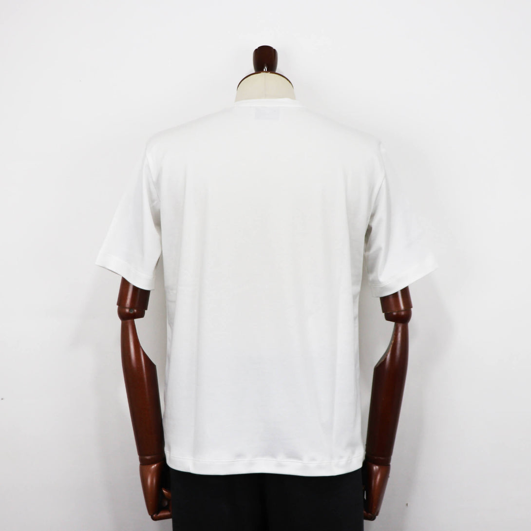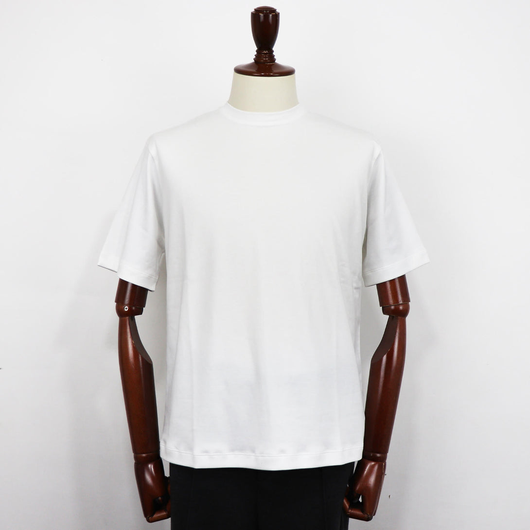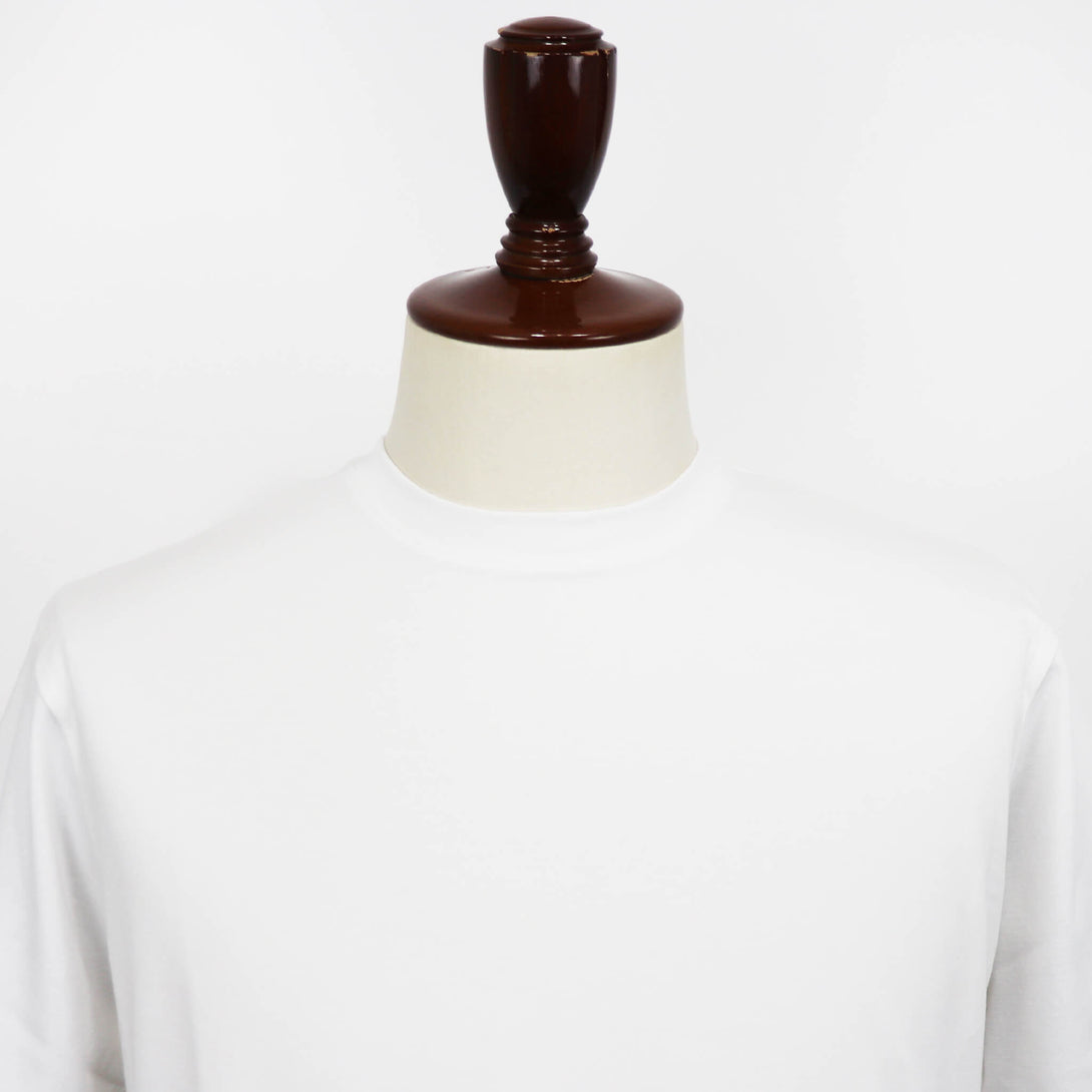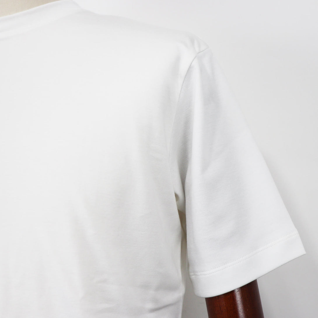 今季は、初の取り組みにして、別注企画からスタートしたTシャツをご紹介。素材は、最上級の超長綿を使用し、その中でも希少なスビンコットンをスムース編みでたっぷり使用した生地となります。モチッとした滑らかな肌触りと、表面の綺麗さが特徴でジャケットのインナーにはもちろん、一枚でも着用していただく事ができます。「綿の宝石」と呼ばれている通り、上品な艶感がある為、ドレスカジュアルに相応しい仕上がりとなっています。縫製は、国内の経験豊富な職人集団である工場で創り、ステッチは2mm押えで、カジュアルになりすぎずスッキリとした上品な印象に仕上あげました。