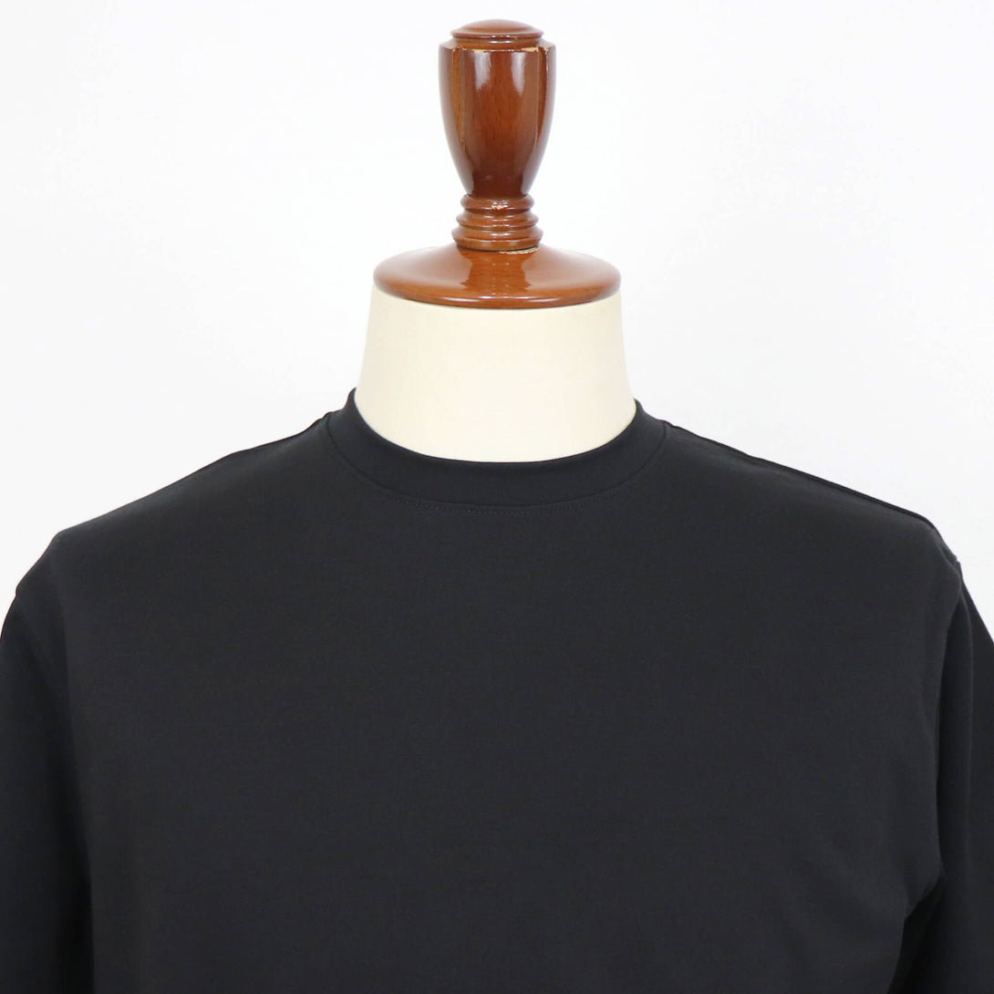 今季は、初の取り組みにして、別注企画からスタートしたTシャツをご紹介。素材は、最上級の超長綿を使用し、その中でも希少なスビンコットンをスムース編みでたっぷり使用した生地となります。モチッとした滑らかな肌触りと、表面の綺麗さが特徴でジャケットのインナーにはもちろん、一枚でも着用していただく事ができます。「綿の宝石」と呼ばれている通り、上品な艶感がある為、ドレスカジュアルに相応しい仕上がりとなっています。縫製は、国内の経験豊富な職人集団である工場で創り、ステッチは2mm押えで、カジュアルになりすぎずスッキリとした上品な印象に仕上あげました。