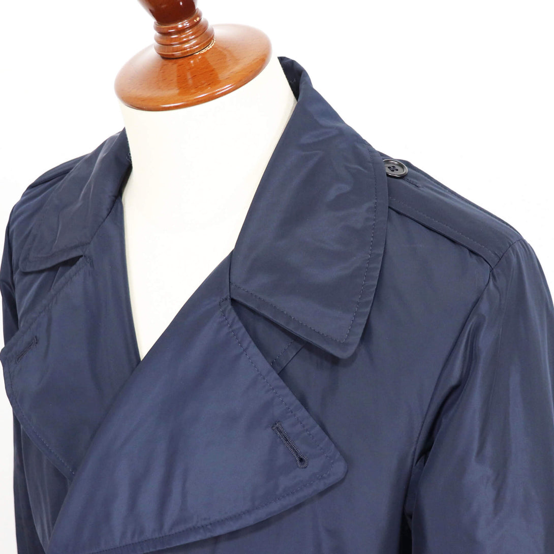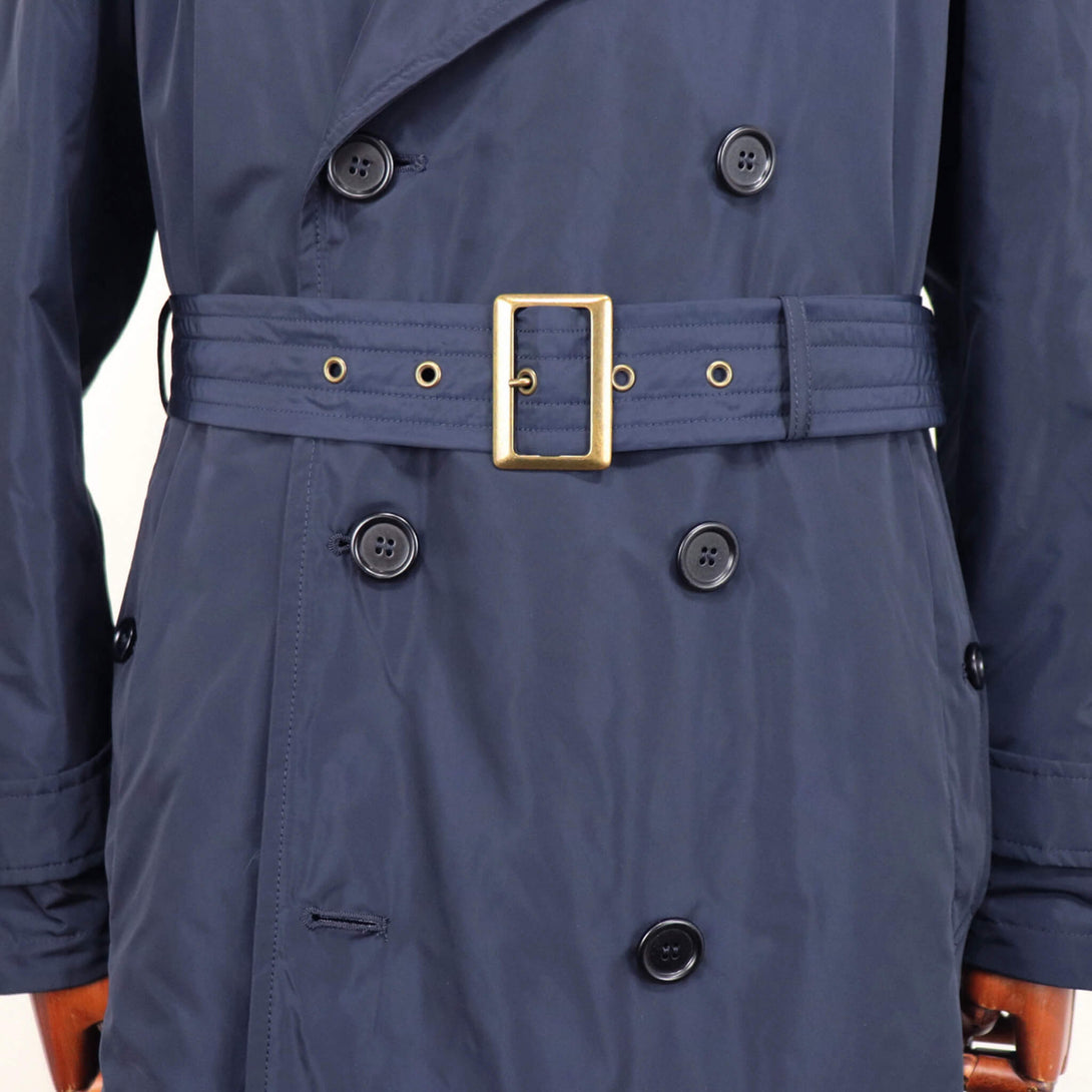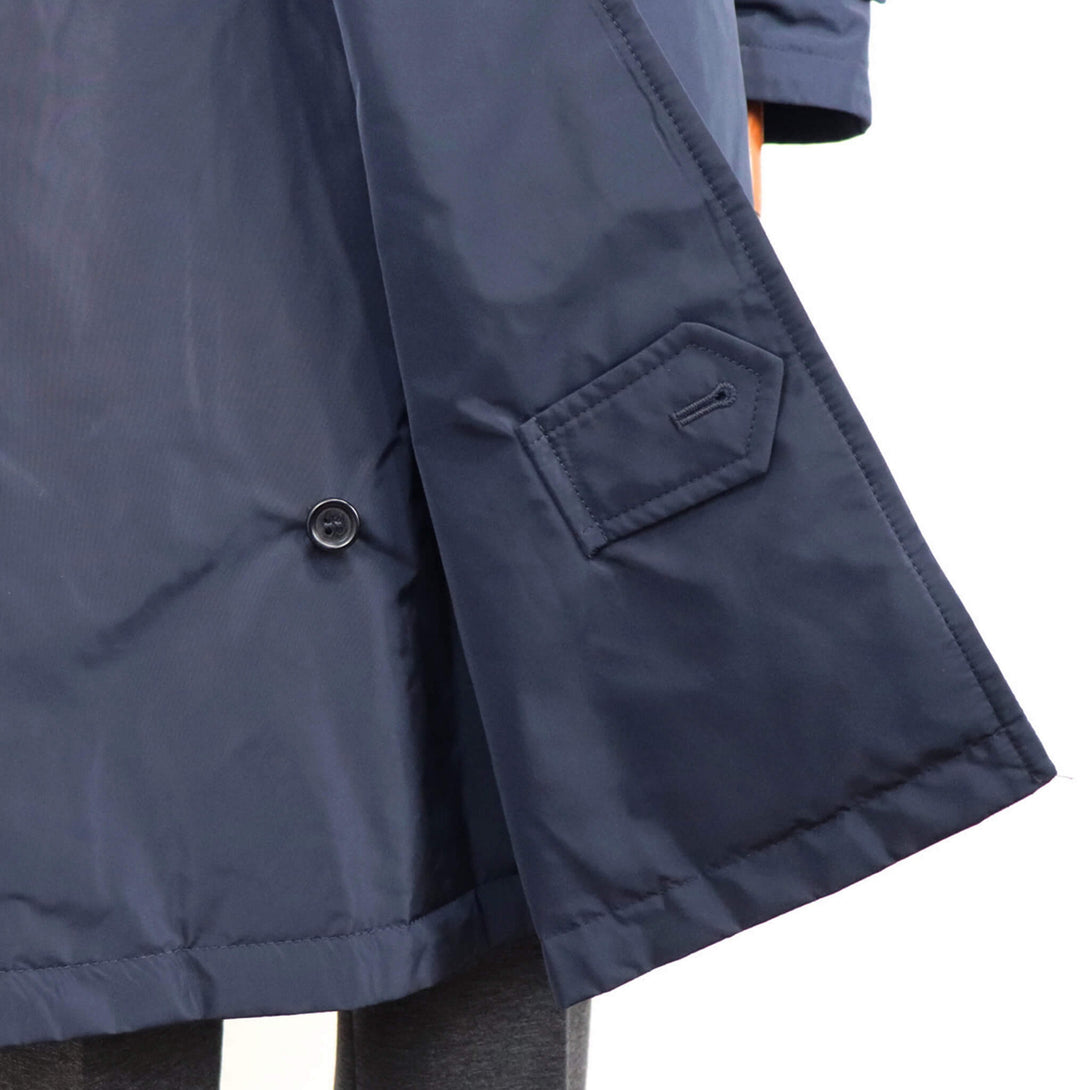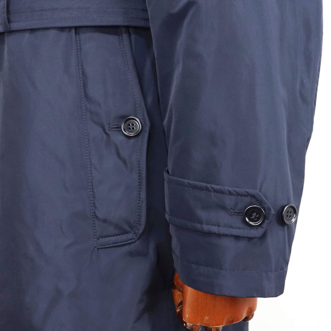 ミリタリーを得意とするロマーノらしい仕上がりのナイロントレンチ。肩周りはコンパクトに作っており、モードというよりは正統派クラシックな印象になっております。随所に昔ながらのディテールを入れたり前肩な袖の付け方などまさにドレス的な作りになっています。