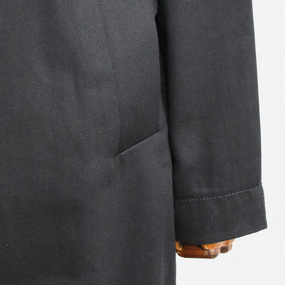 フロントのボタンを閉めてベルトを腰で結べば、シックでモダンな雰囲気を纏ったベルテッドコートになり、ボタンを閉じずにラフにデニムやコットンパンツなどと合わせることで軽快なスプリングコートも様相も見せる万能なアイテムです。