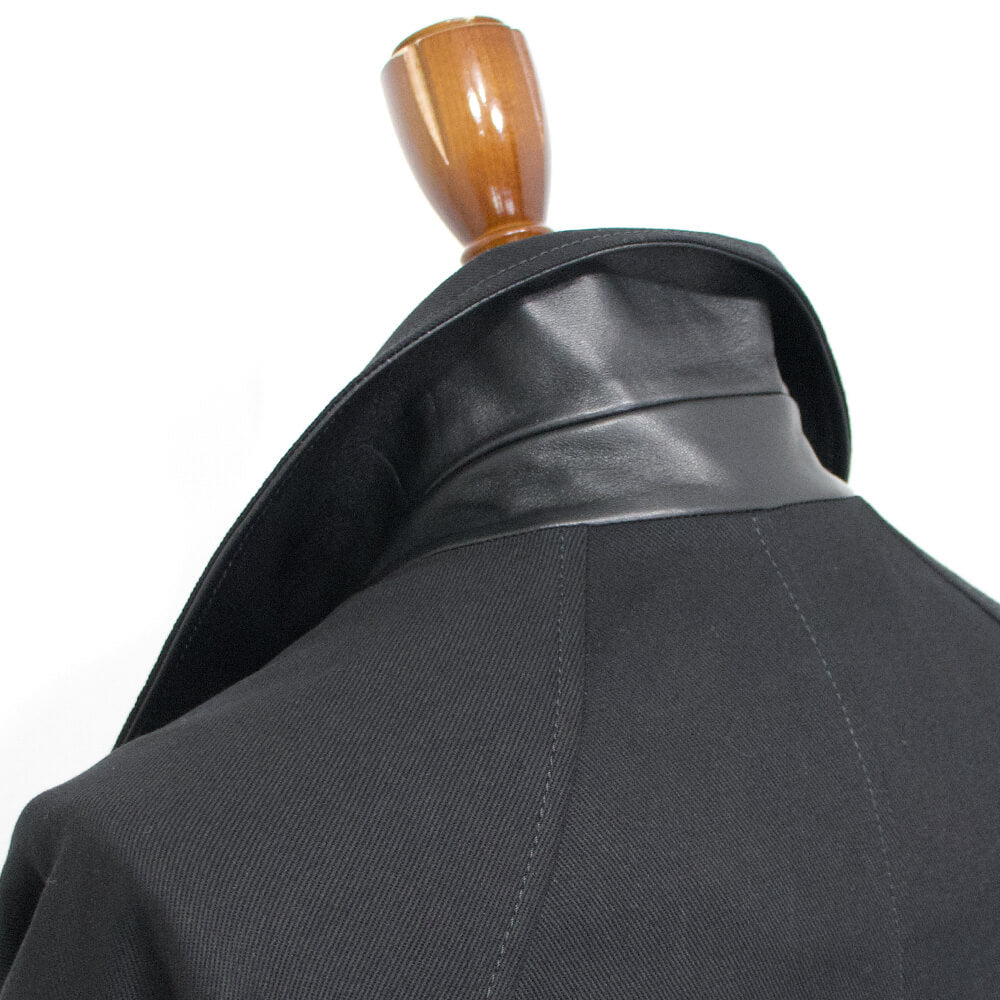 襟裏には牛革のレザーがあしらわれており襟を立てたときの存在感も抜群ですし、こういった細かな拘りが服好きには堪りませんね。