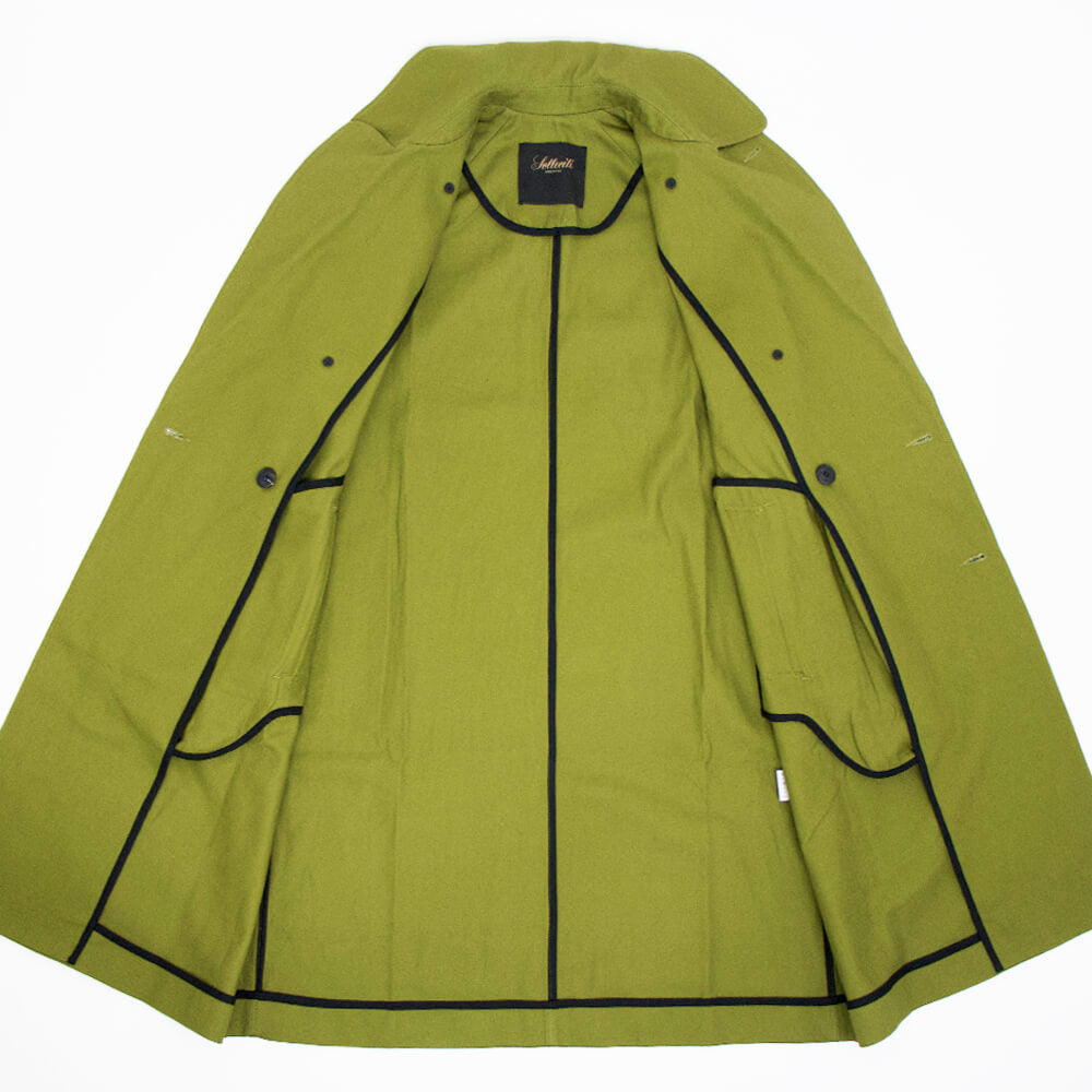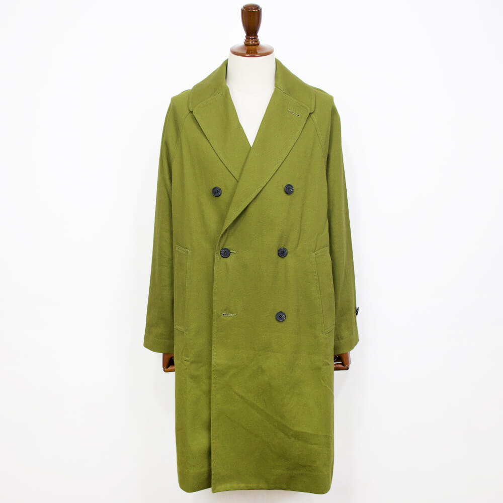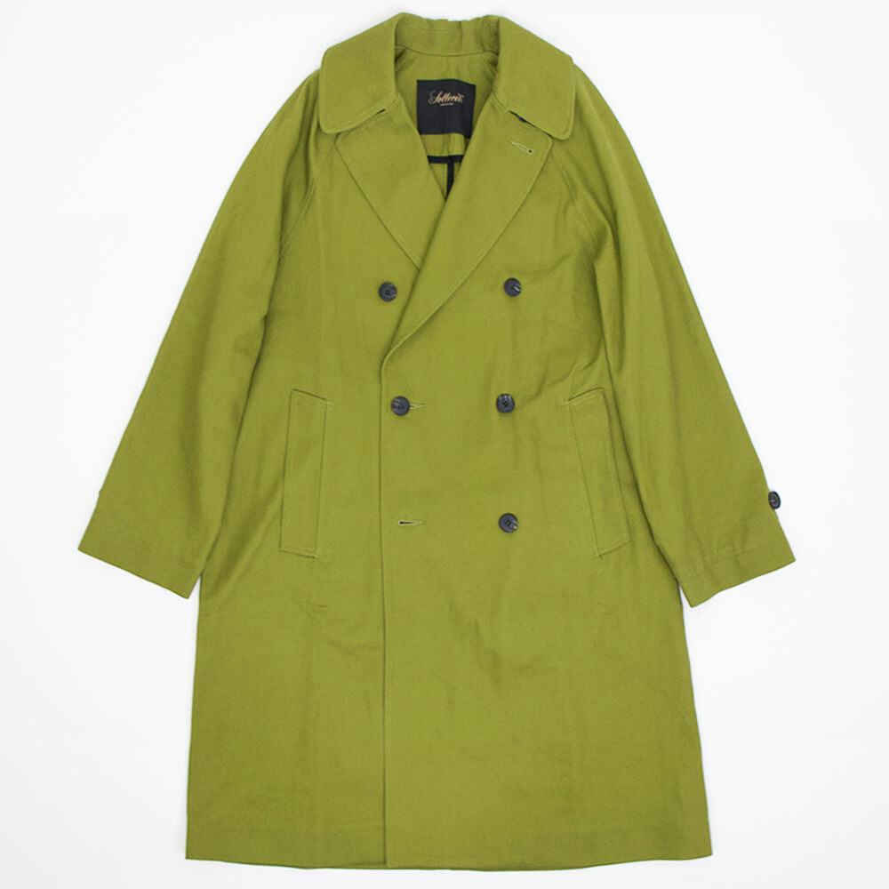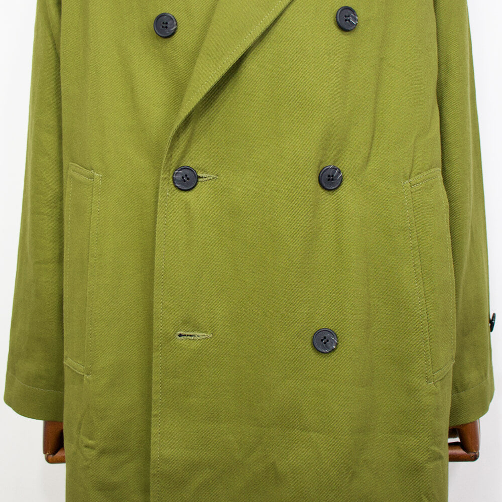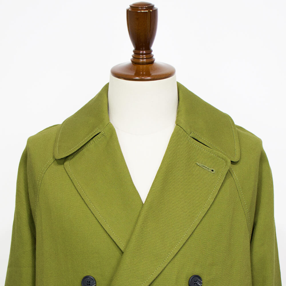 見た目にも軽やかで春を感じさせるダブルブレストのスプリングコートはコットン100%のツイル生地で仕立てられています。