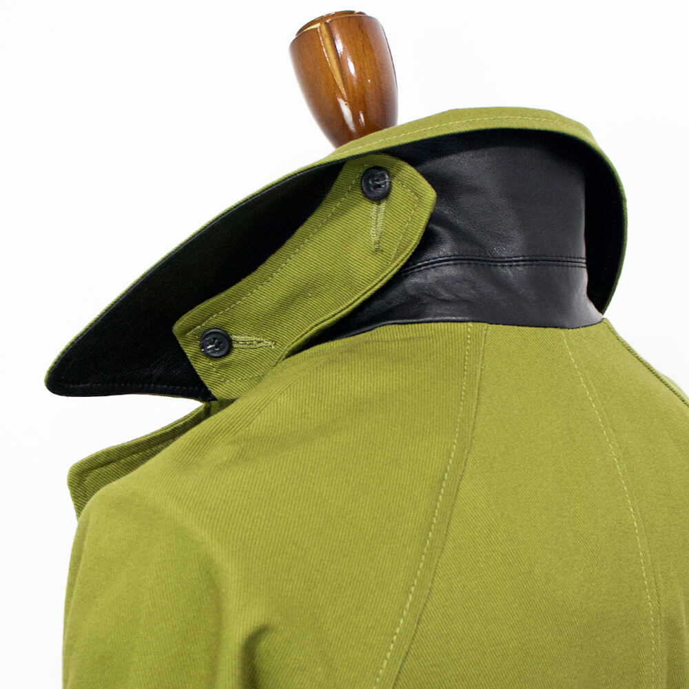 襟裏には牛革のレザーがあしらわれており襟を立てたときの存在感も抜群ですし、こういった細かな拘りが服好きには堪りませんね。